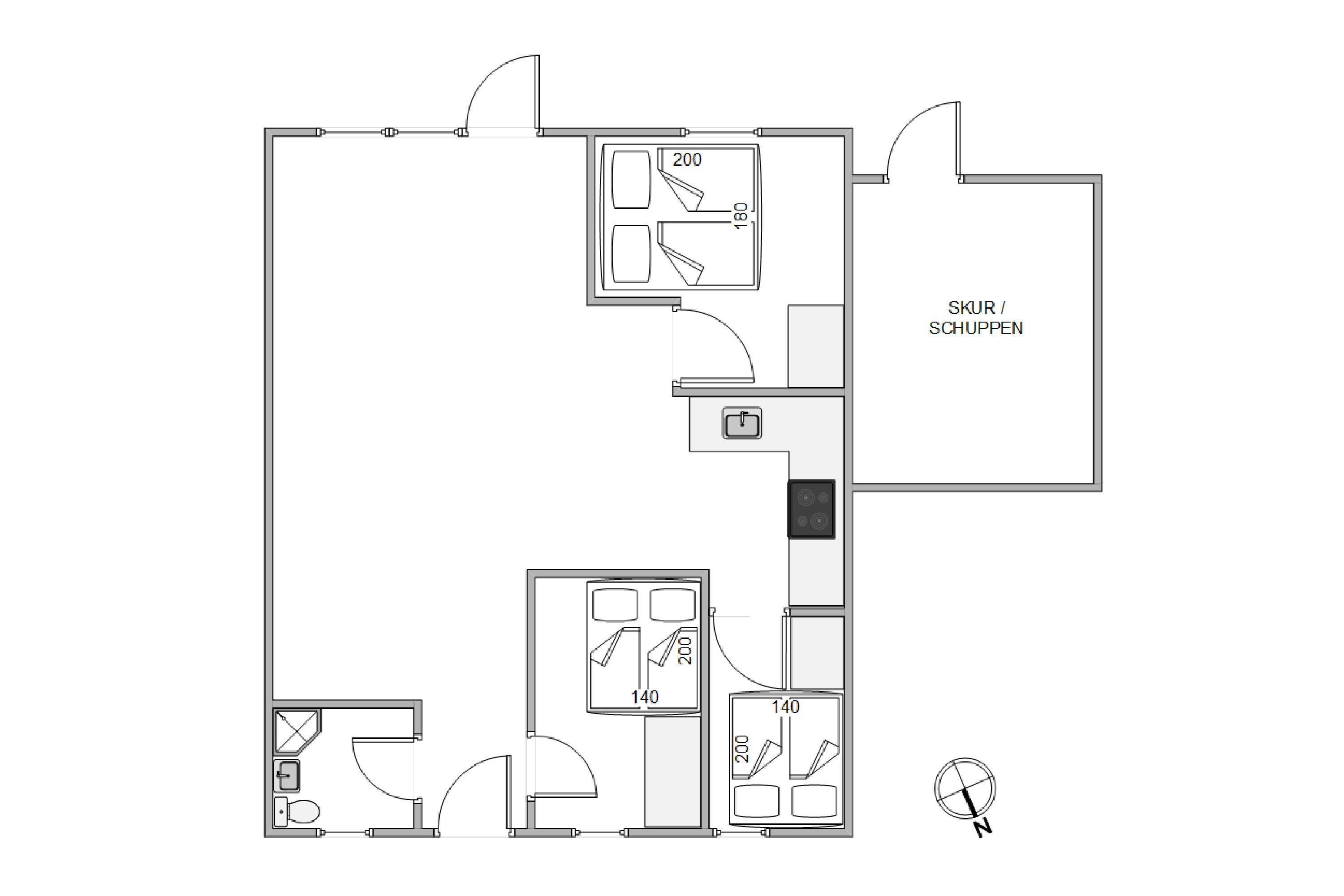One bedroom features a double bed (180 x 200 cm), while the other two have beds measuring 140 x 200 cm. Here you can enjoy a leisurely lie-in or retreat with an engaging book in peaceful surroundings.
