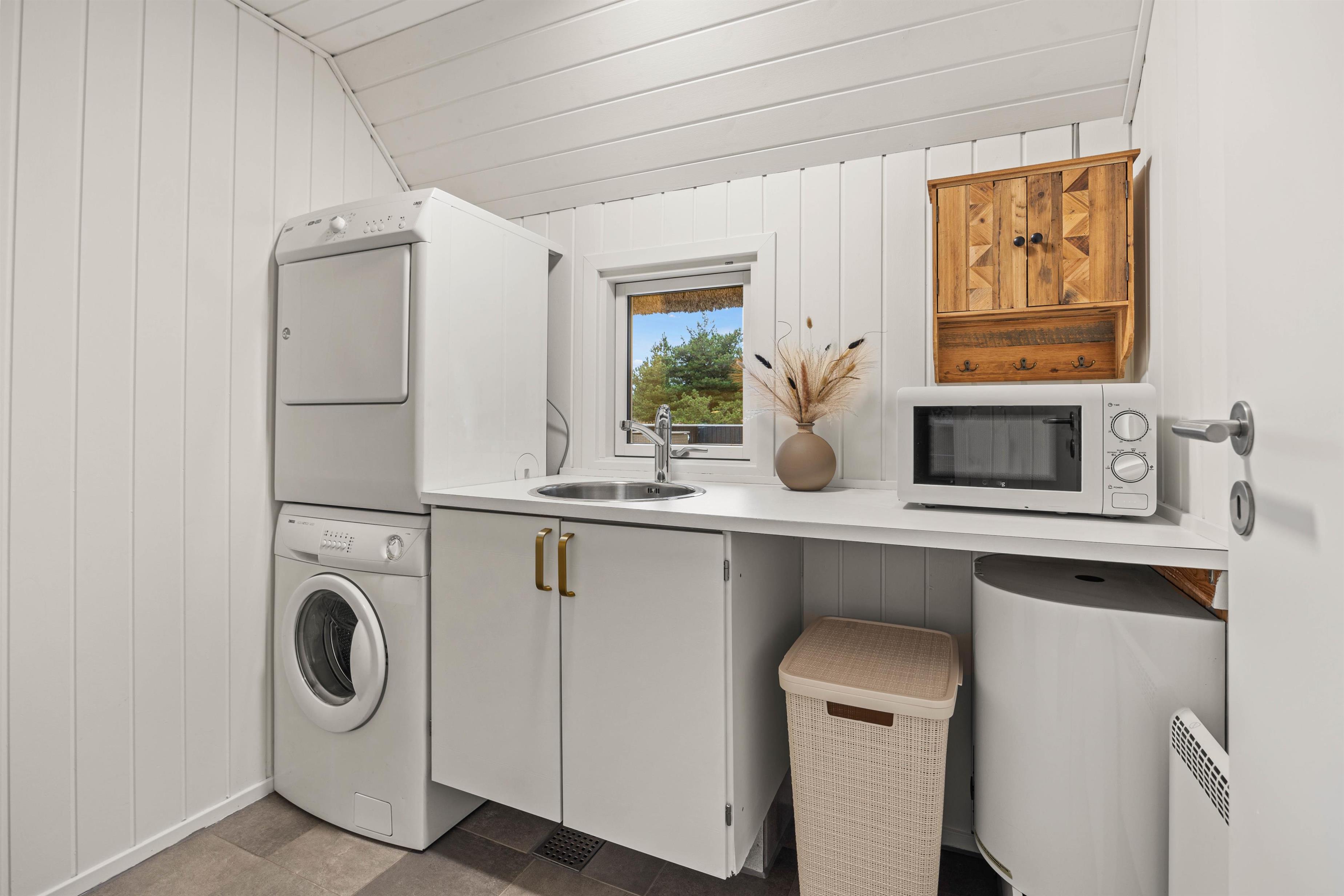 This lovely holiday home in Blåvand has 4 bedrooms, including 2 double beds and 4 single beds, providing ample space for rest and privacy. In addition, the loft offers 4 mattresses. For your comfort, there is also a tumble dryer and washing machine available, and families with small children are well catered for with 2 cots and 3 high chairs.