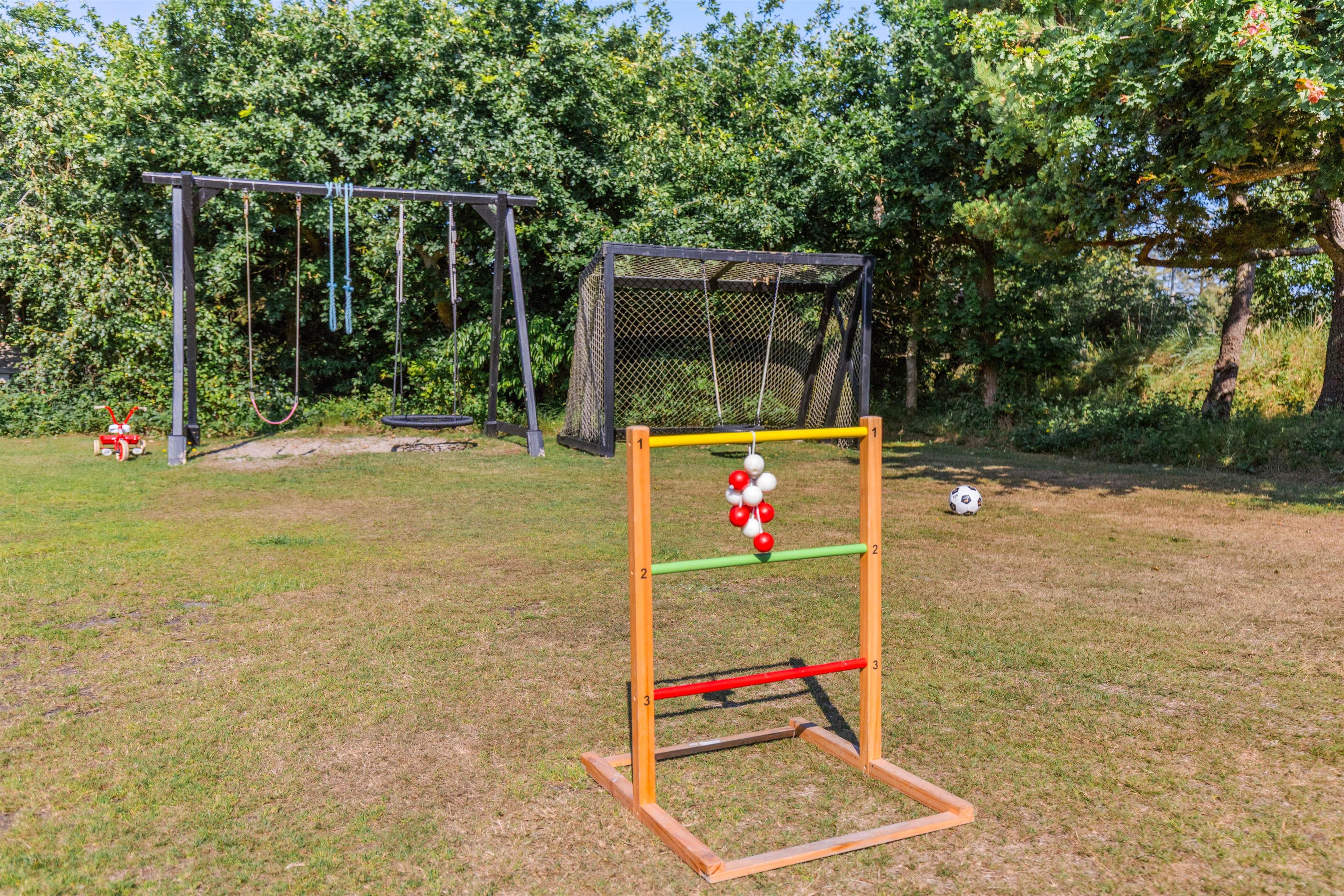 Unwind on the various terraces - choose from covered, screened, or enclosed options - while enjoying the fresh air and idyllic nature of the nearly half-acre (2,000 square metre) grounds. Children will love the swing and sandpit, and from 1st April to 31st October you can refresh yourself under the outdoor shower.