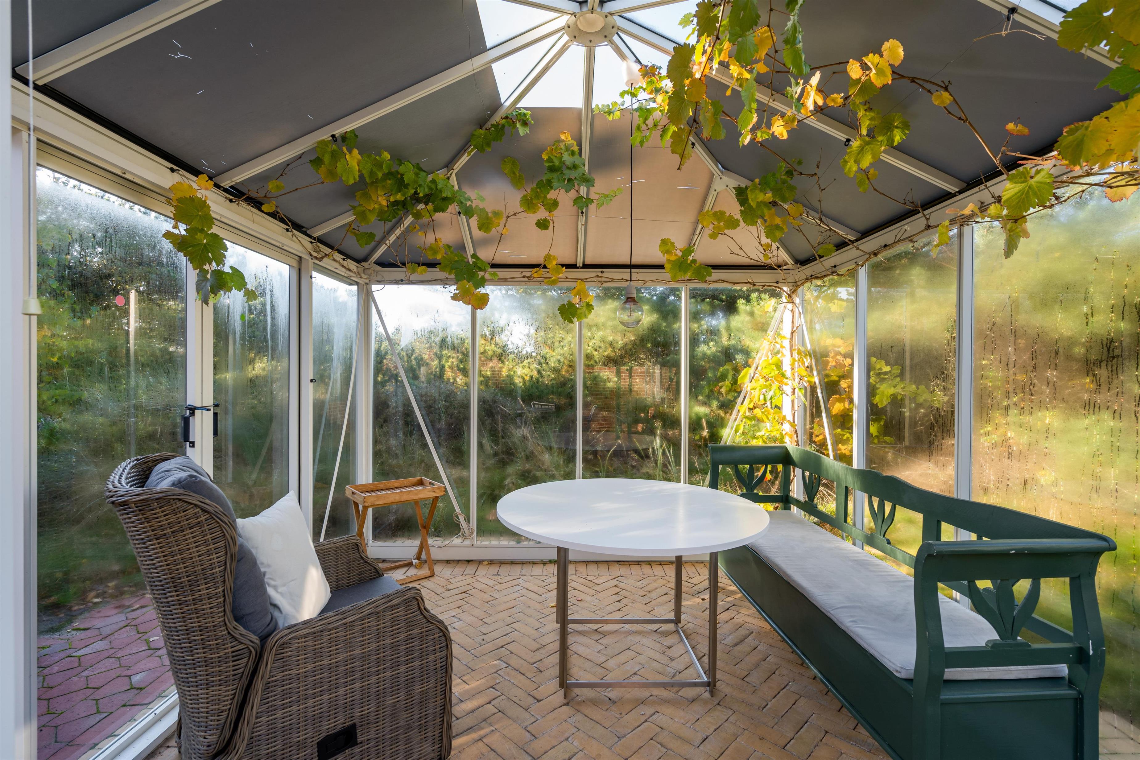 The garden room offers a sheltered spot to immerse yourself in nature, where you can retreat with a book and a cup of tea in cosy surroundings. A gas barbecue is provided for enjoying outdoor meals.