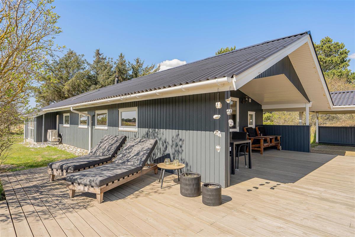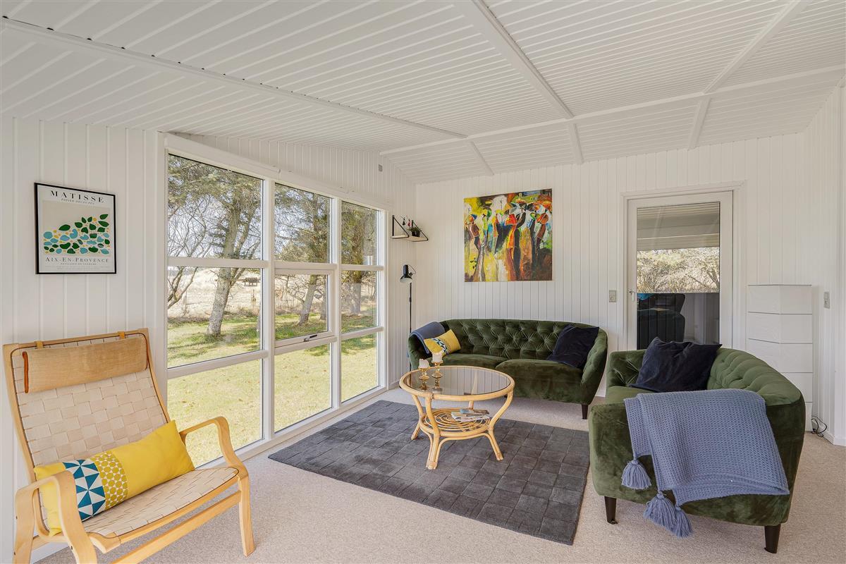 Upon entering this holiday home at Krogsande 8 in Blåvand, you'll immediately sense the wonderful holiday atmosphere. The spacious living and dining area with integrated kitchen is flooded with natural light through skylights and features bright, modern furnishings. You're sure to feel at home straight away.