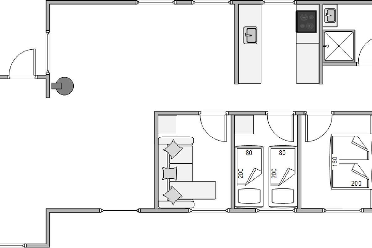 This 81-square-metre holiday home has two bedrooms – one with a double bed and another with two single beds. Both bathrooms feature underfloor heating, ensuring warm feet during your morning routine.