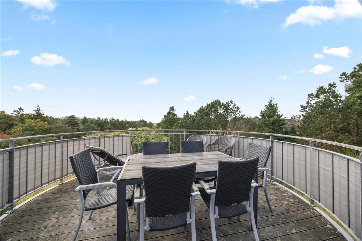 Ten guests can spread across five bedrooms, each featuring double beds. If you're sleeping upstairs, you'll be the first to enjoy the beautiful views across nature from the balcony each morning. Here you can also unwind with your morning coffee.