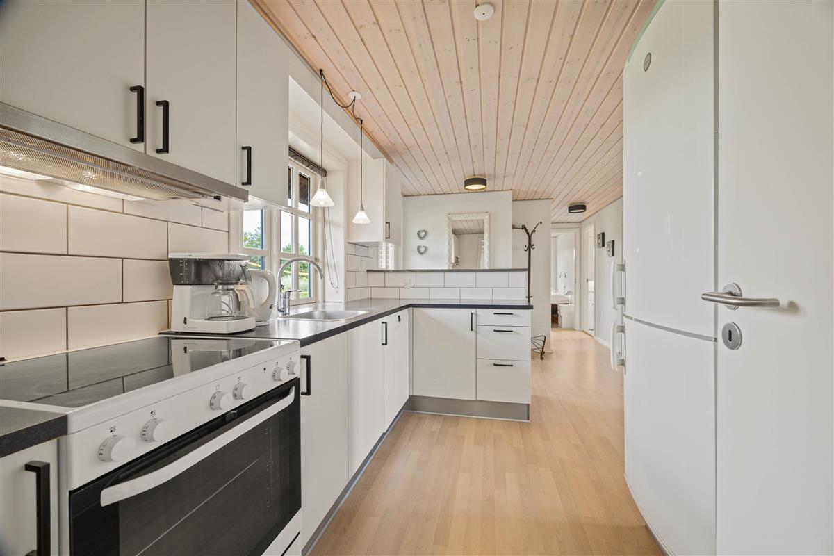 The practical kitchen offers plenty of space for cooking together. Alongside the cooker, you'll find a microwave and a 100-litre freezer, while the dishwasher takes care of the washing up.