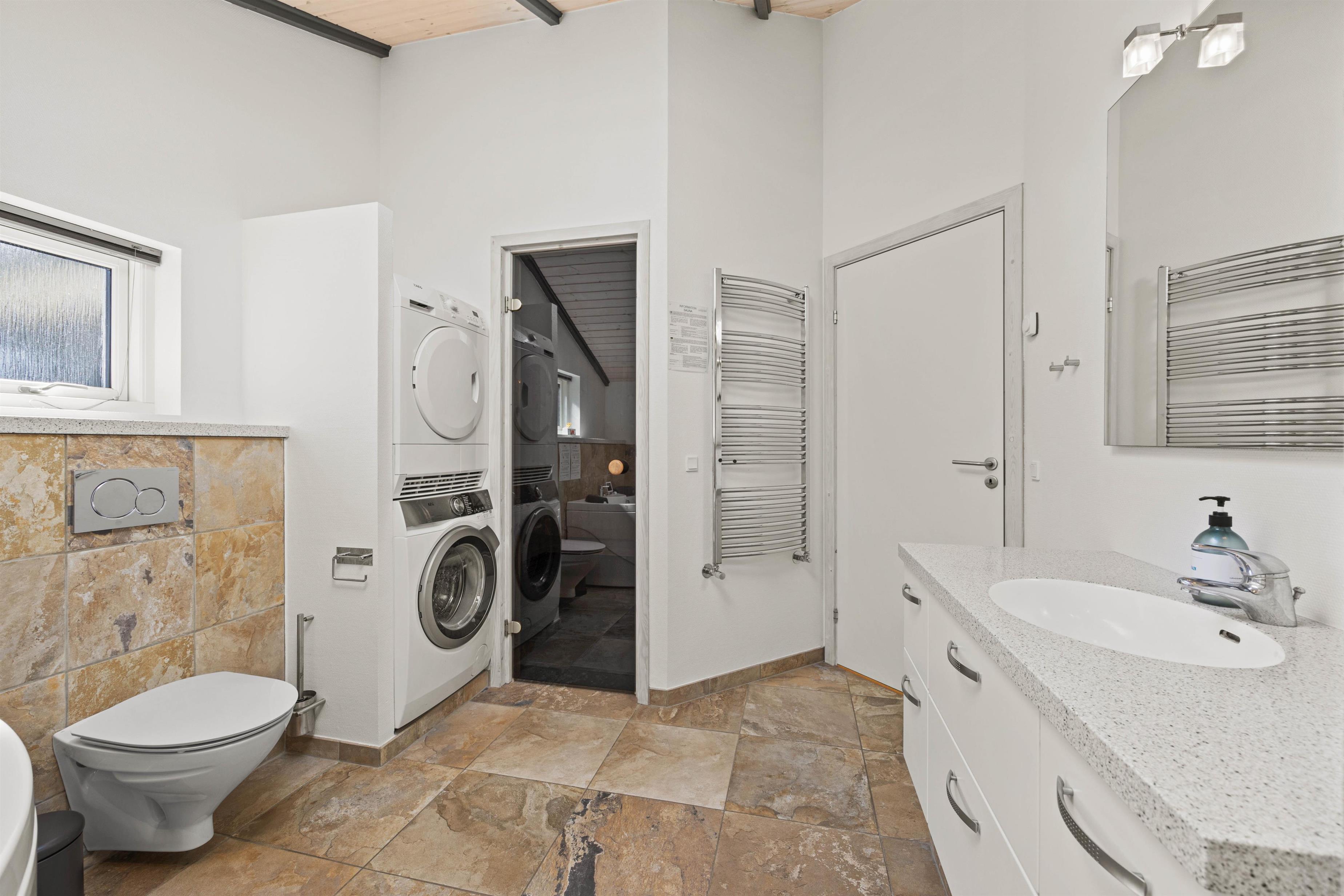 The two modern bathrooms offer pure luxury and well-being. One bathroom features a relaxing sauna - perfect for unwinding after a day outdoors and soothing tired muscles. Afterwards, you can relax in the whirlpool while looking forward to the next day. For added convenience, a washing machine and tumble dryer are provided - particularly useful for longer stays.