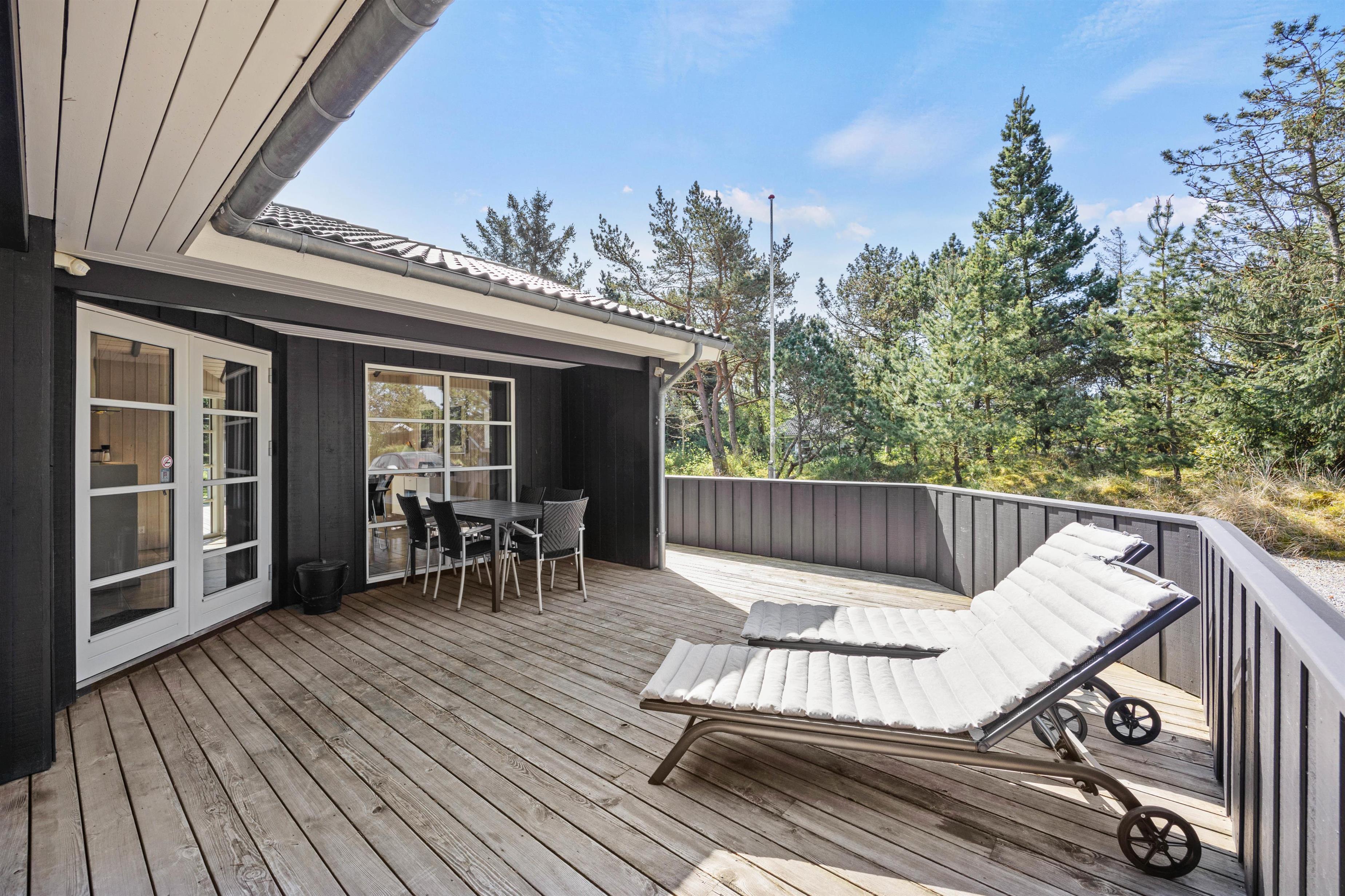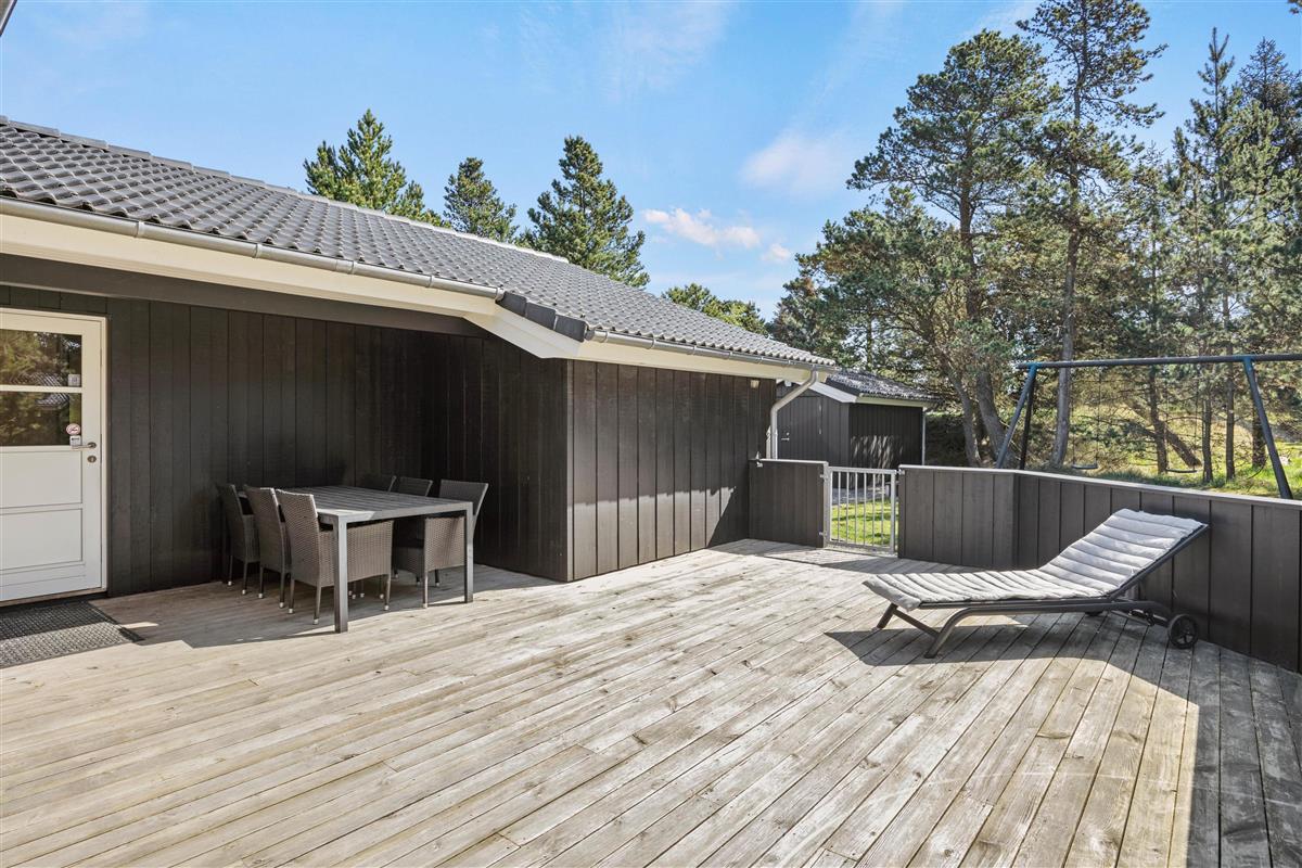 The holiday home in Blåvand is surrounded by expansive lawns, offering plenty of space for activities and relaxation. Mature trees in the garden provide welcome shade on hot summer days and create an idyllic atmosphere for enjoying nature.