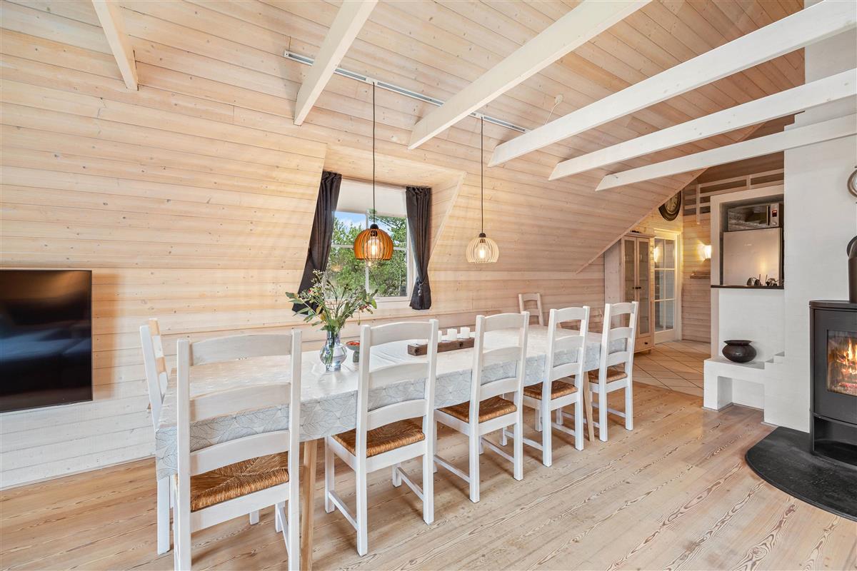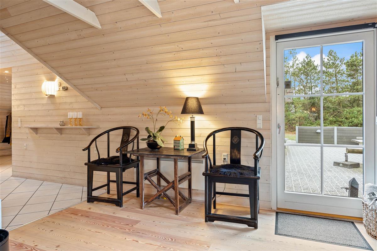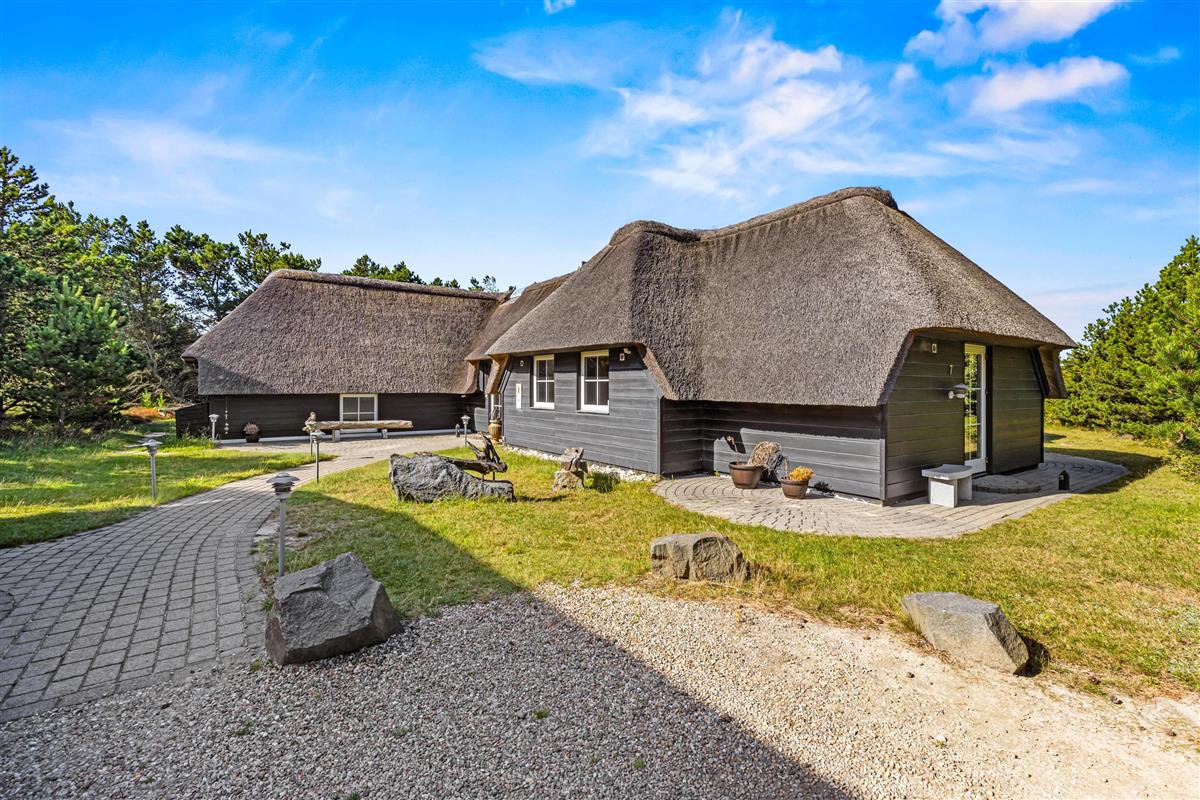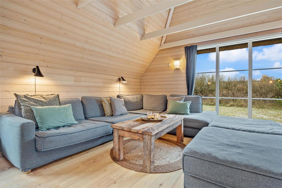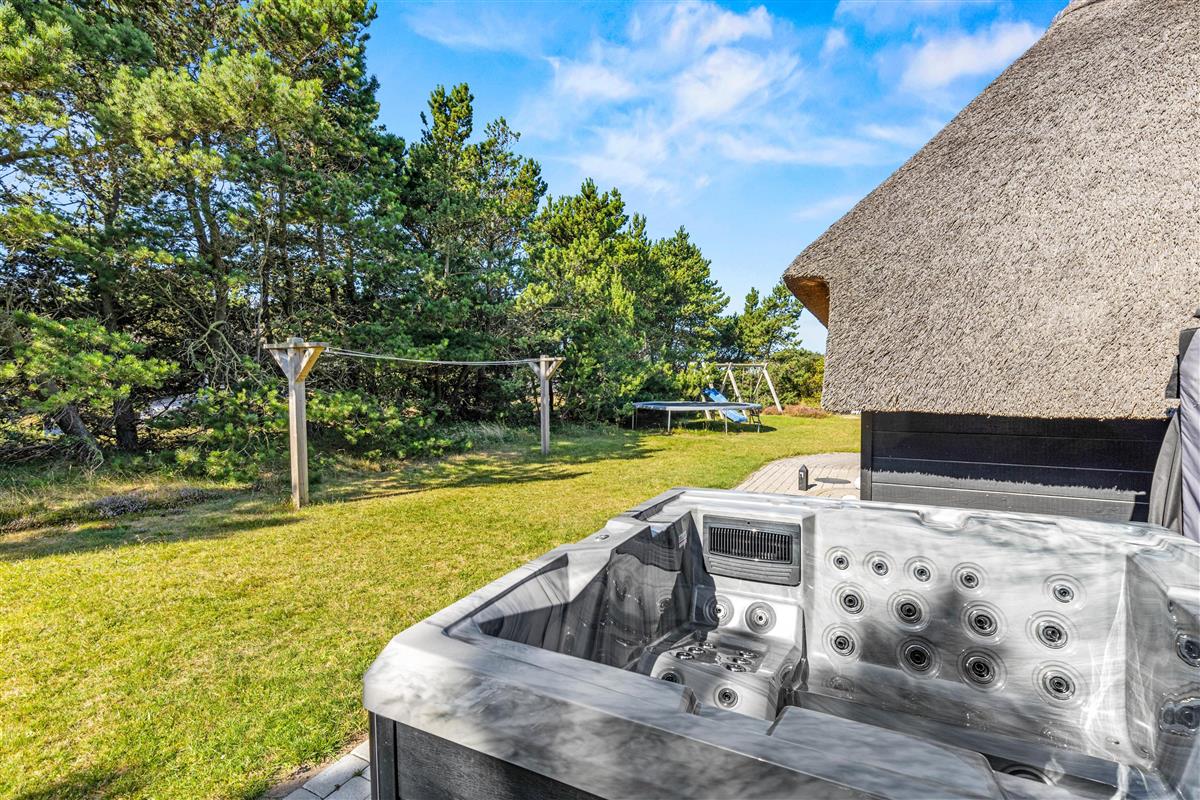During the summer months, this beautiful holiday home extends to include another room - your space in the sun, the terrace. It's well-sheltered and private, allowing complete freedom of movement. Here you can relax in the hot tub and enjoy the warm water, surrounded by nature under the open sky. When the west wind blows, you'll even hear the sound of waves, creating a truly heavenly experience.