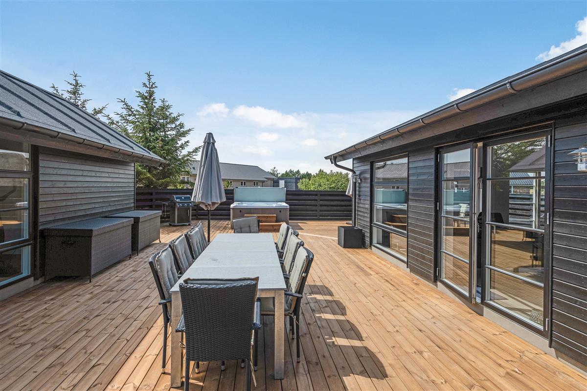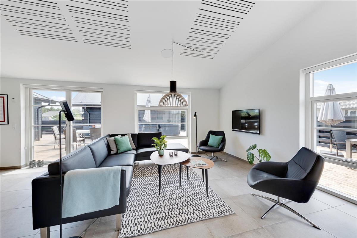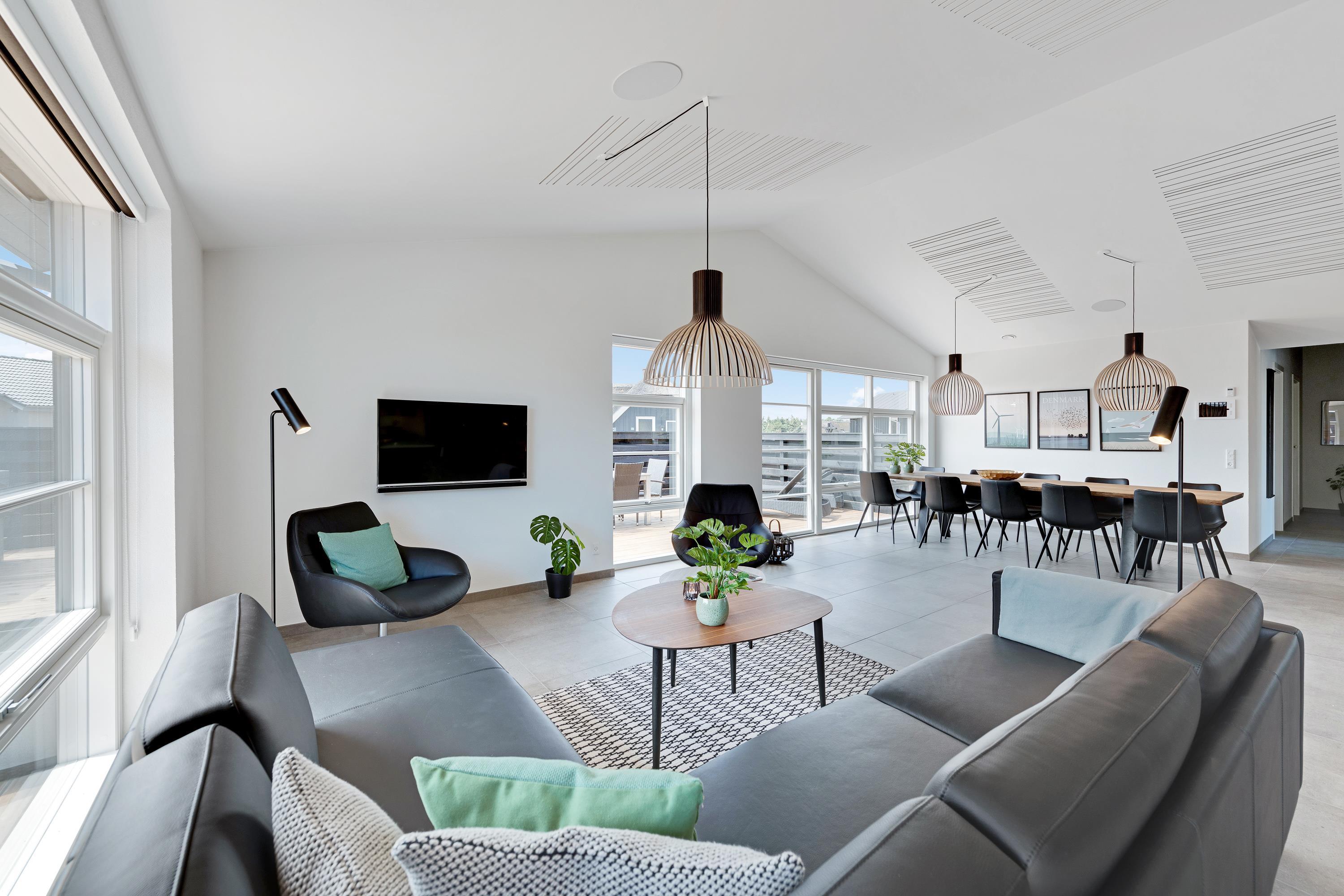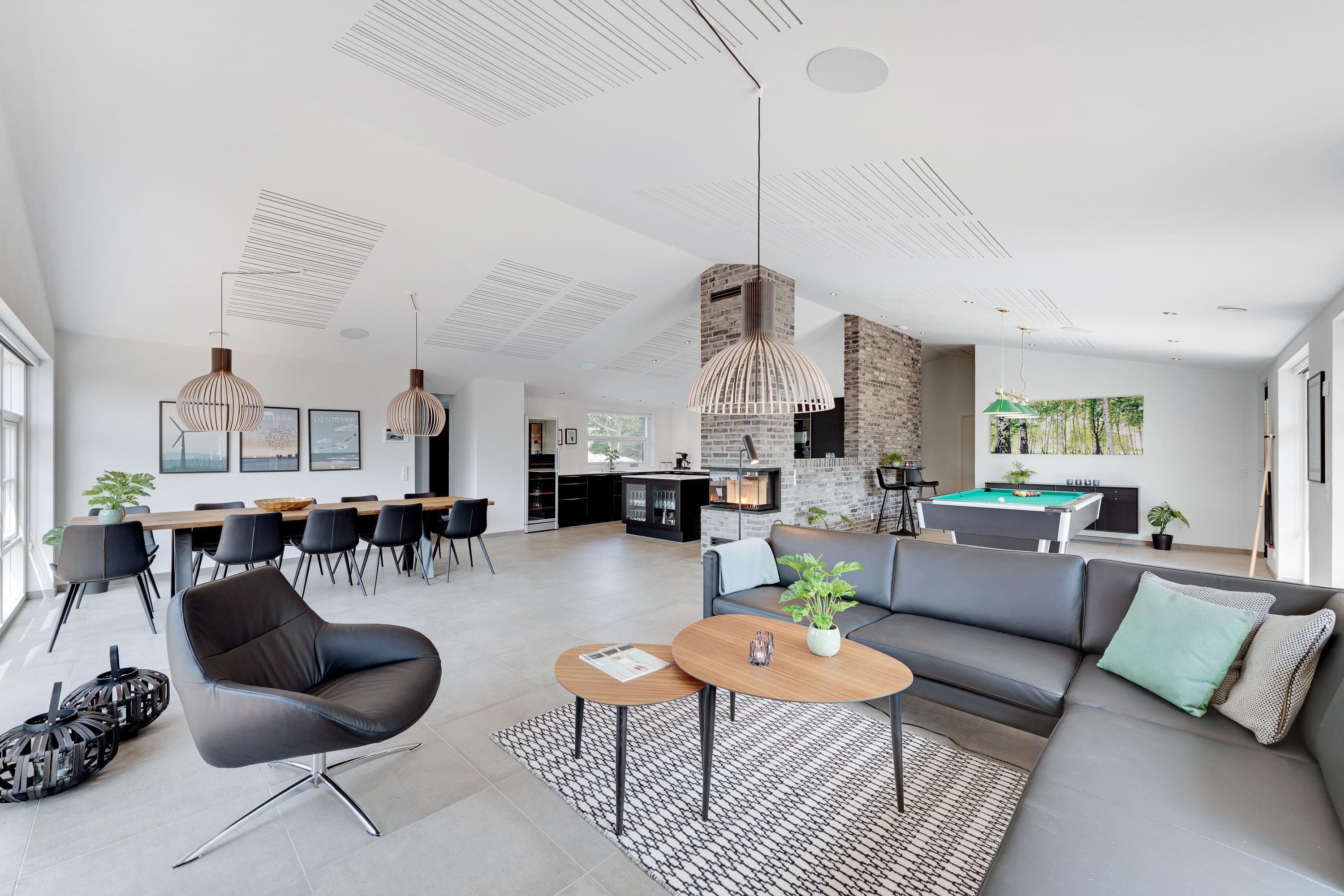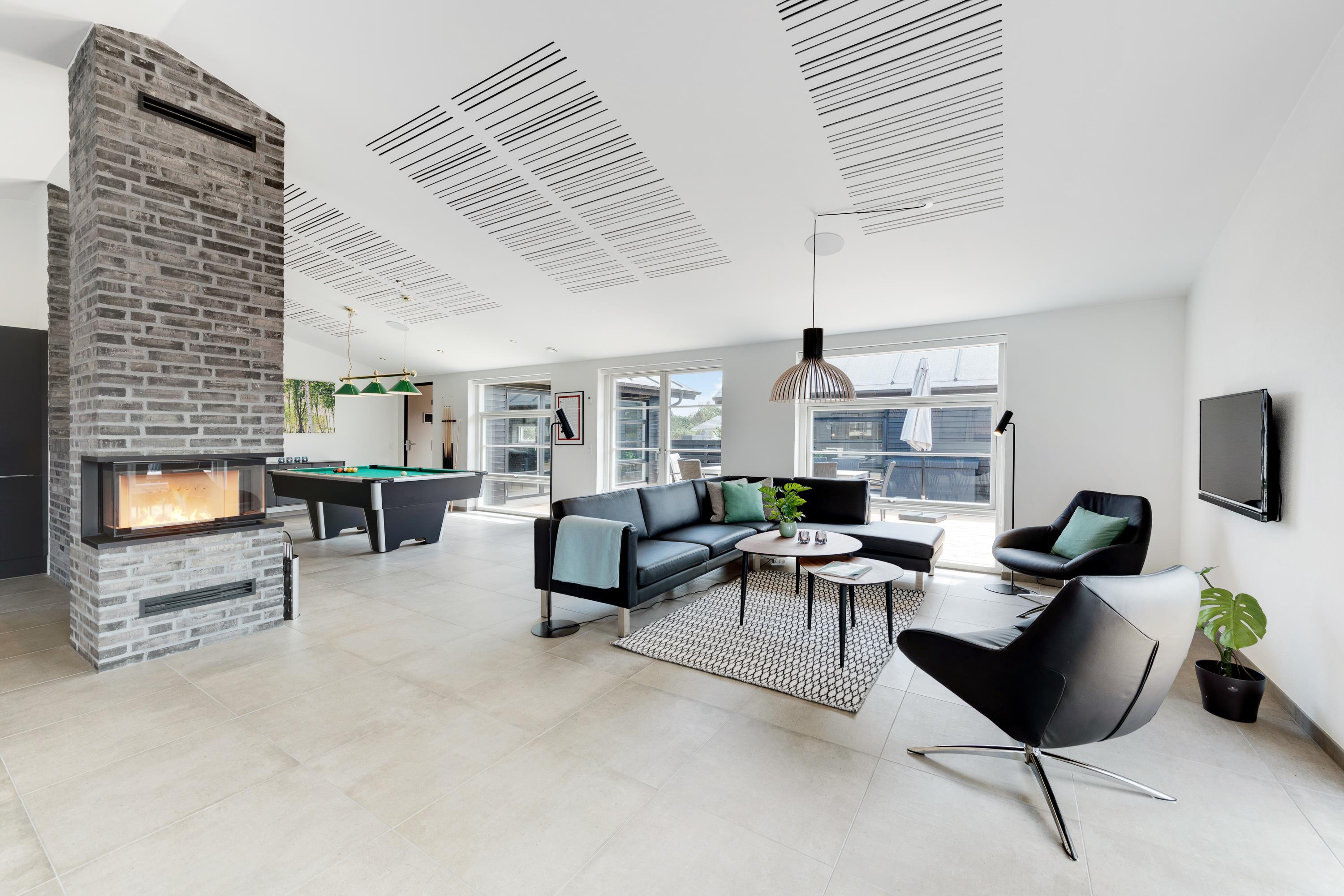 This exclusive holiday home is stylishly furnished with high-quality modern furniture and tasteful details throughout. It accommodates up to 10 people across five bedrooms. While there's plenty of space for group activities, the holiday home also offers quiet corners for those seeking relaxation.