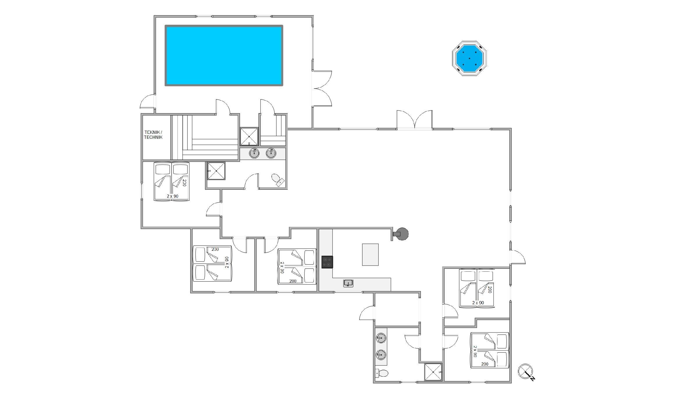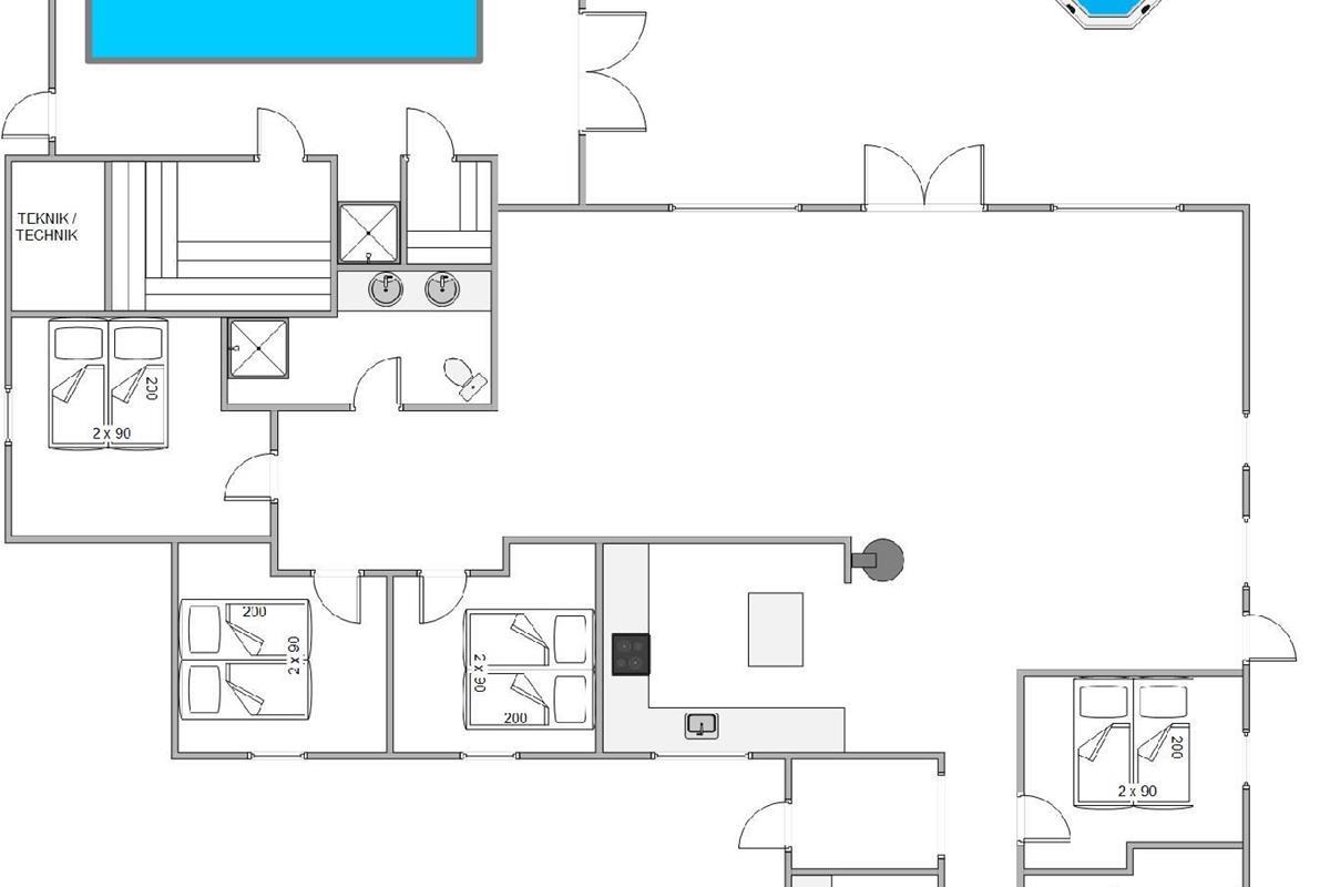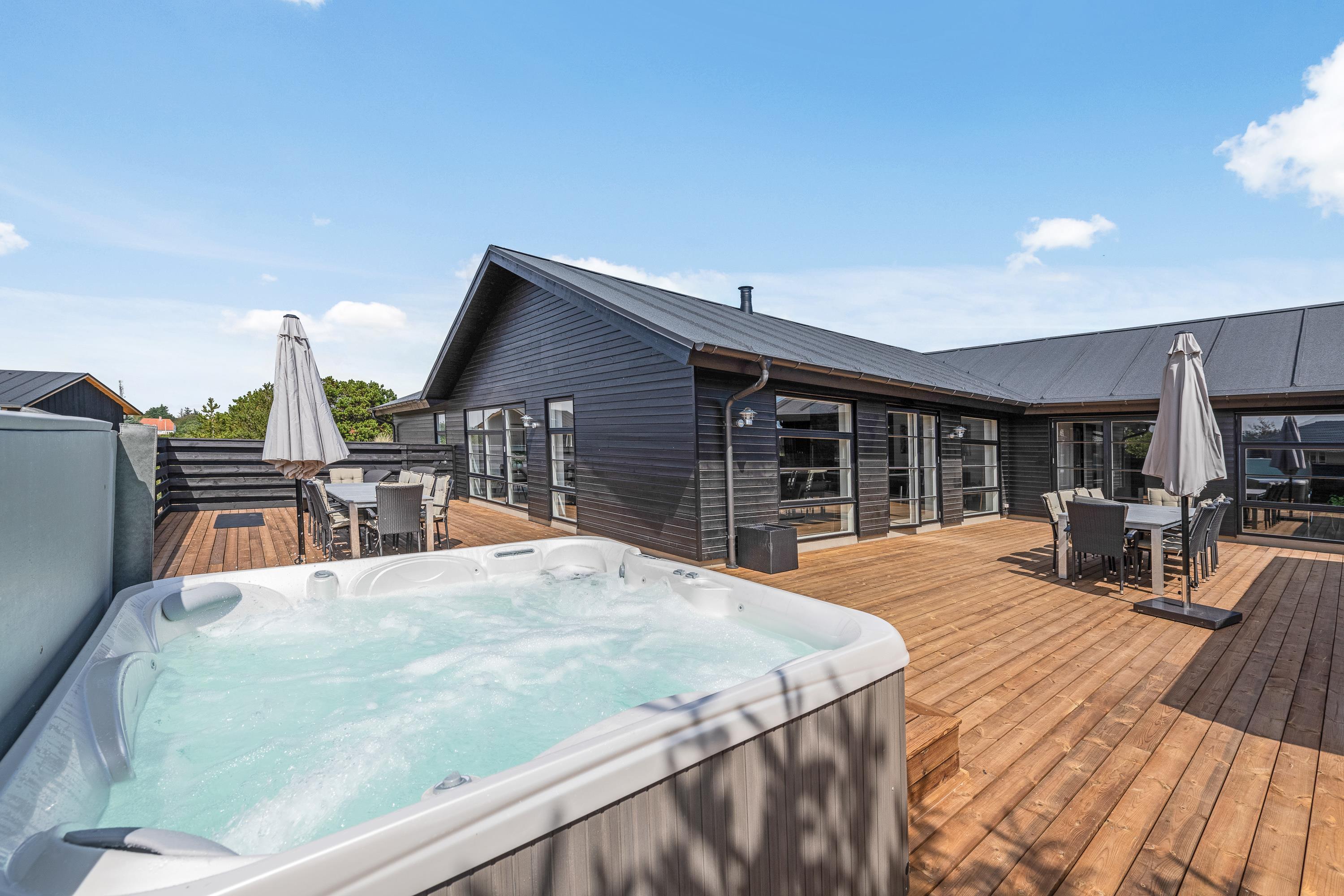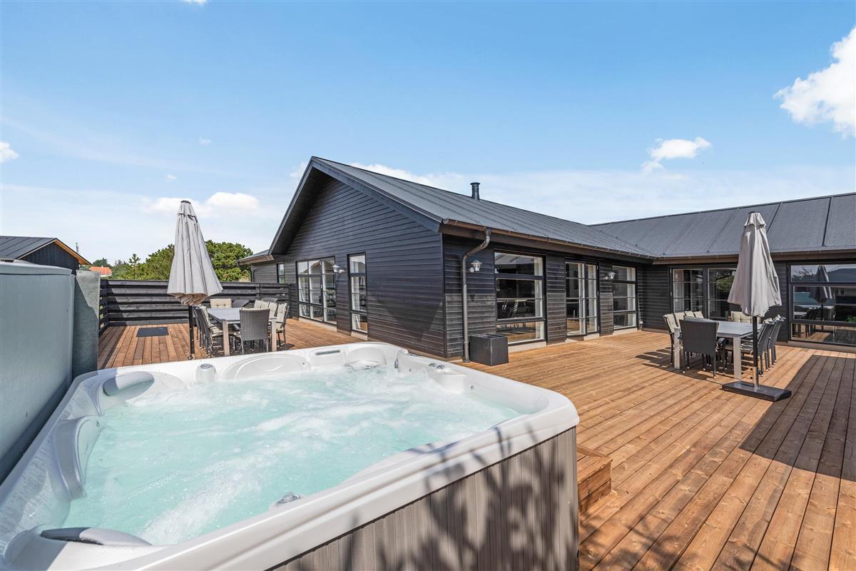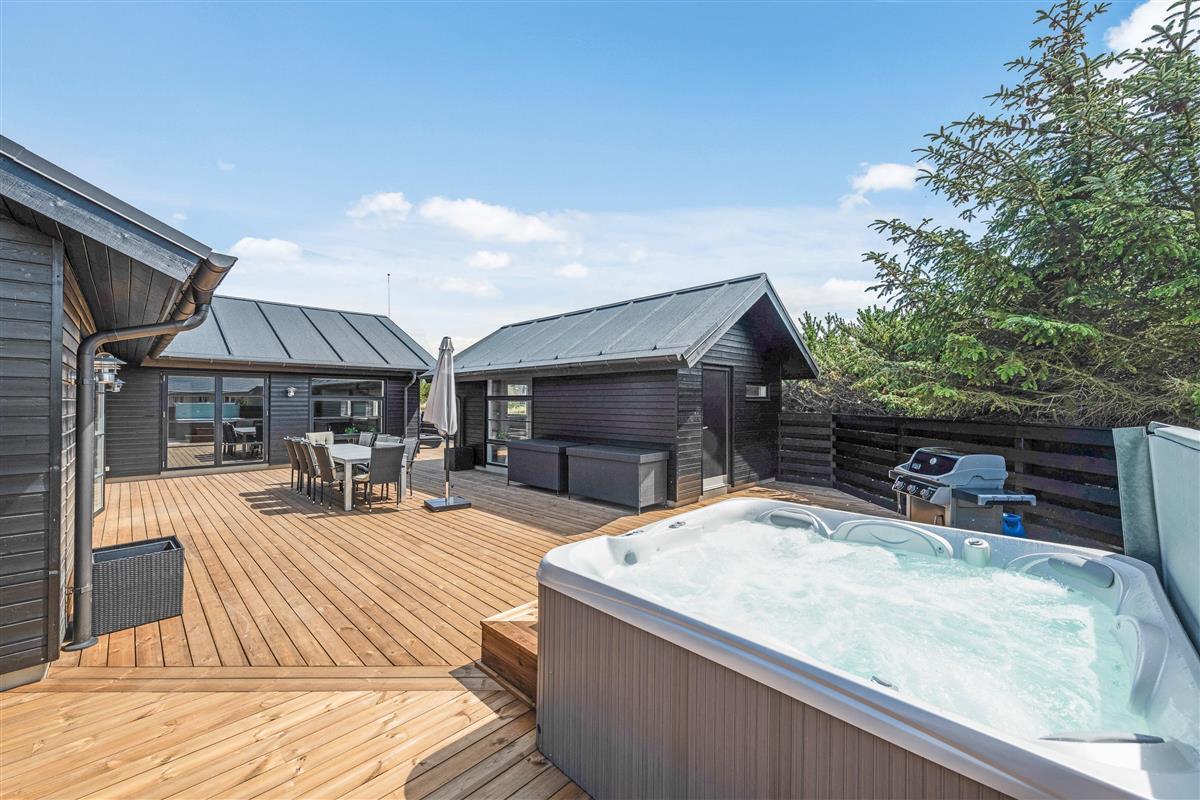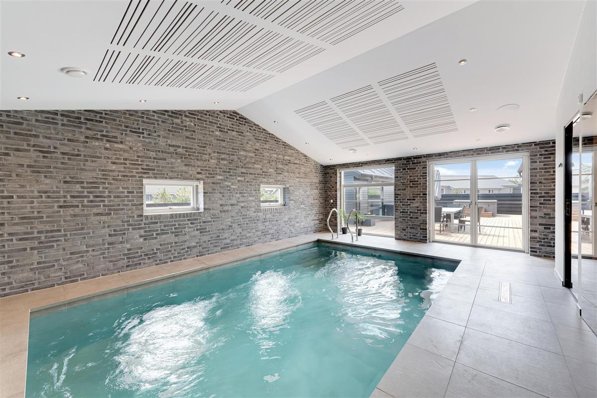 This unique holiday home is just a stone's throw from the North Sea, nestled in the beautiful natural surroundings of Blåvand. This exclusive pool house at Skippervej 24 is equipped with everything holiday dreams are made of. It features a swimming pool with counter-current system, a sauna, an outdoor hot tub, and a games room - to name just a few highlights of this magnificent holiday home. Both adults and children can enjoy unforgettable holidays here.
