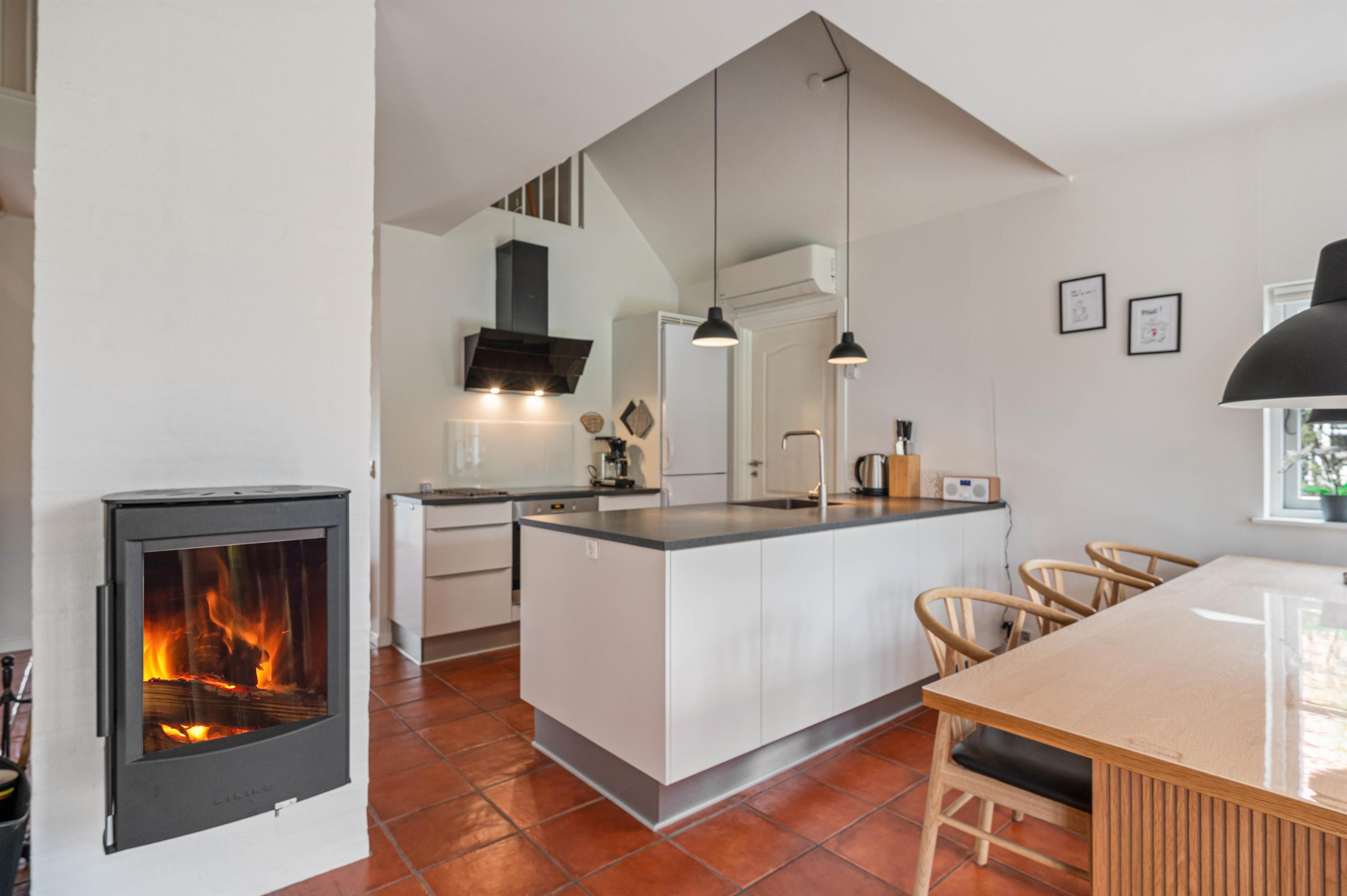 This two-storey holiday apartment in Blåvand accommodates up to 6 people – and your dog is welcome too. The apartment features modern furnishings with lovely bedrooms, a classic wood-burning stove, and a well-equipped kitchen with dishwasher. Here you can make yourself comfortable and enjoy some board games.