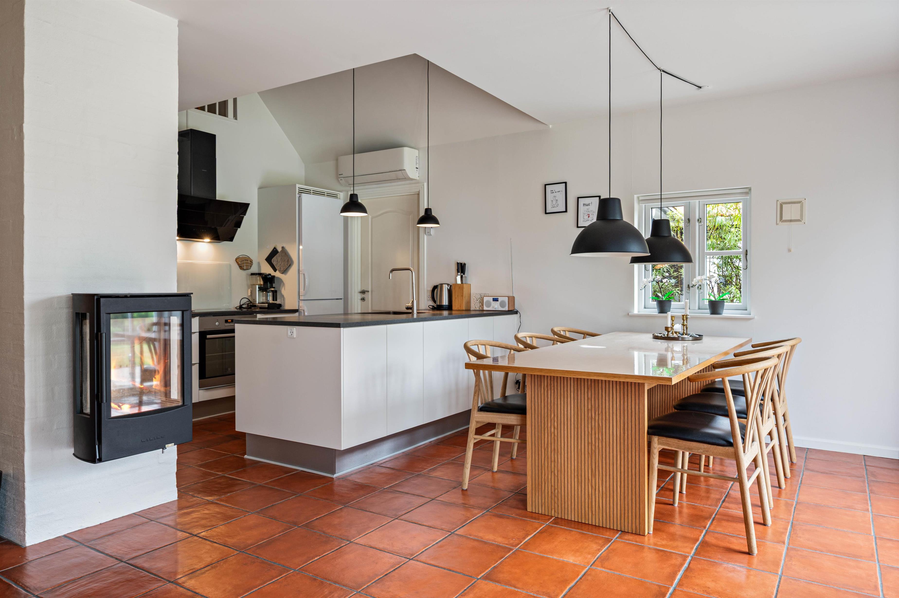 You'll have your own terrace with lawn and views of the small river winding through the area – pure idyll. For warmer summer days, the terrace is equipped with garden furniture and a barbecue. Over a glass of wine and a delicious dinner prepared on the barbecue, you can enjoy the setting sun while planning your next day's activities.