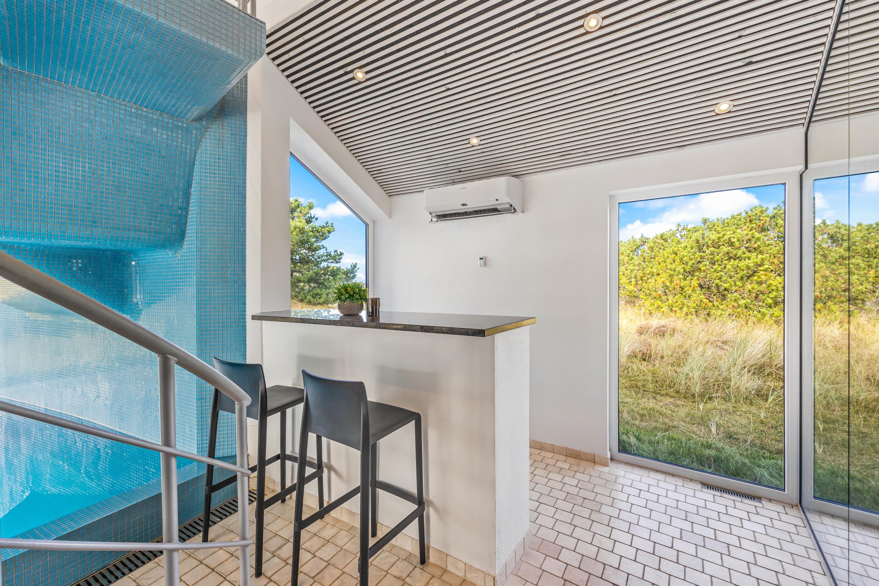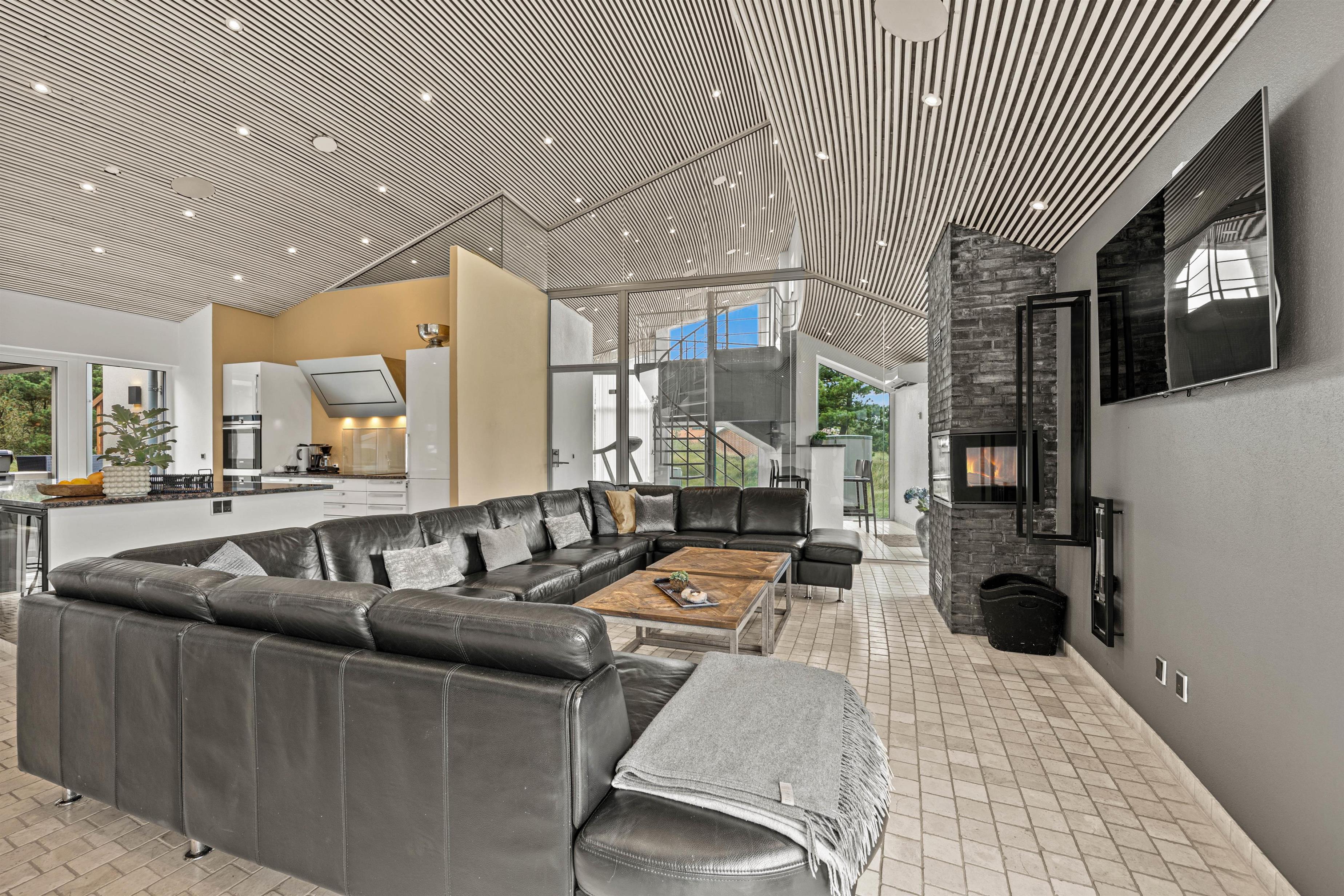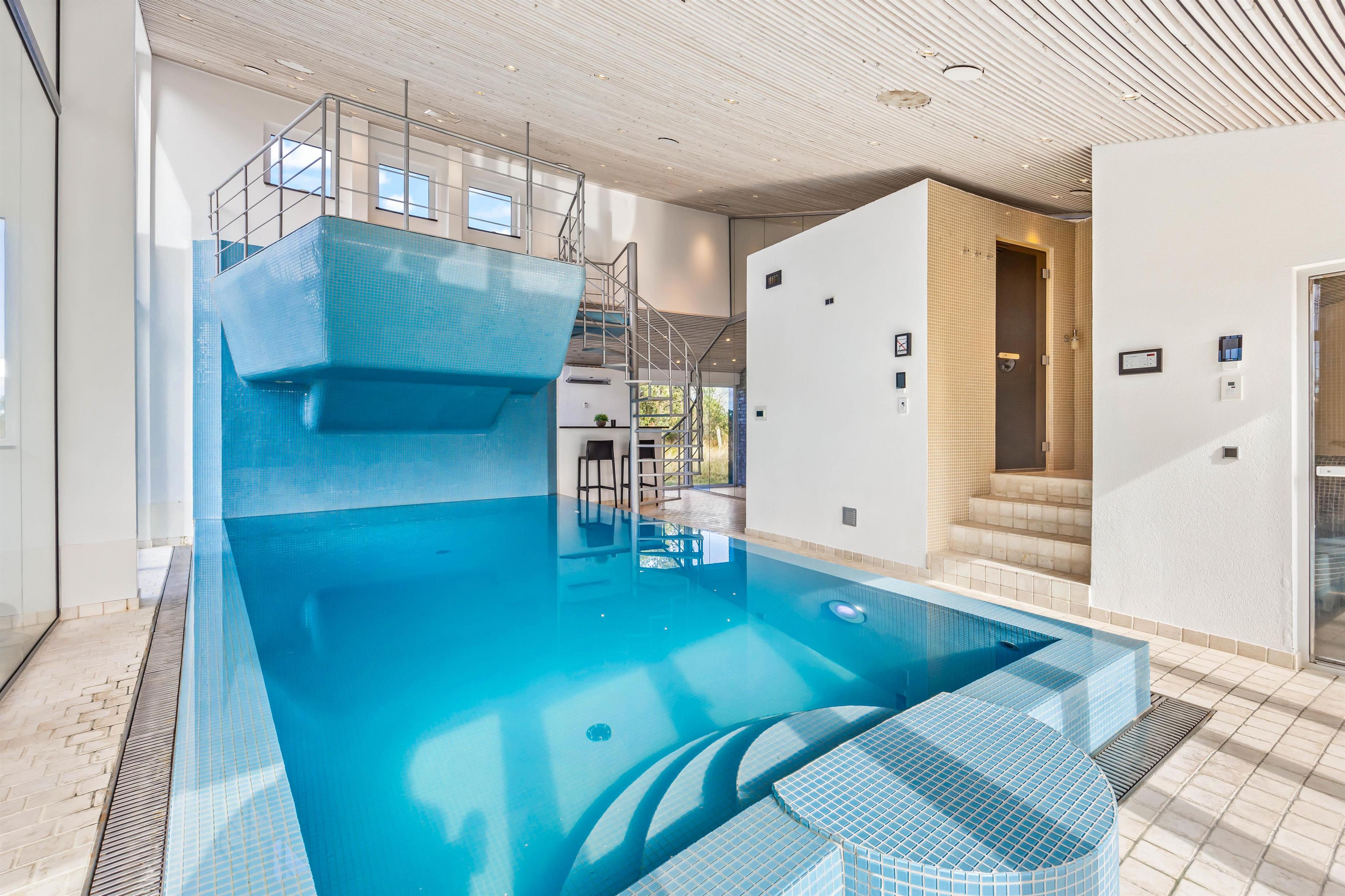 Experience exceptional luxury and modern design in this unique holiday home at Nordkrogen 12 in Blåvand. A holiday home where no wish goes unfulfilled. The wellness area with swimming pool, sauna, steam room with starlit ceiling and fitness room, modern designer furnishings, and a location close to nature where you might spot local wildlife, all combine to make your holiday an unforgettable experience.