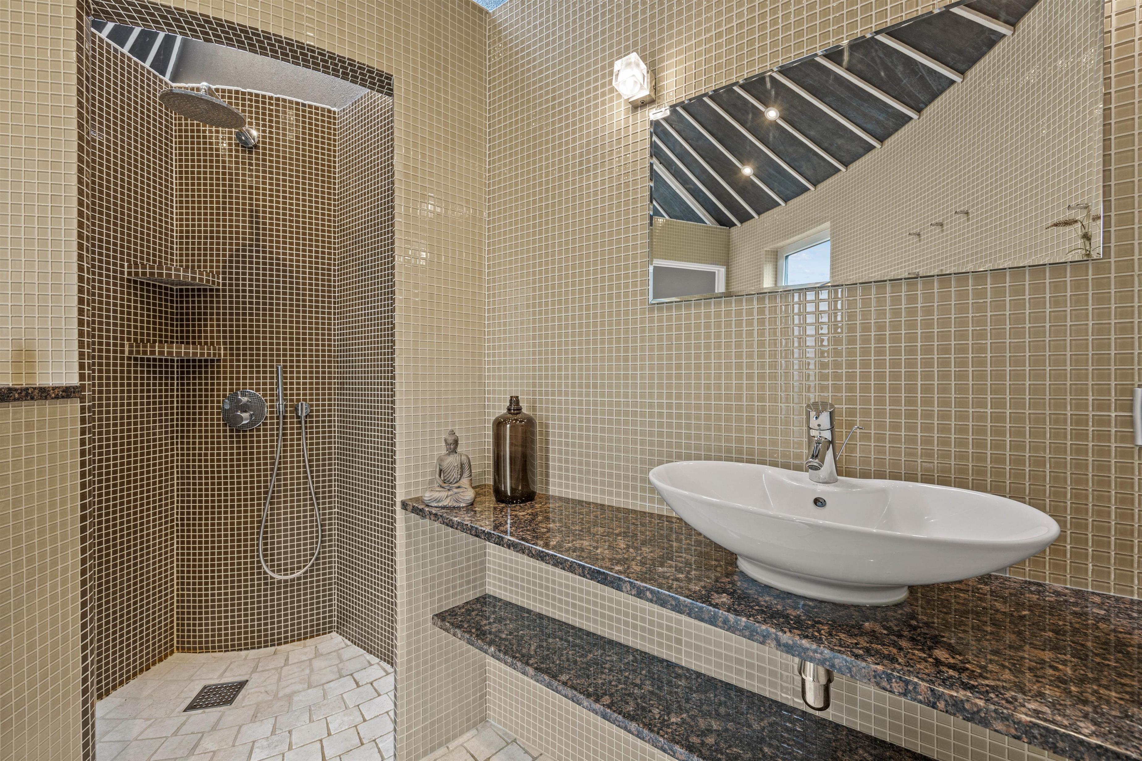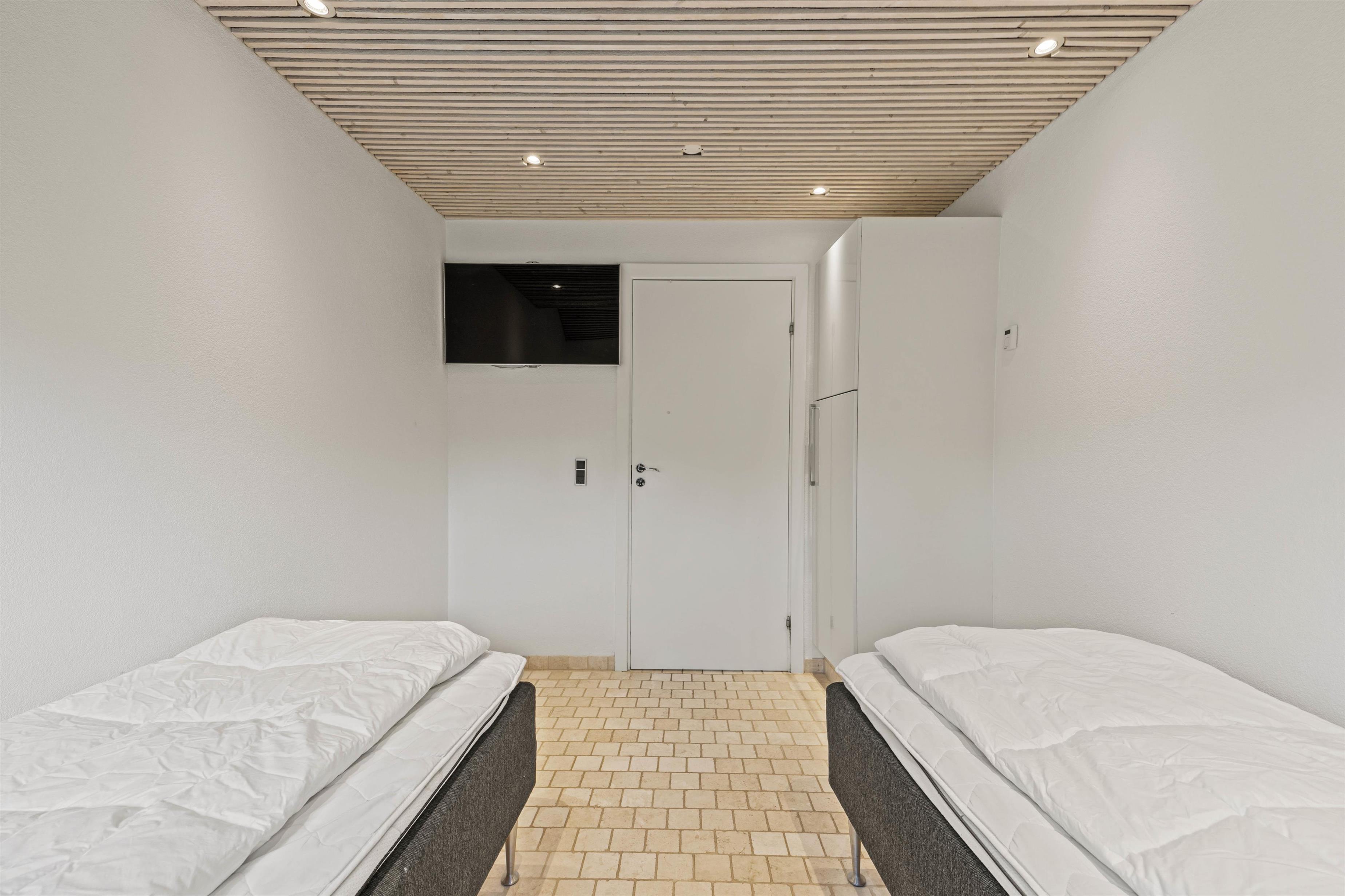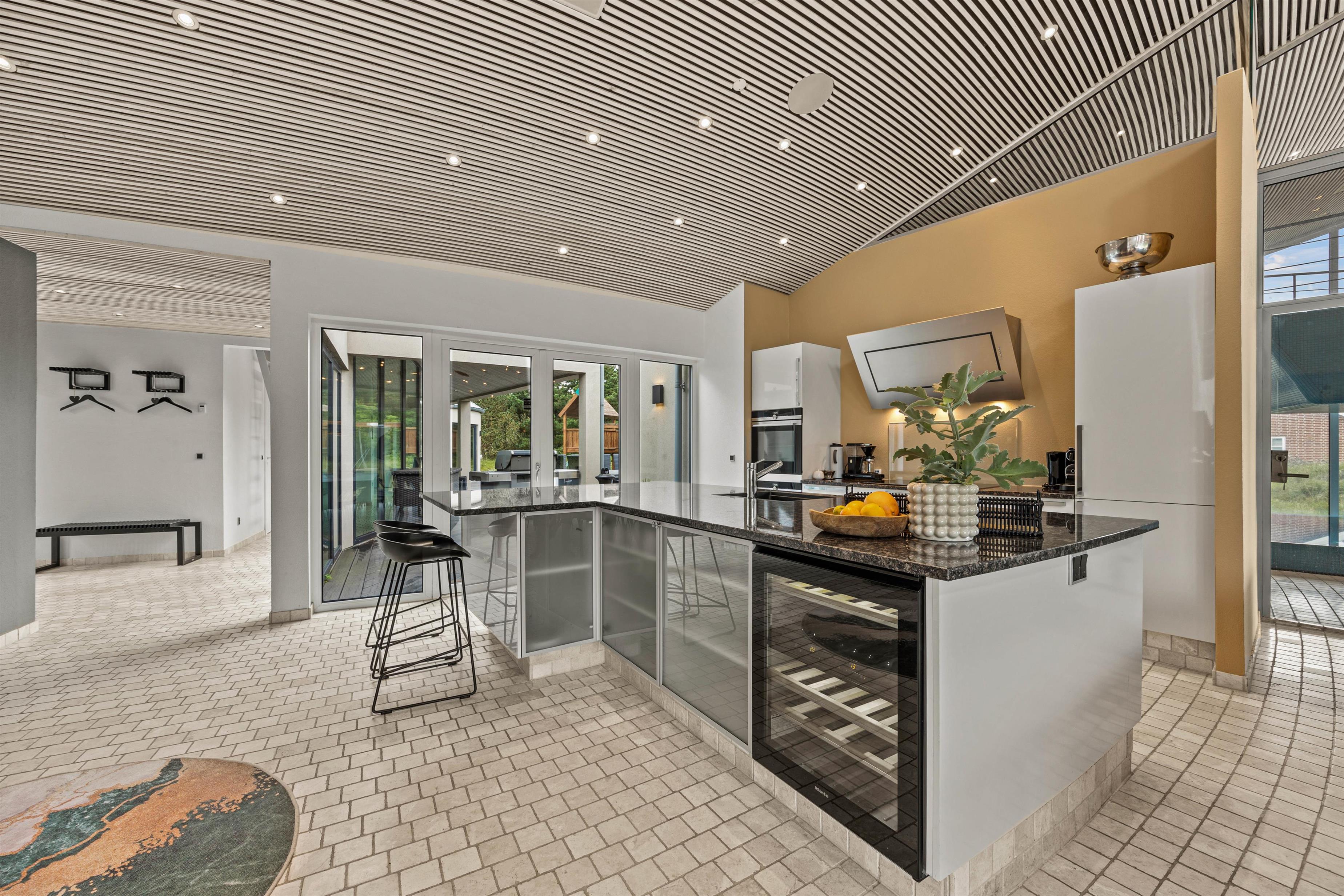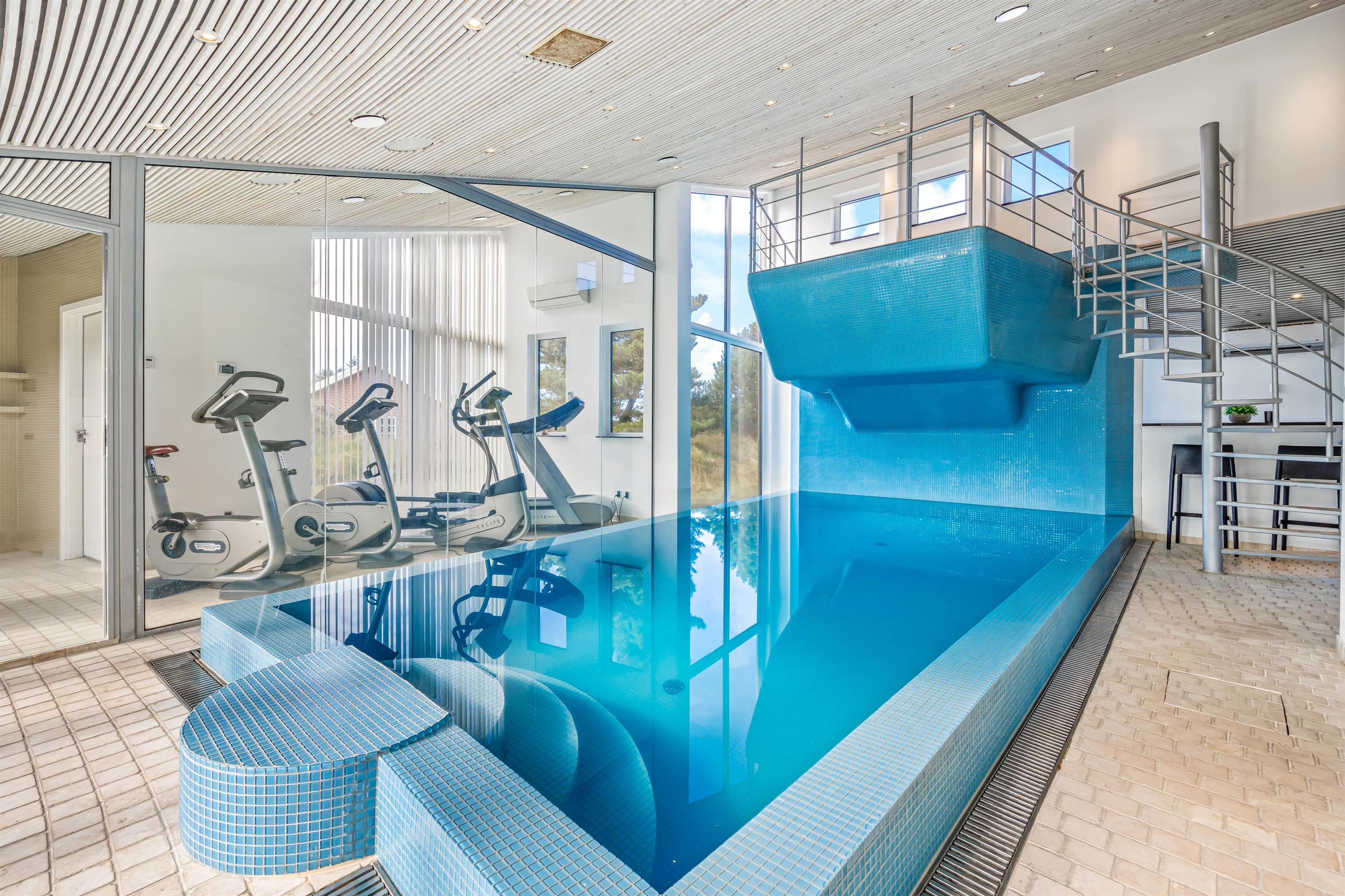 Experience exceptional luxury and modern design in this unique holiday home at Nordkrogen 12 in Blåvand. A holiday home where no wish goes unfulfilled. The wellness area with swimming pool, sauna, steam room with starlit ceiling and fitness room, modern designer furnishings, and a location close to nature where you might spot local wildlife, all combine to make your holiday an unforgettable experience.