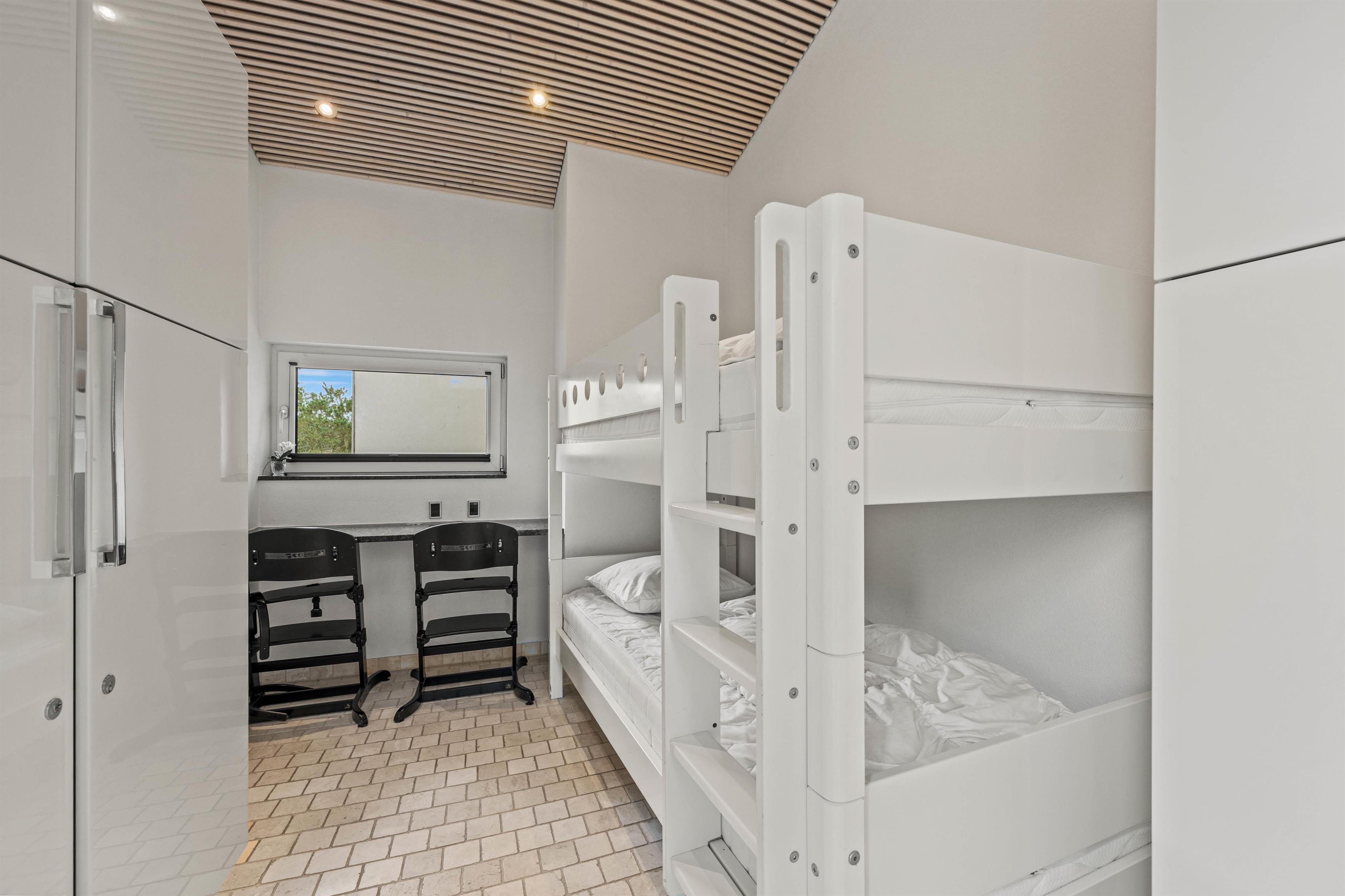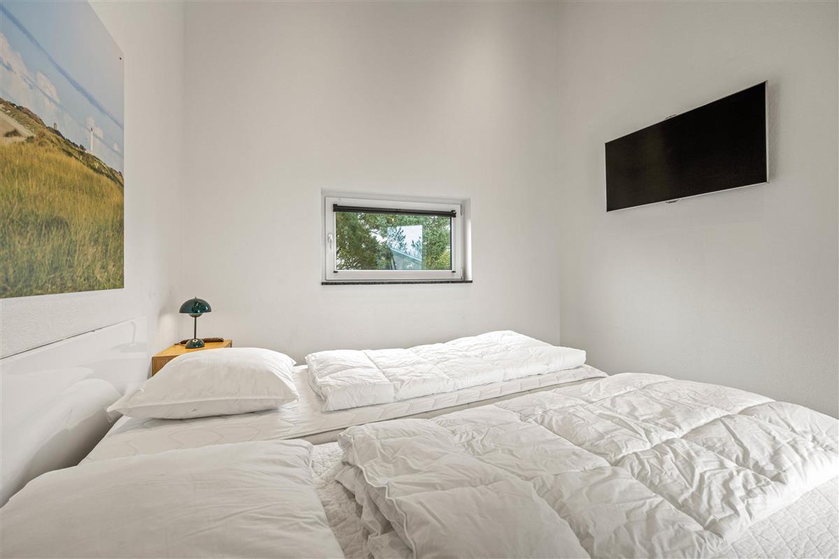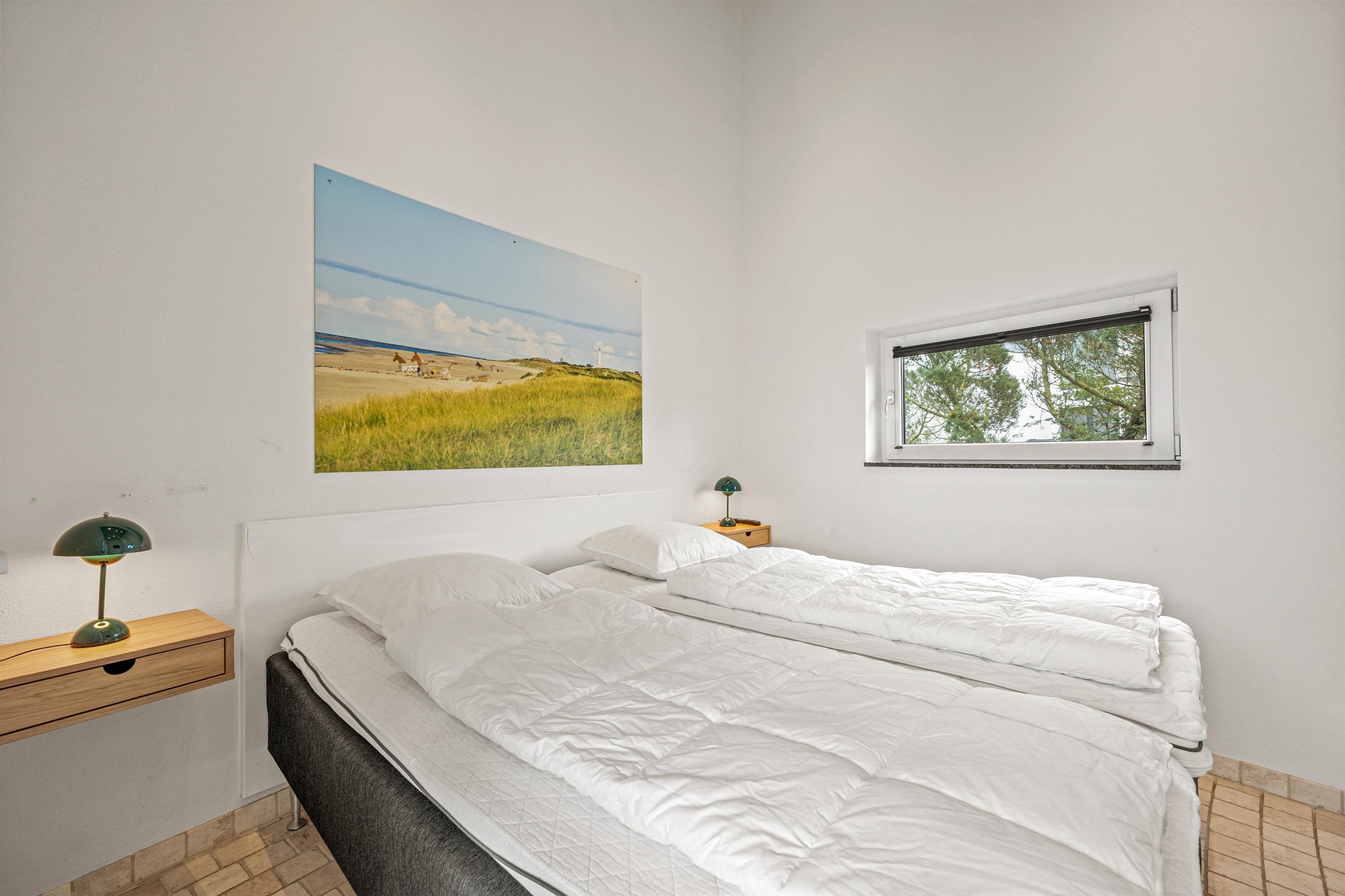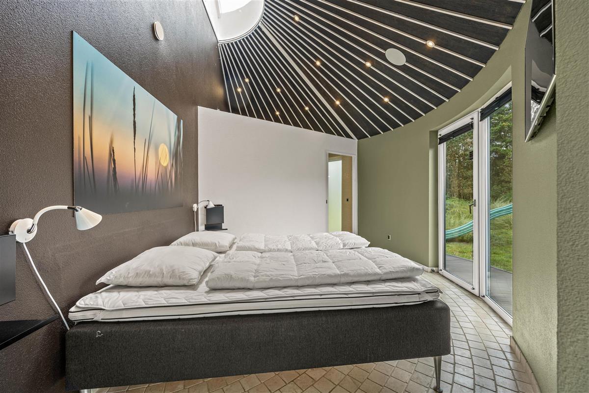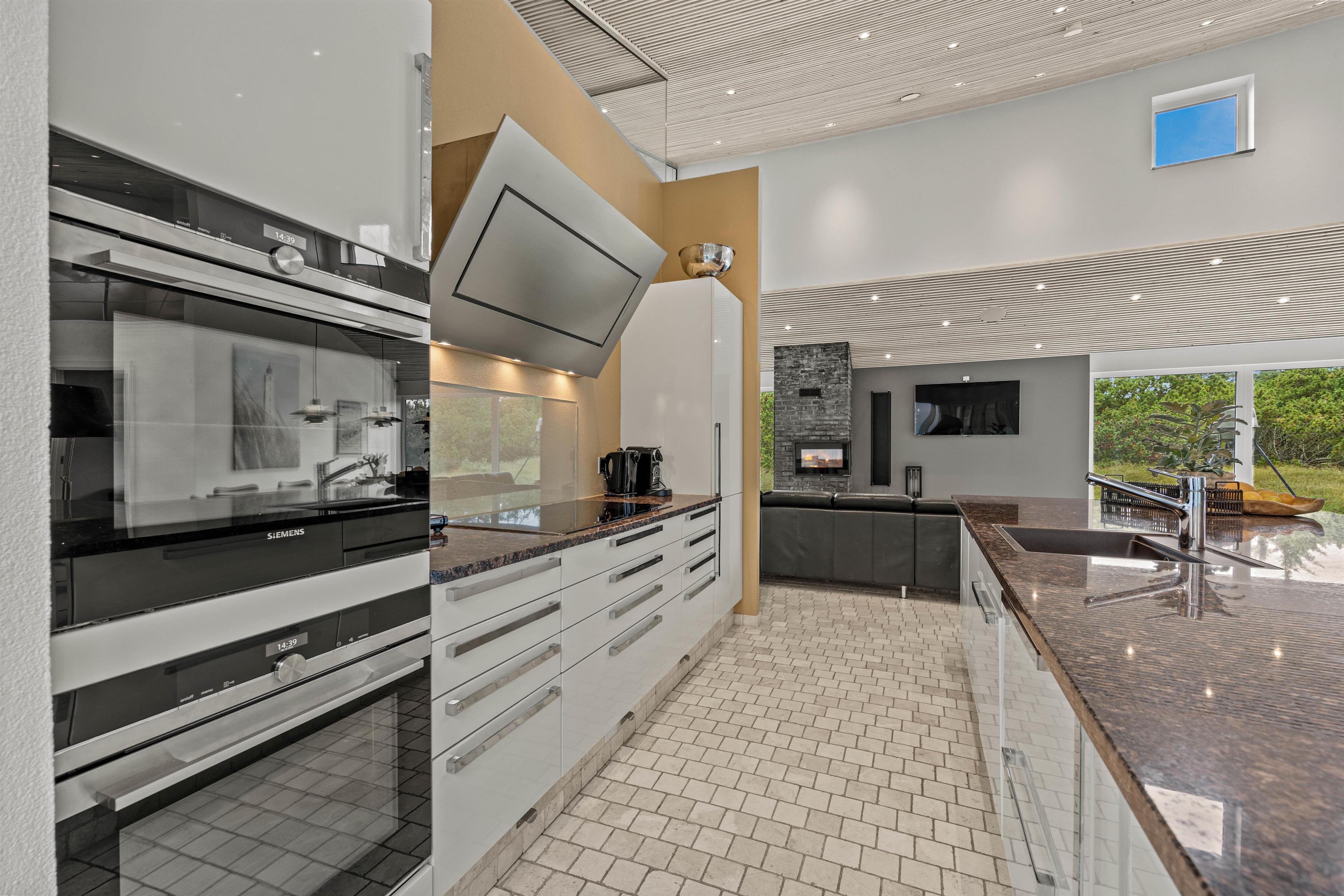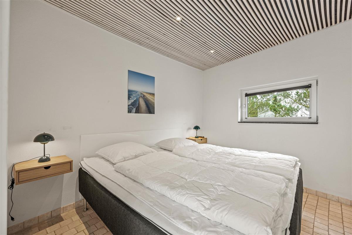 The spacious living area with open-plan kitchen and large dining table is perfect for spending time together. Through the large windows spanning the entire front of the house, you'll feel immersed in the Danish West Coast's natural environment. As the holiday home borders a large nature reserve, your only visitors on the private grounds will be the occasional deer or rabbit.
