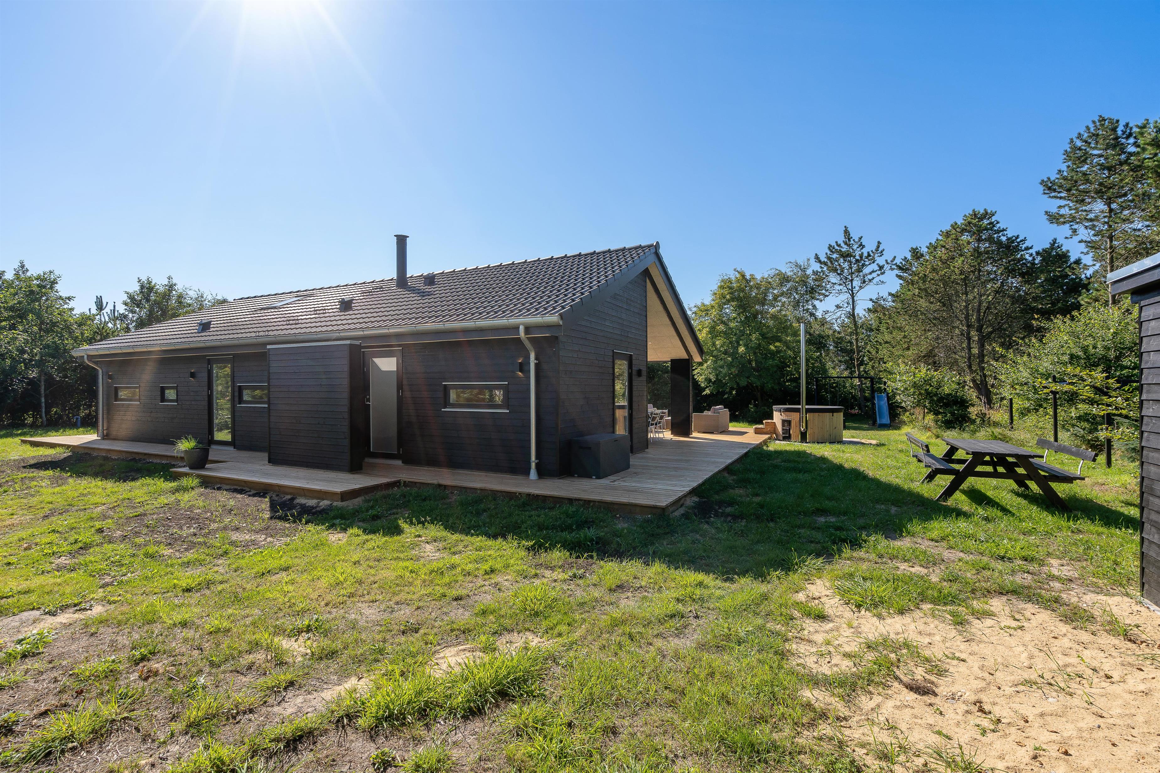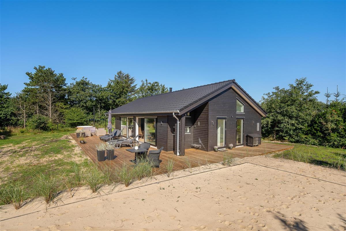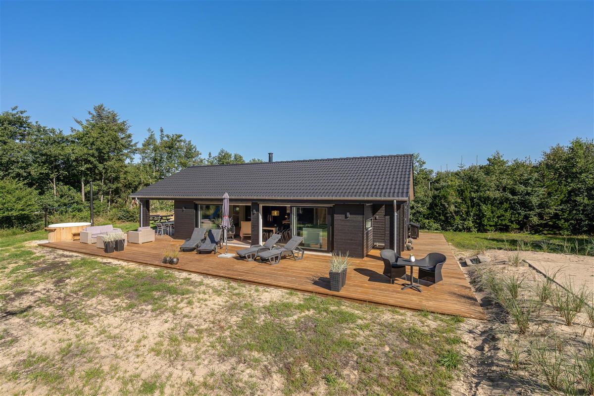 Located at Hvidbjerg Strandvej 46A in Blåvand, this beautiful newly built holiday home is ready for a fantastic family holiday in Denmark. The cosy Scandinavian-style interior creates a wonderfully welcoming atmosphere. In the outdoor area, you can make the most of warm summer days, cooling off under the outdoor shower or relaxing in the Nordic-style hot tub.