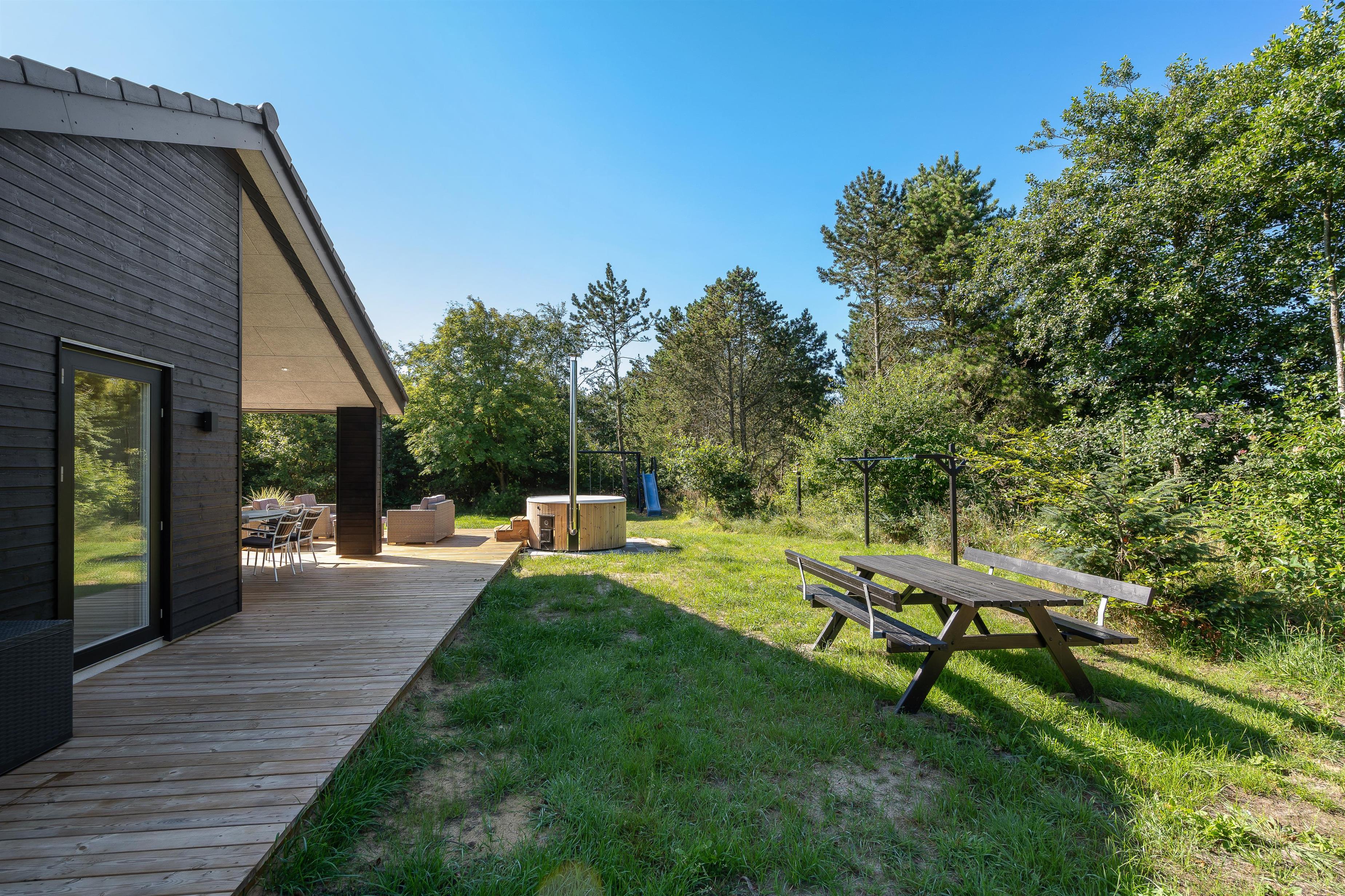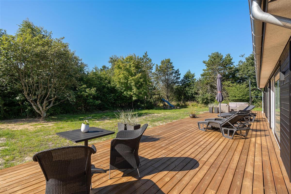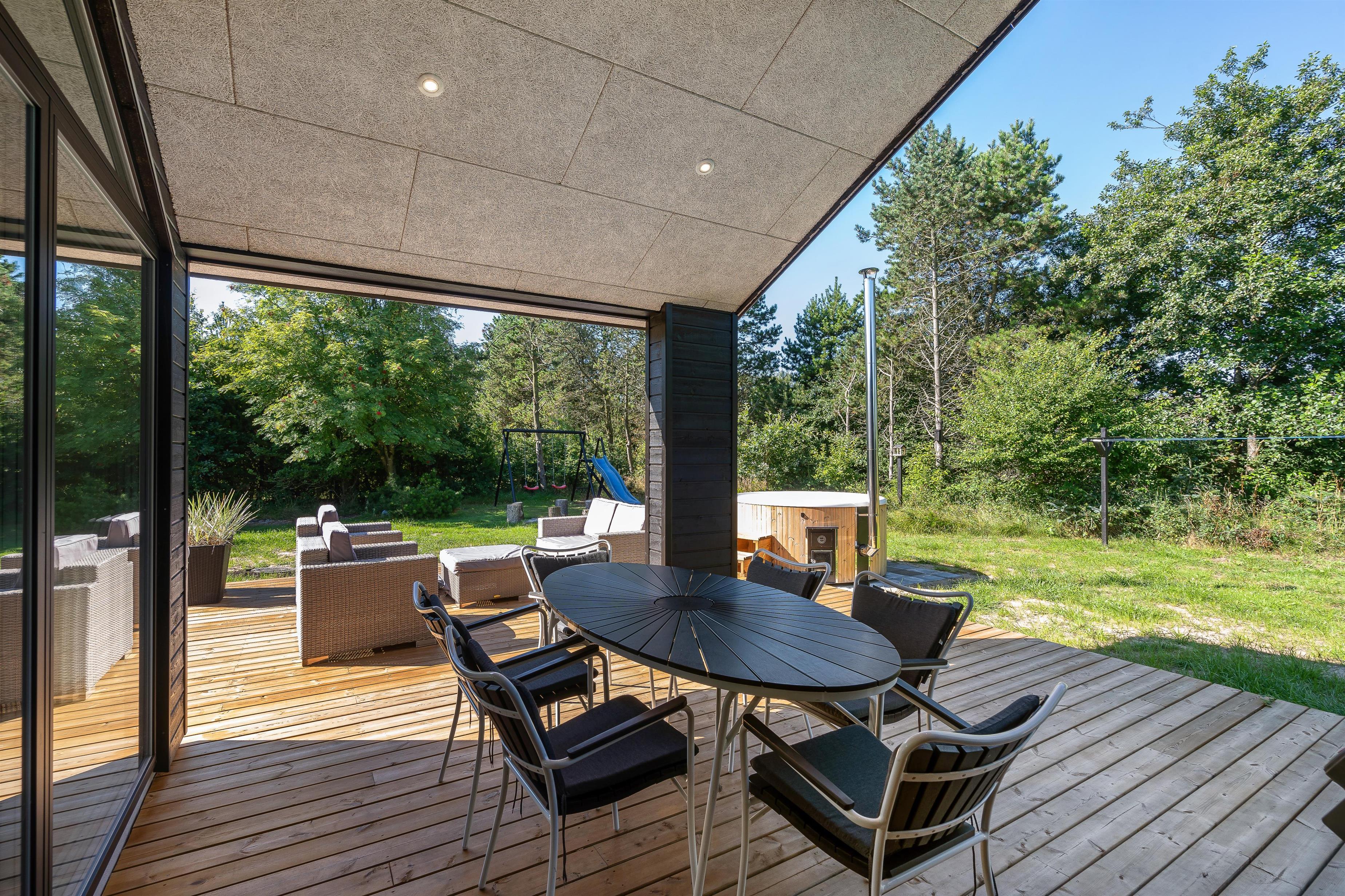 Another highlight awaits you outdoors. You can truly unwind in the warm waters of the Nordic-style hot tub under the open sky. It's particularly magical when the stars appear over Blåvand - a genuine holiday highlight.