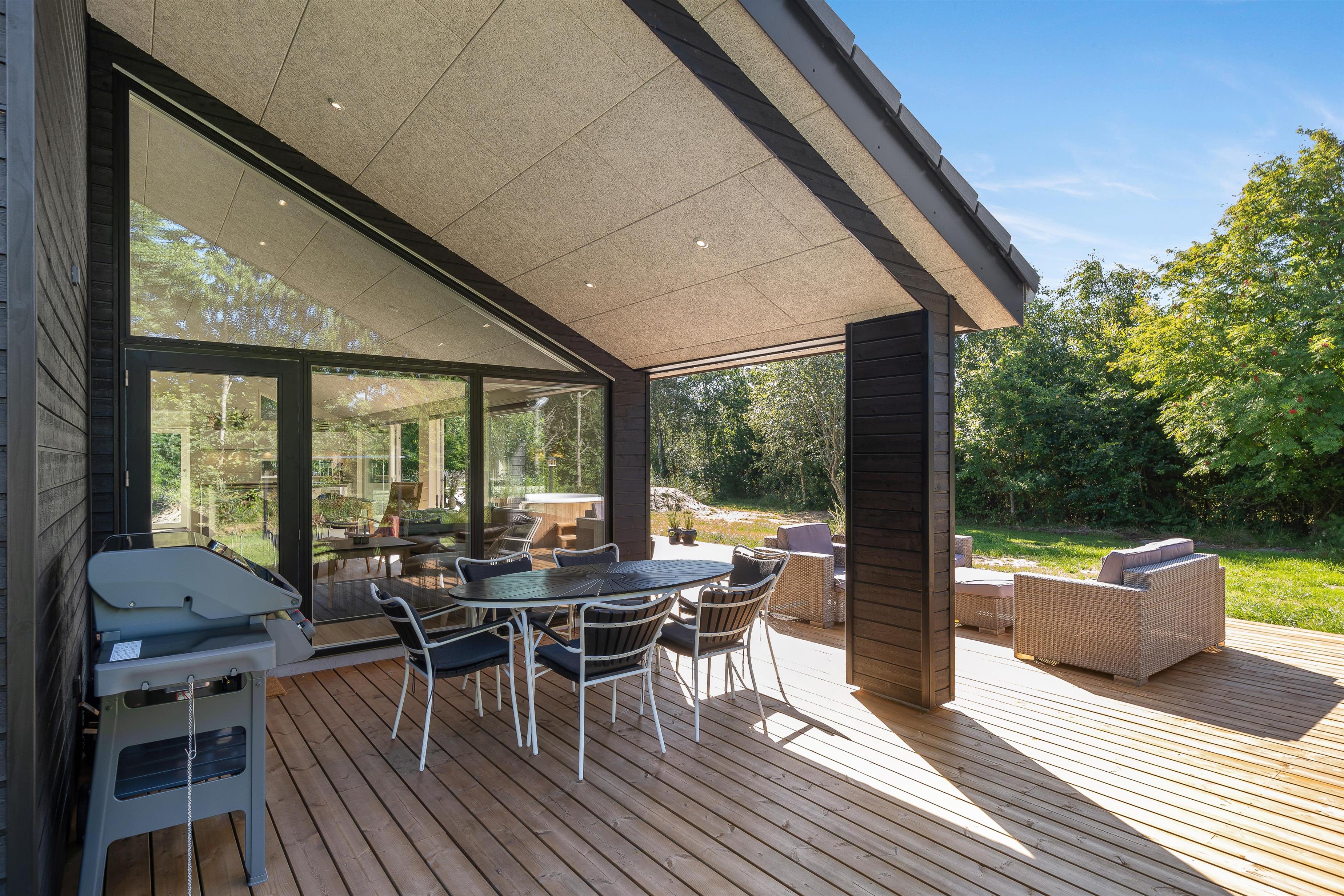Part of the terrace is covered, perfect for setting the dinner table while the first steaks and sausages sizzle on the gas barbecue. Add a glass of wine, and you have the perfect end to a holiday day in Denmark.