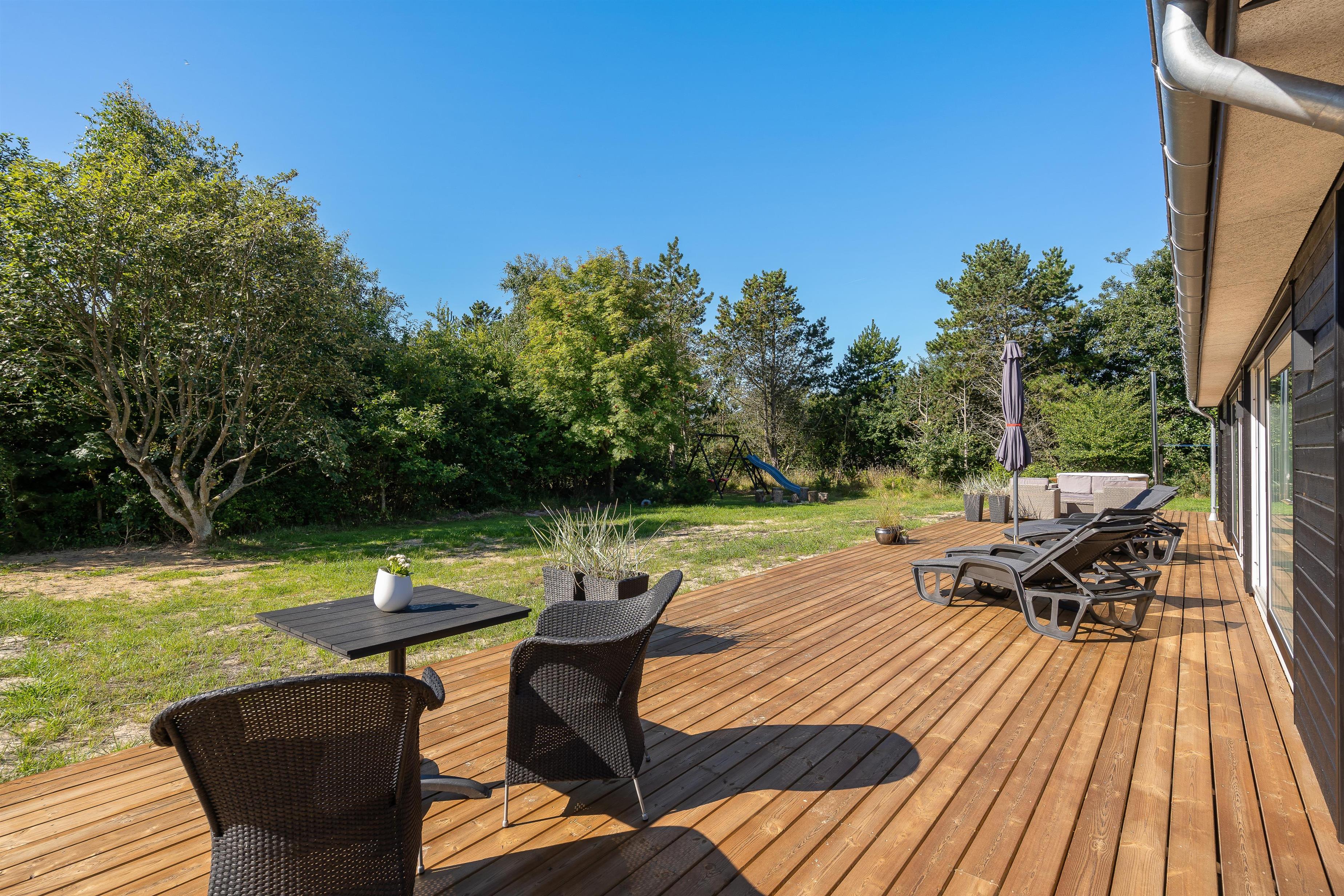 In fine weather, you can truly enjoy your Danish holiday in this holiday home's outdoor space. Relax in sun loungers on the large terrace while children play on the lawn, enjoy the swing, or simply run around in the fresh air. The outdoor shower provides a refreshing cool-down and is perfect for rinsing sandy feet after beach walks. The shower is available from 1st April to 31st October.