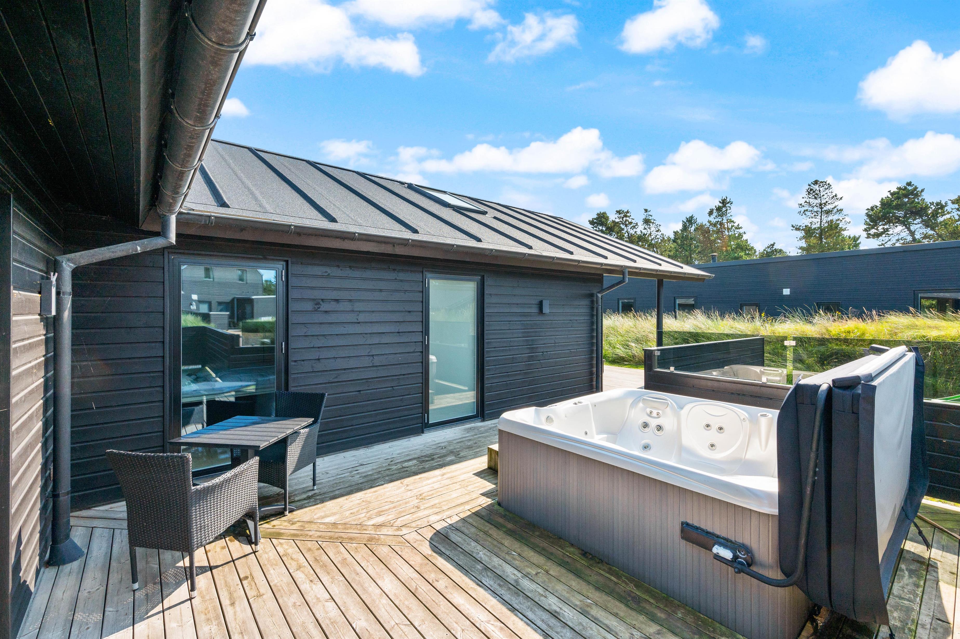 Looking for something extraordinary? Then Gl. Skolevej 8, situated in a newly developed area, is the perfect address! This five-star holiday home accommodates up to 8 people (and 2 dogs) and features excellent interior design to suit all tastes, including a sauna, whirlpool, outdoor hot tub on the terrace, and a games room complete with table football, air hockey and darts.