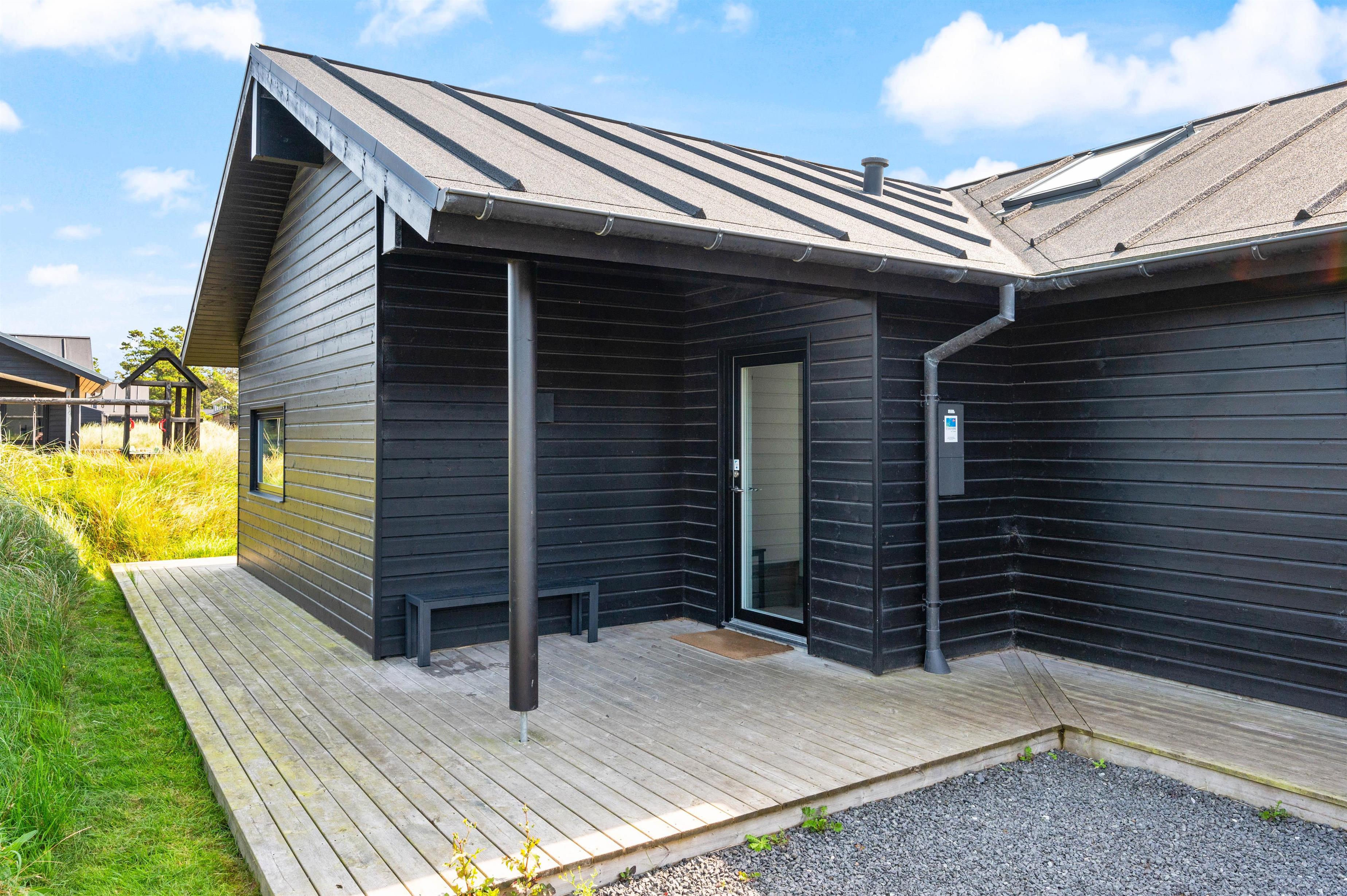 The house is surrounded by a large wooden terrace where you'll easily find a sunny spot. Garden furniture and a barbecue are provided for delightful outdoor dining. On hot summer days, relax in the sun loungers and enjoy your holiday in Blåvand at leisure with a cool drink in hand.