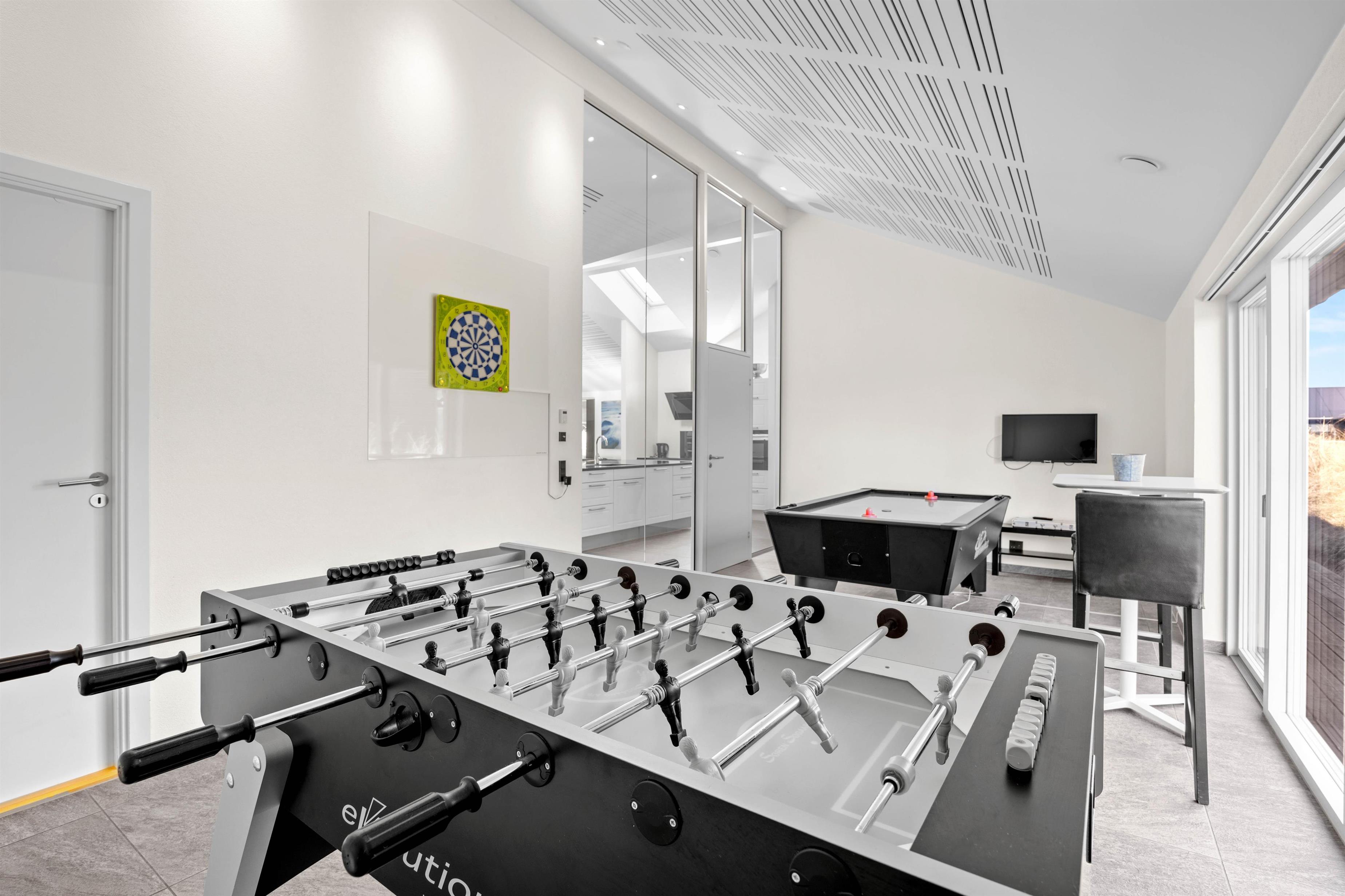 End your day with a wellness evening in the main bathroom, where the hot sauna and bubbling whirlpool provide total relaxation. Meanwhile, competitive spirits can enjoy table football, darts and air hockey in the games room.