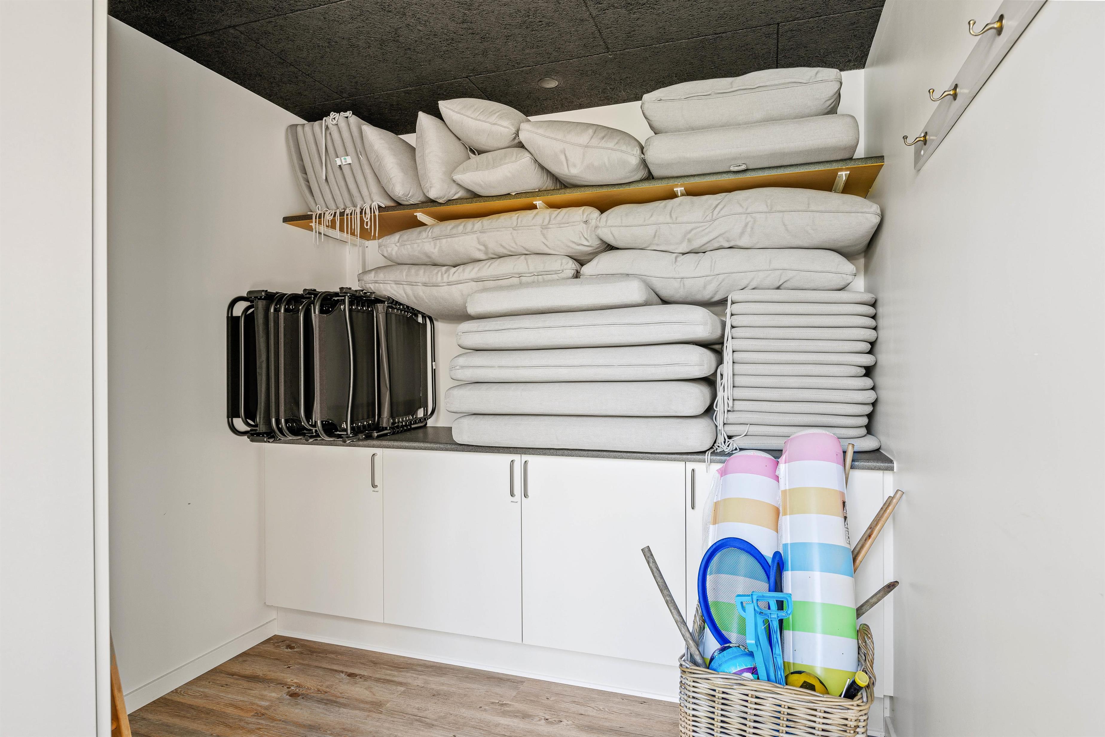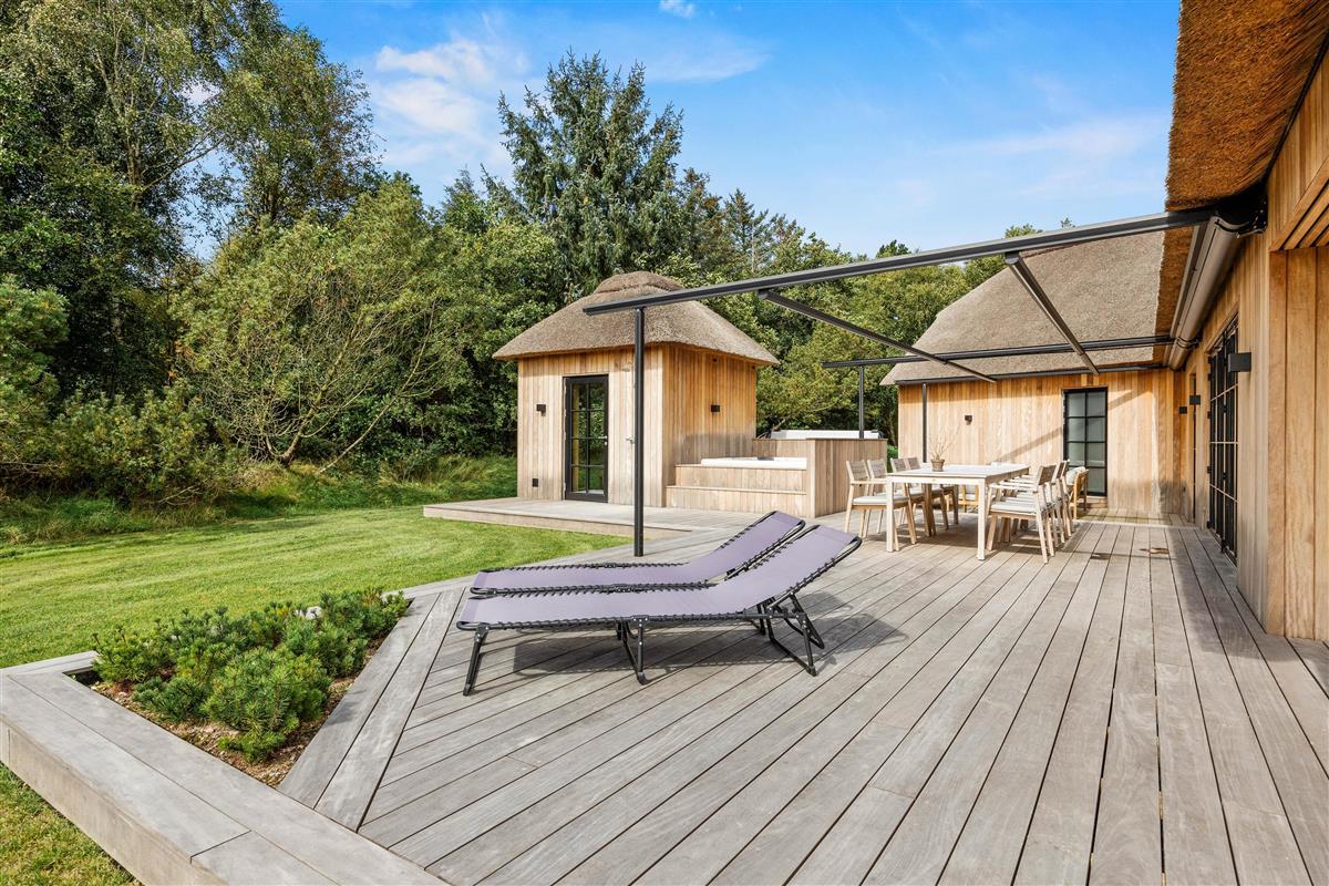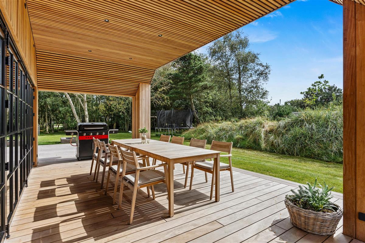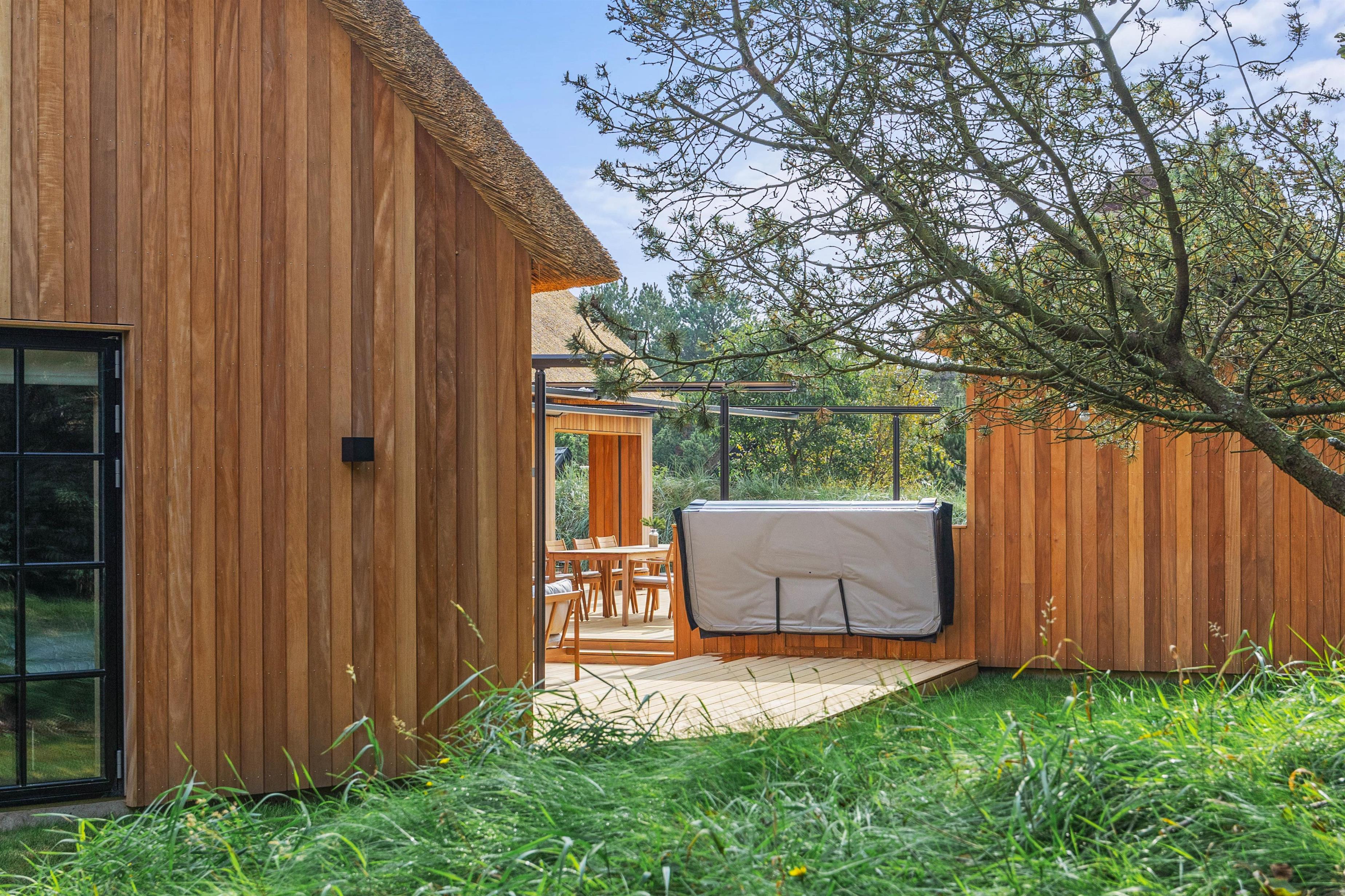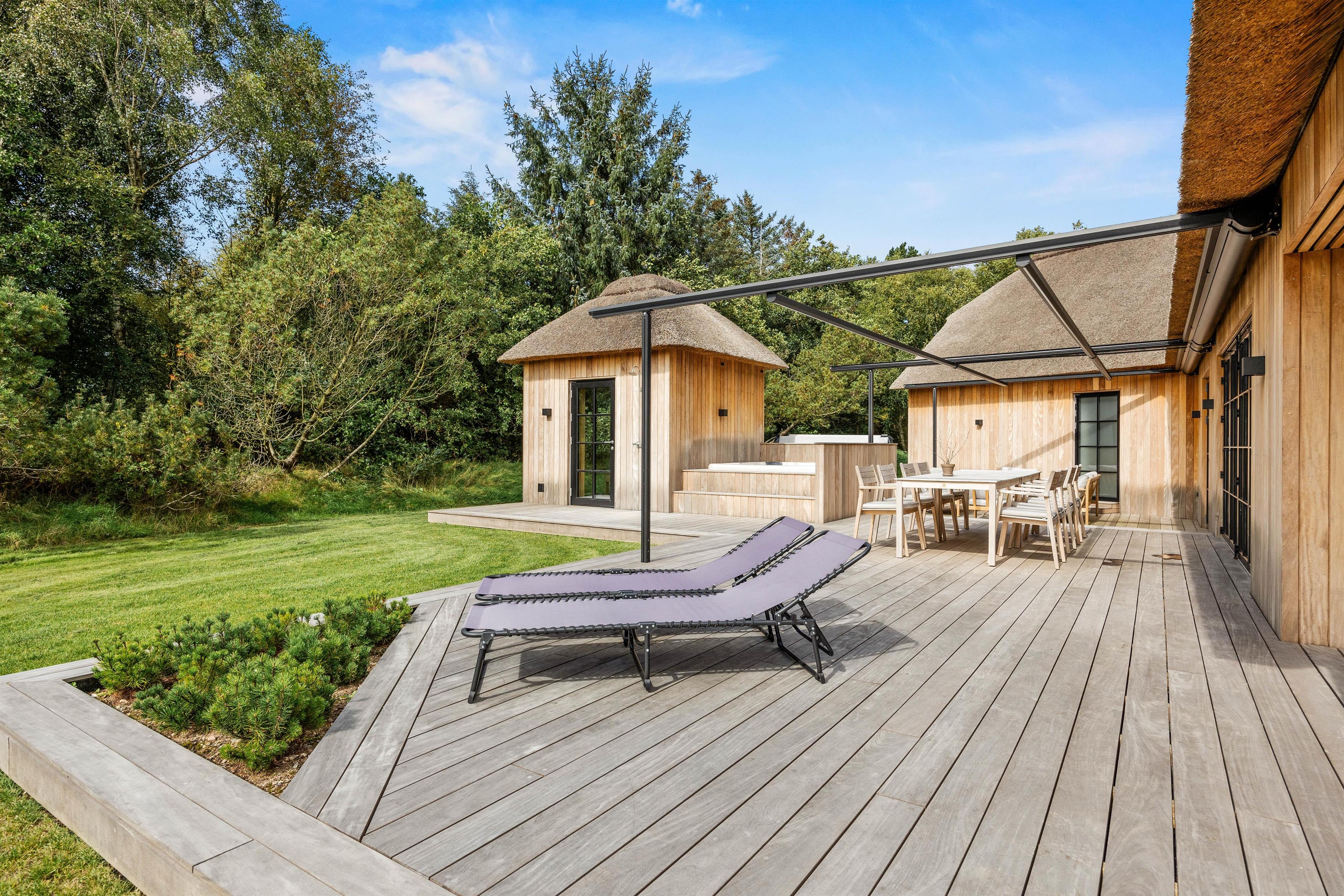 The cul-de-sac location ensures privacy and proximity to nature. The large terrace area has been beautifully designed and invites year-round outdoor living. Enjoy a wellness day with the outdoor sauna and hot tub, cool off in the outdoor shower available from April 1 to October 30, or relax on the covered terrace with a good book. There are countless perfect spots to find outside. For children, beyond the exciting natural surroundings, there's a swing and sandpit for play. The house also provides a gas barbecue for enjoyable evening gatherings.