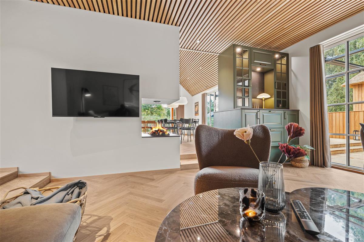 Let's start with the dream kitchen. Here, cooking becomes an event or a kitchen party. Who wouldn't want to be head chef in a brand-new, high-end kitchen? Complete with both a cooking hob and sparkling water tap? While you're wielding the cooking spoon, others can treat you to an aperitif and set the table for a shared meal. From the large kitchen-diner, you move into the living area, where you can curl up on the sofa for the cosy part of your day. Enjoy unobstructed views of nature and send your everyday stress on a long journey.