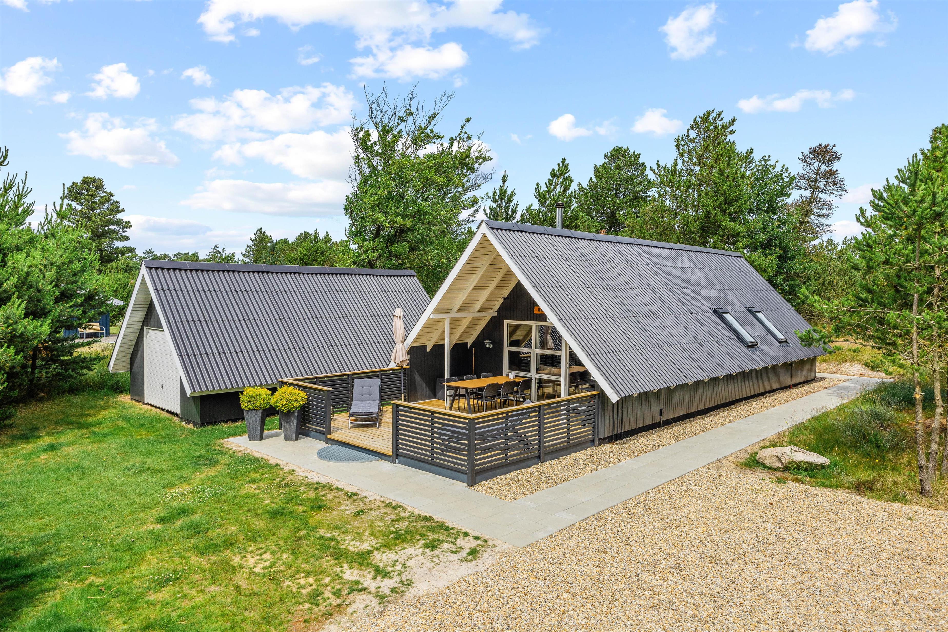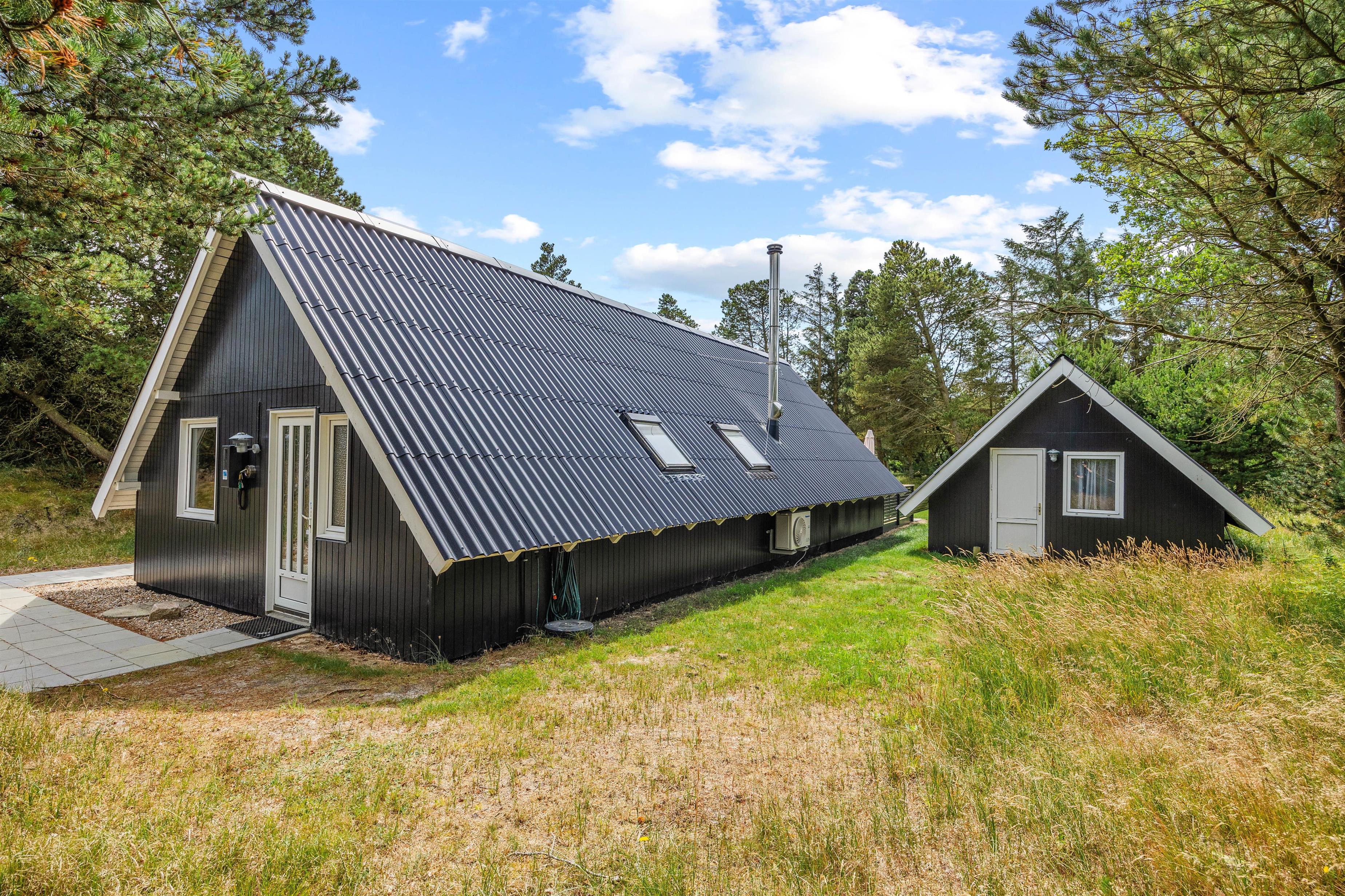 Nature lovers seeking tranquillity will feel right at home here. The partially covered terrace is perfect for soaking up the sunshine and enjoying summer BBQs together. A small pathway leads up the dune, offering stunning views over the Blåvand holiday region and Kallesmærsk Heath. The holiday home's location is ideal for extensive walks with your dogs, with a hiking trail leading directly from the holiday home into the vast Kallesmærsk Heath nature reserve.