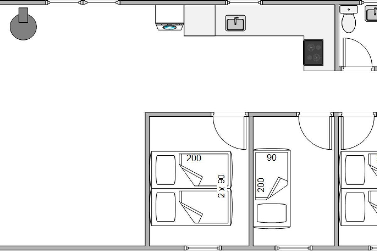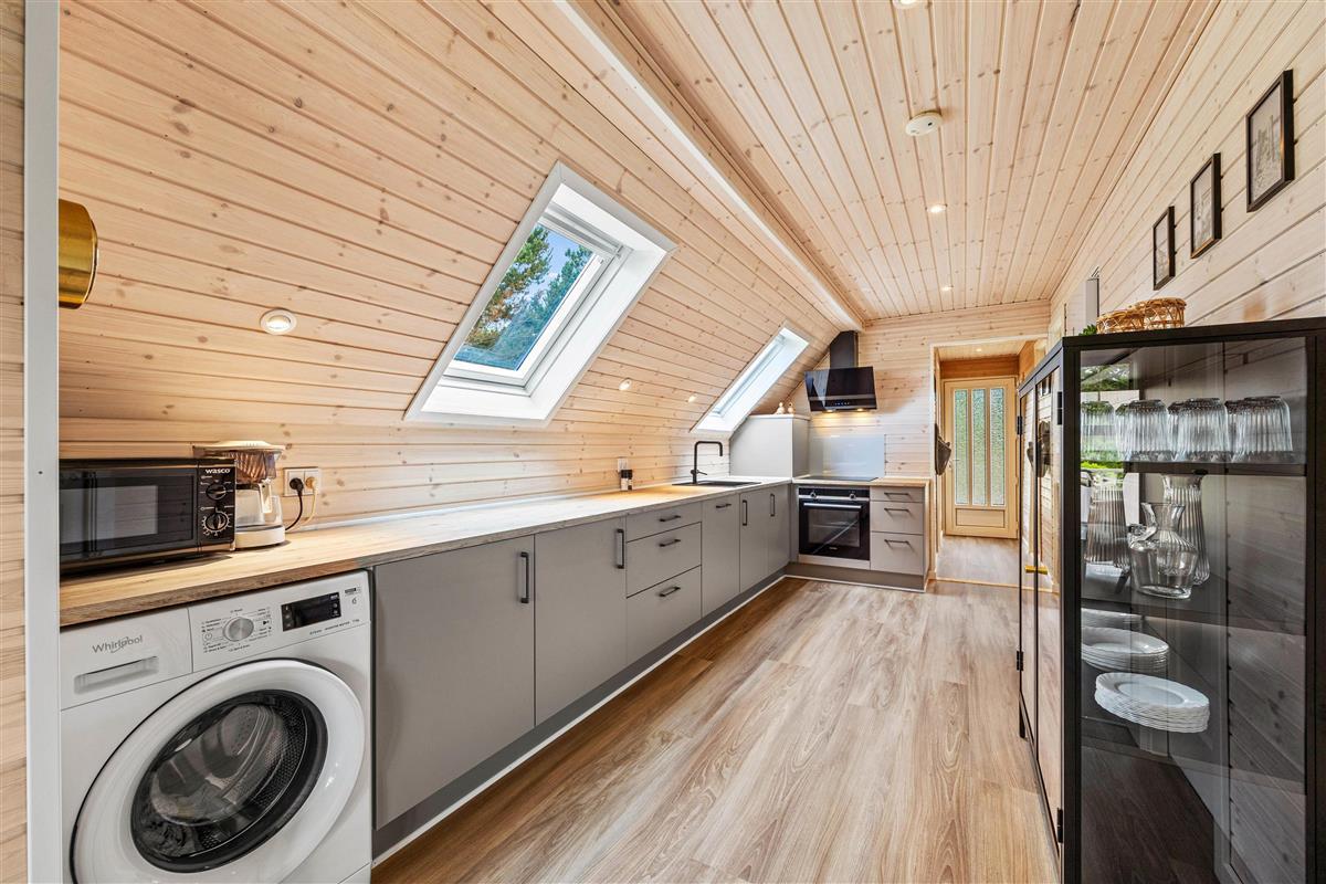 Peaceful sleep awaits in the three bedrooms: two with comfortable double beds and one with a single bed. The compact but well-designed bathroom features underfloor heating and a shower enclosure. For heating, we recommend using the energy-efficient heat pump. A washing machine is also available.