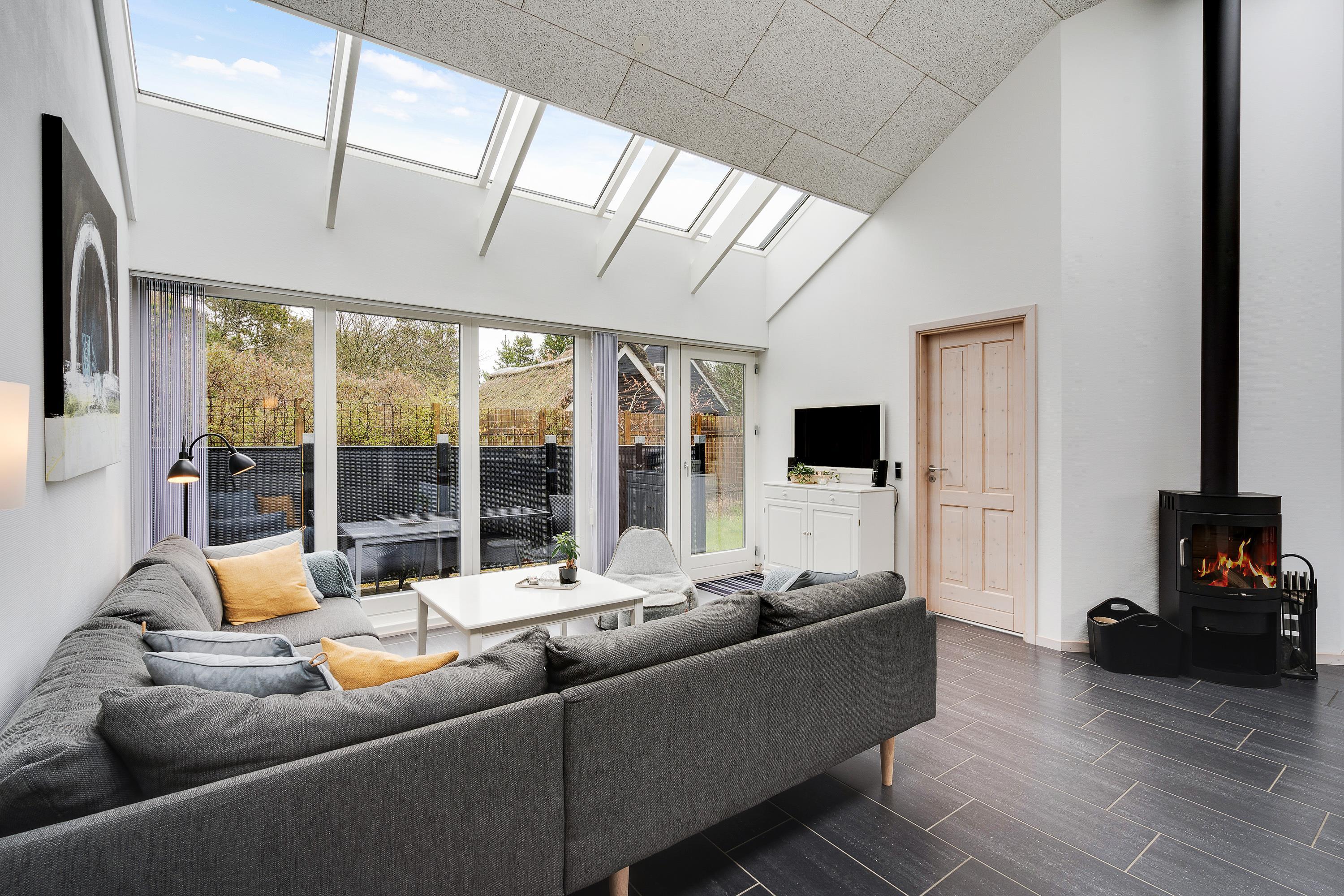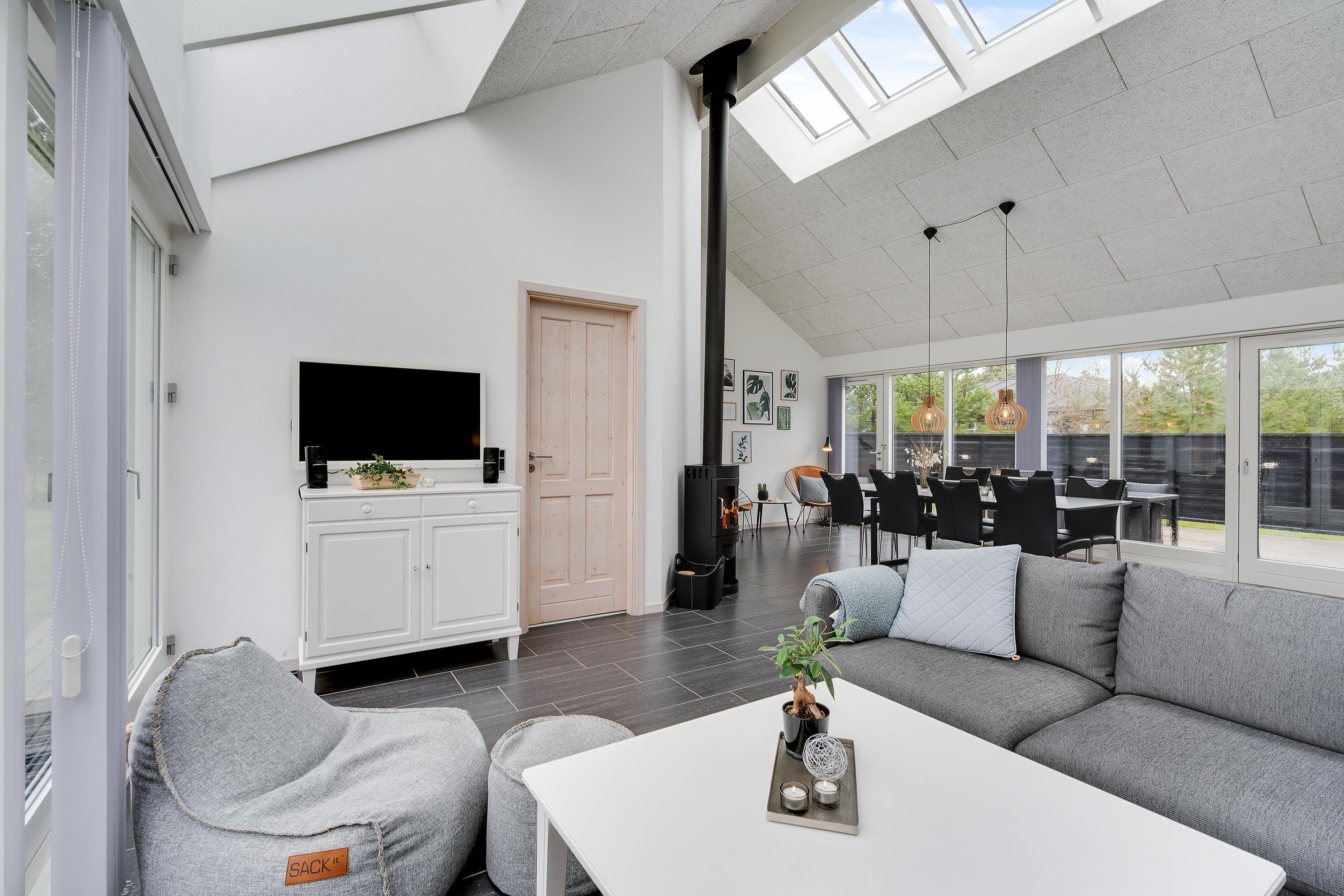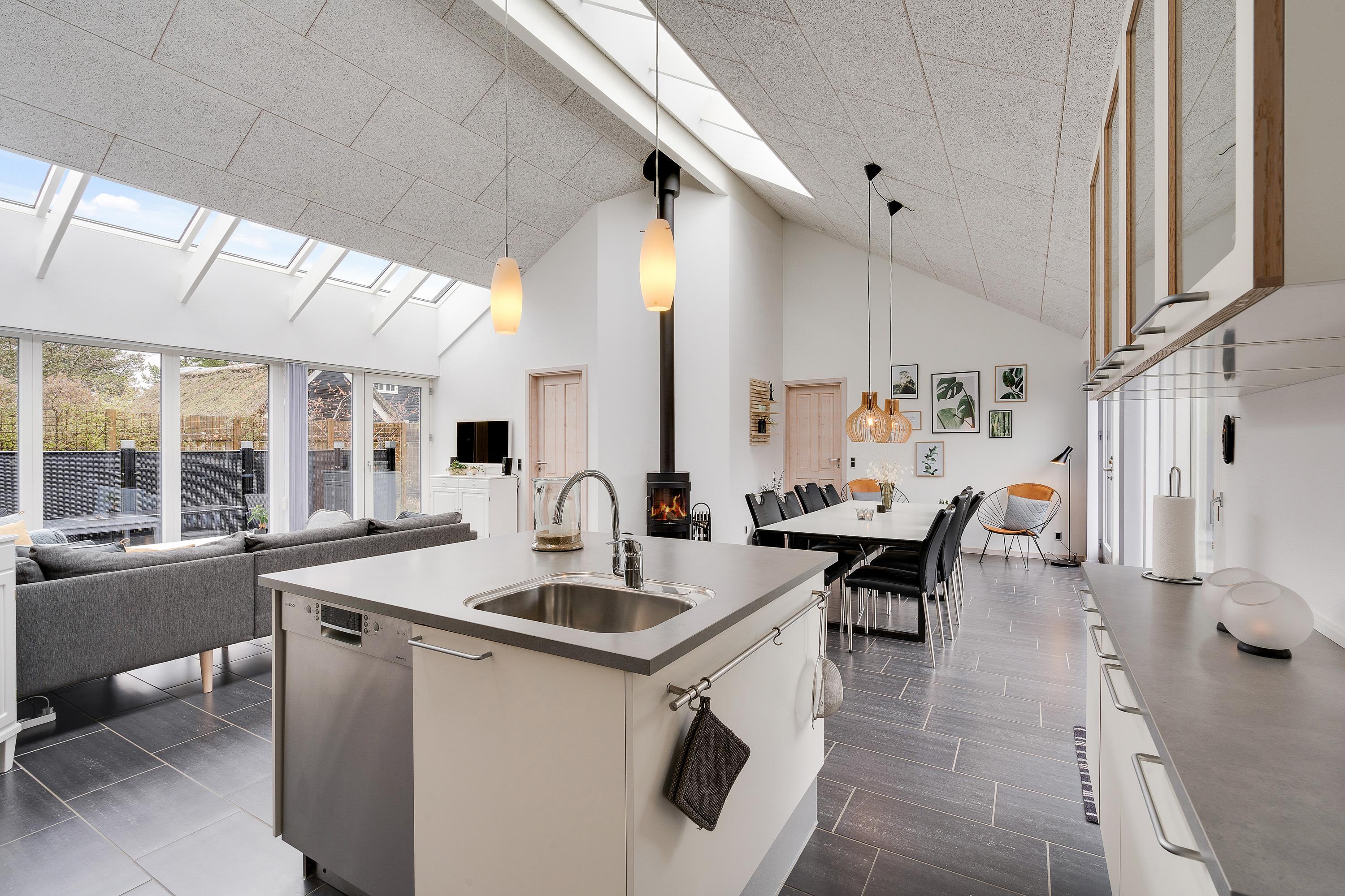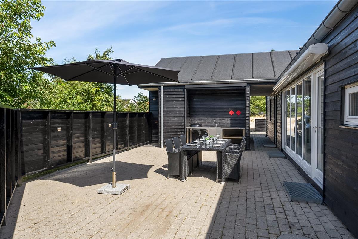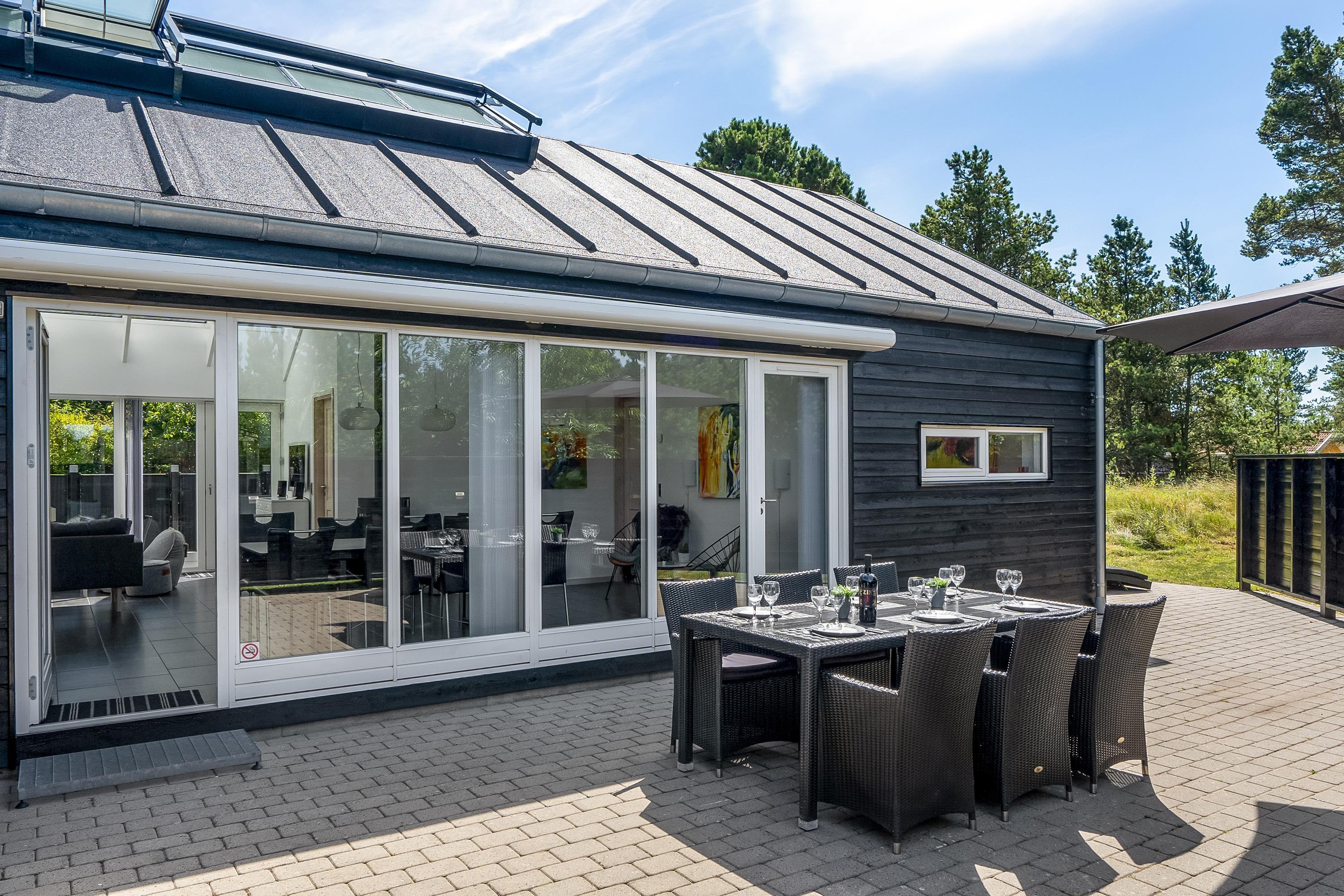 This stylishly furnished modern holiday home accommodates up to 8 people and features a covered outdoor kitchen on the terrace - perfect for social holiday gatherings. Located at Toldbodvej 22B in a quiet cul-de-sac in central Blåvand, the holiday home is just 900 metres from the beach.