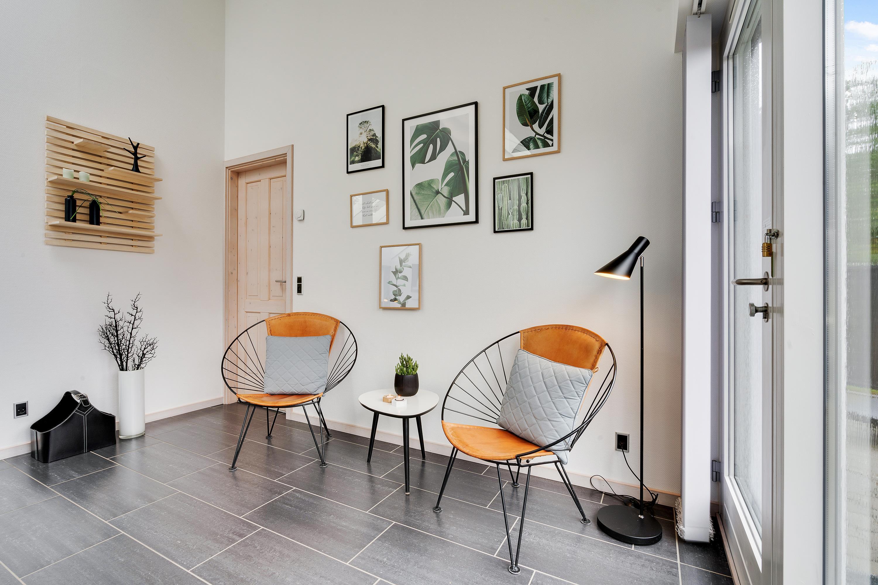 Warm feet are guaranteed with underfloor heating throughout the house. In the evening, the crackling of wood in the fireplace adds extra cosiness to social gatherings.