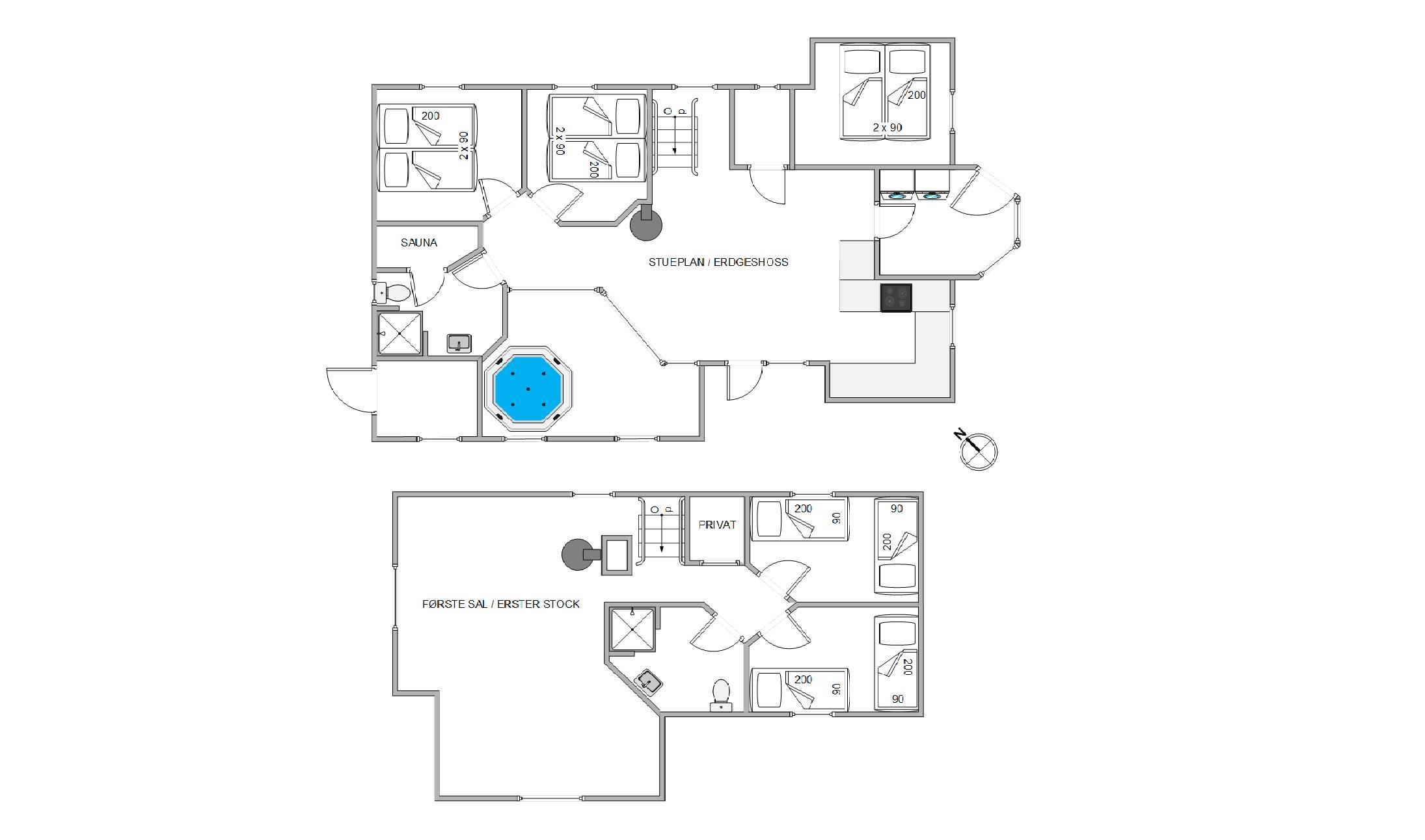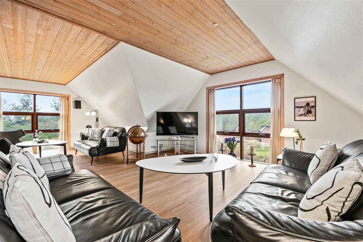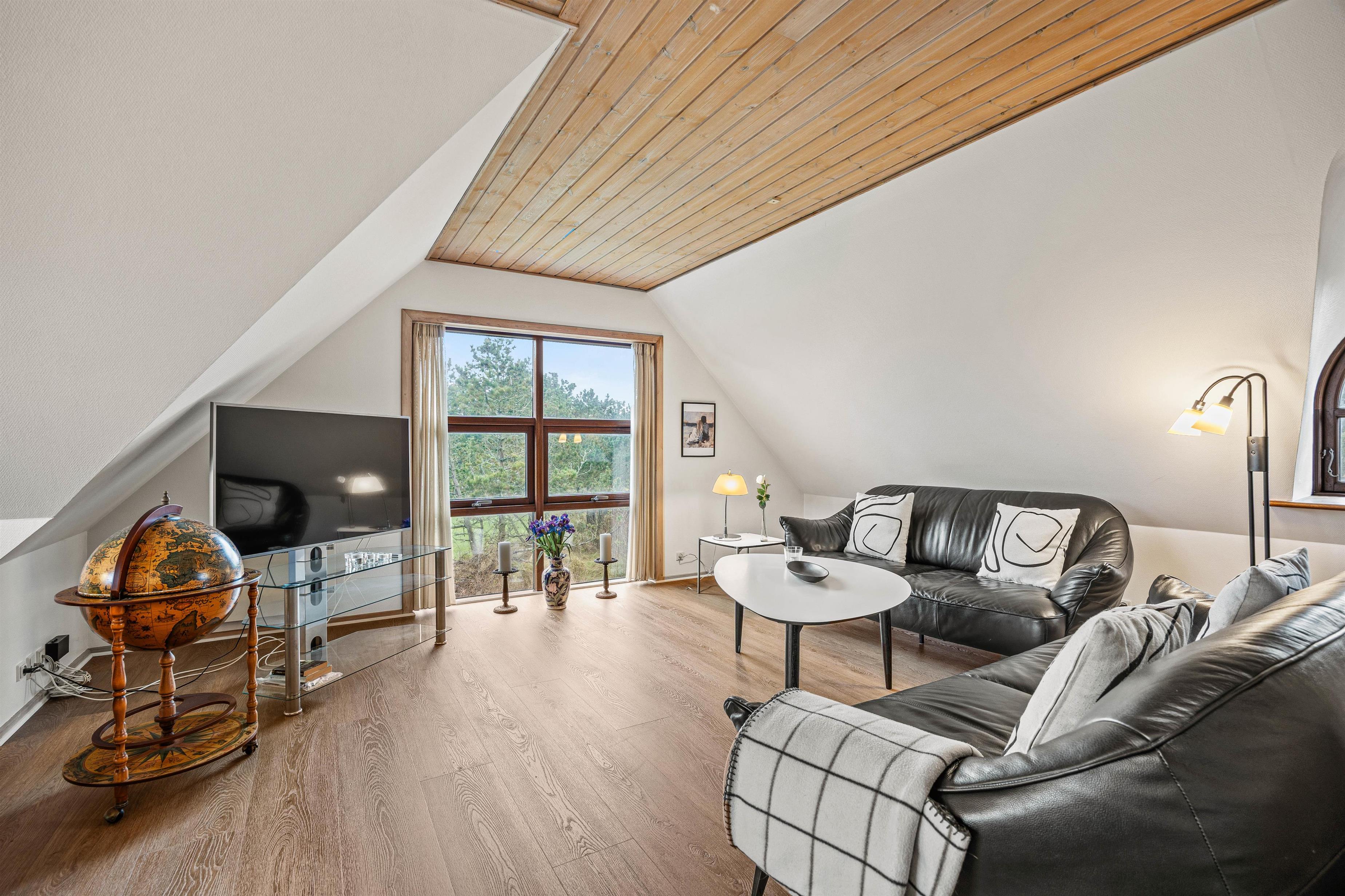 The 191-square-metre holiday home spans two floors. The upper floor houses the comfortable living room, perfect for creating wonderful holiday memories - perhaps over card games or during a sociable film evening? From here, you can even see the Blåvandshuk lighthouse, situated at Denmark's westernmost point.