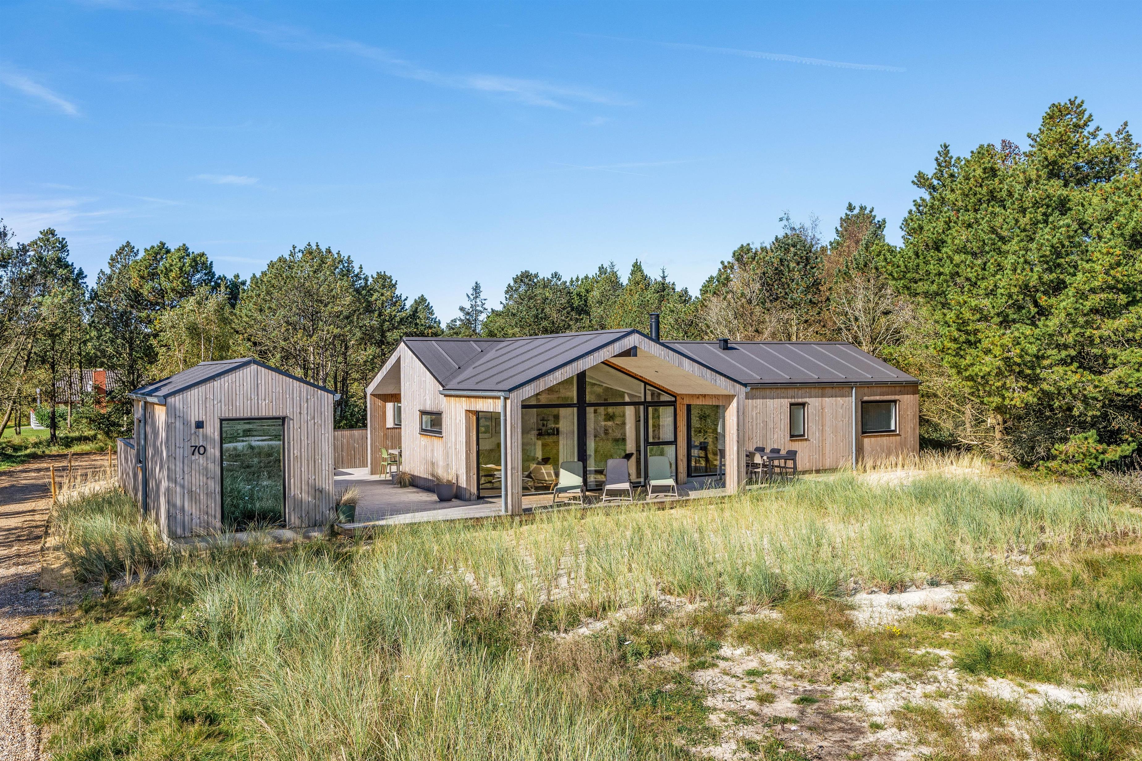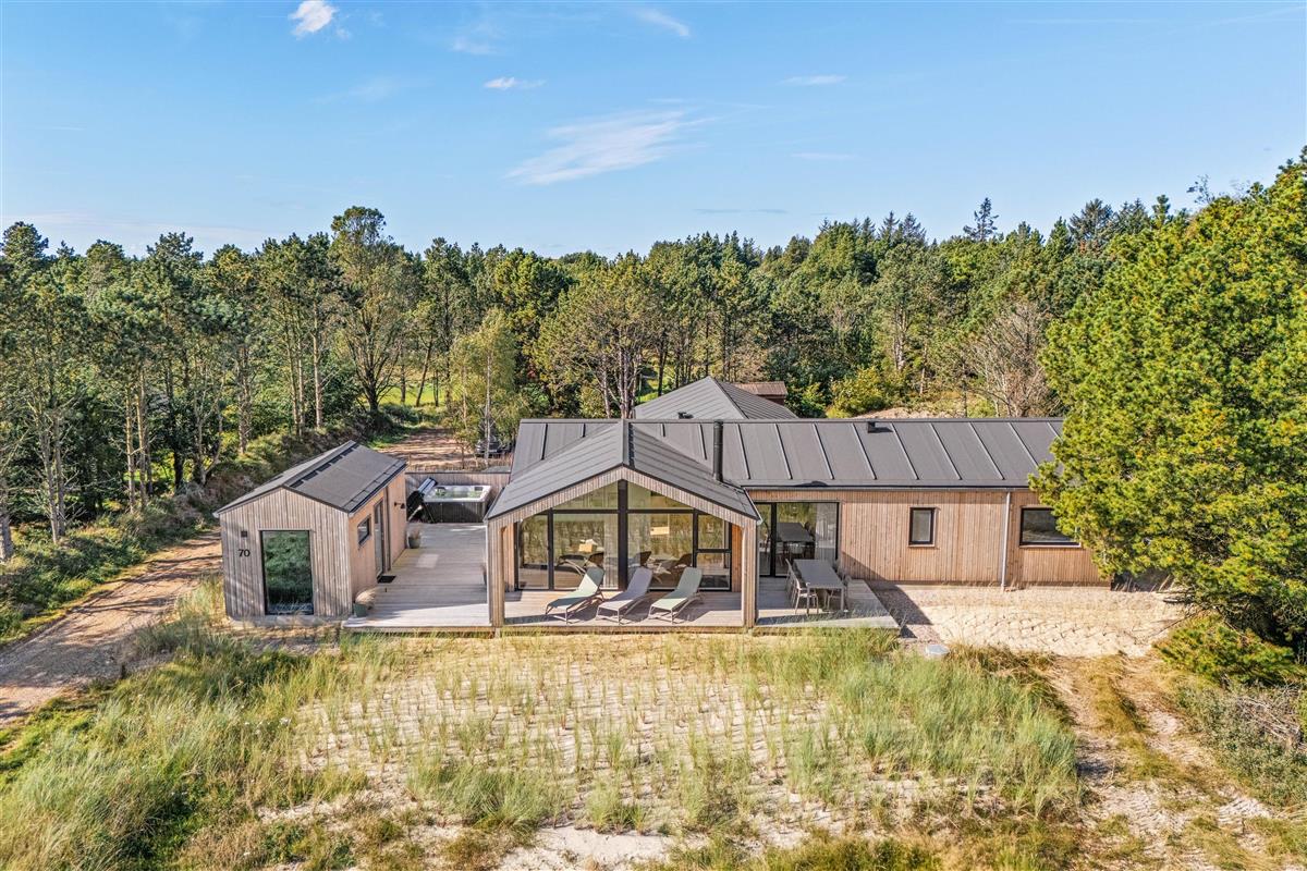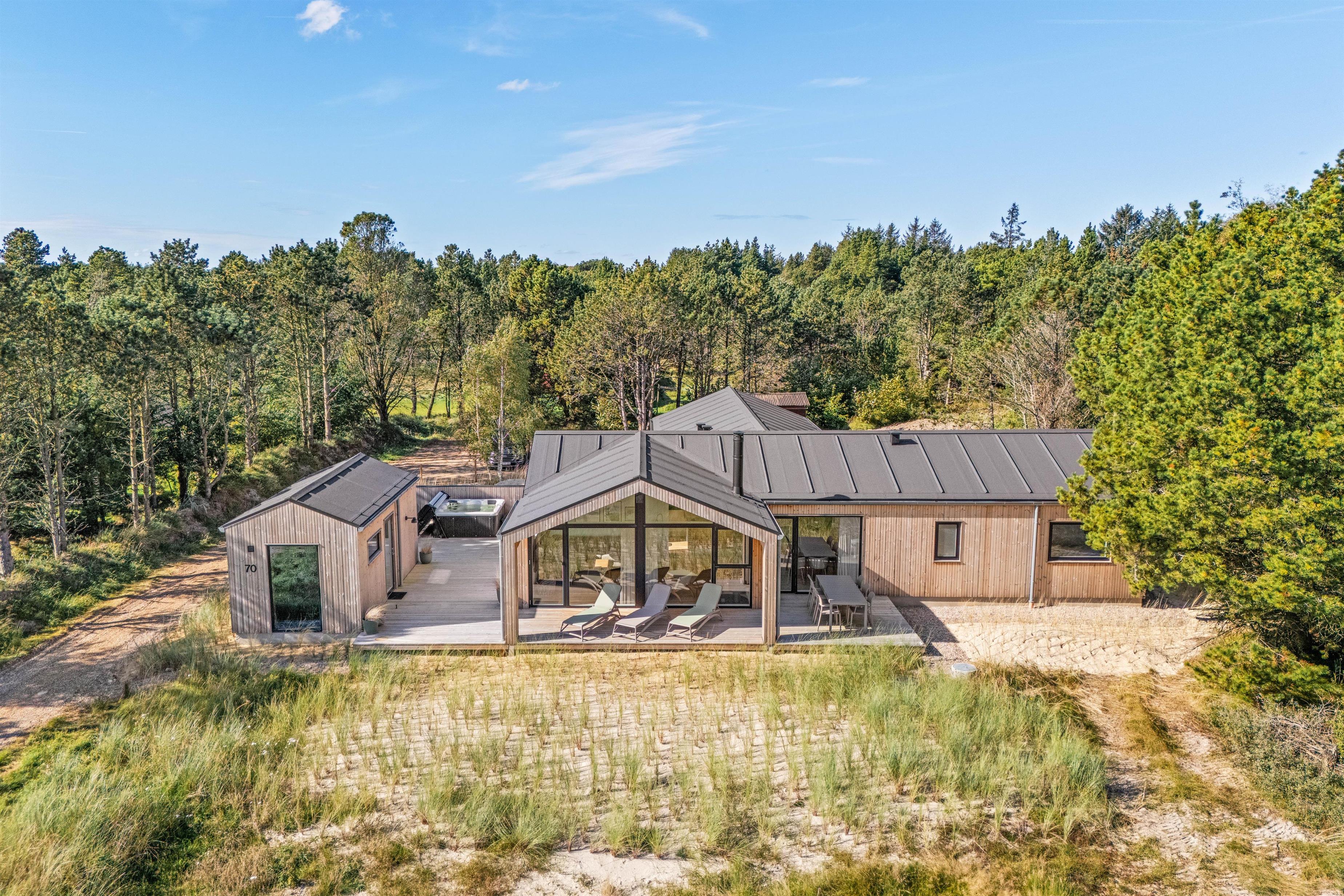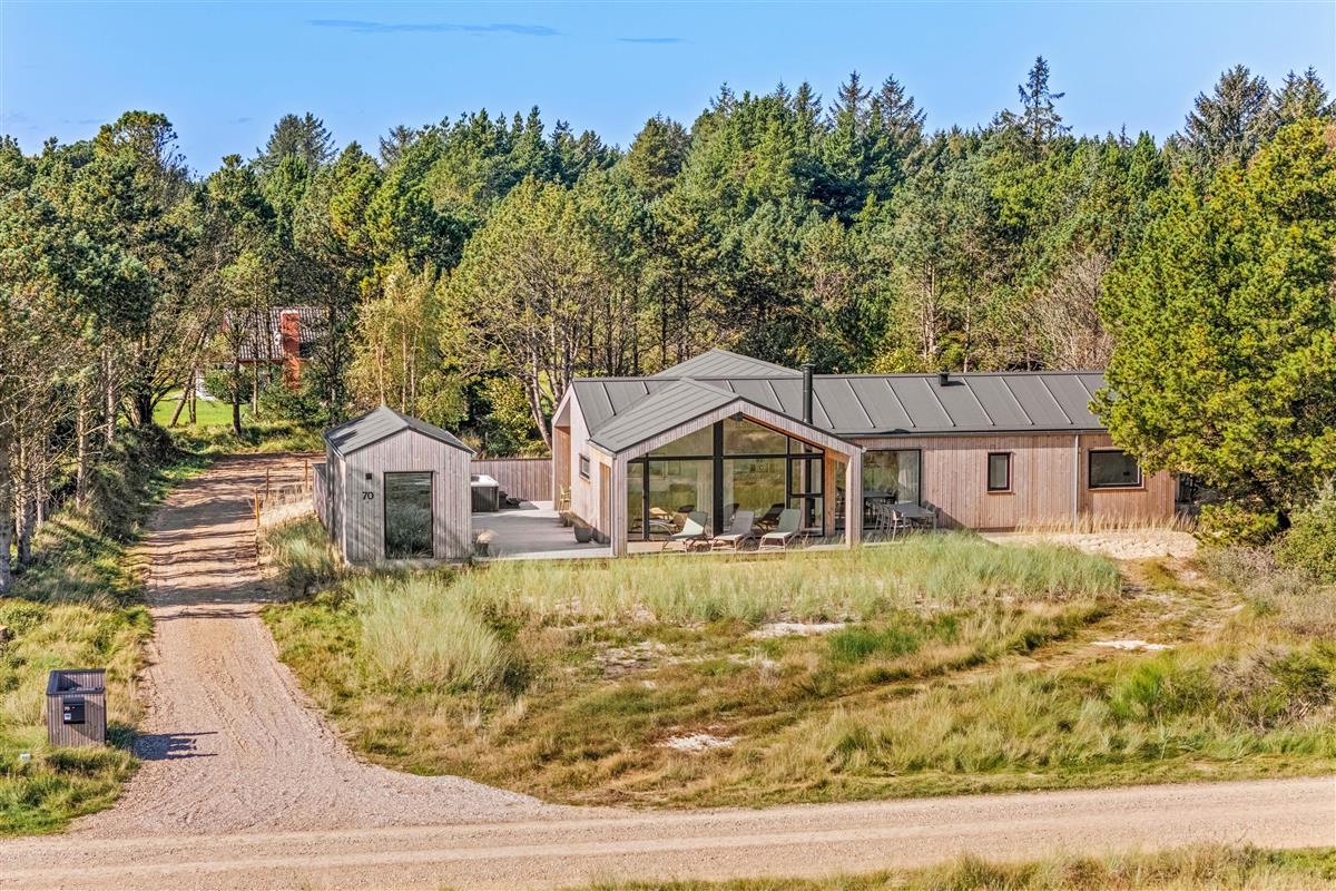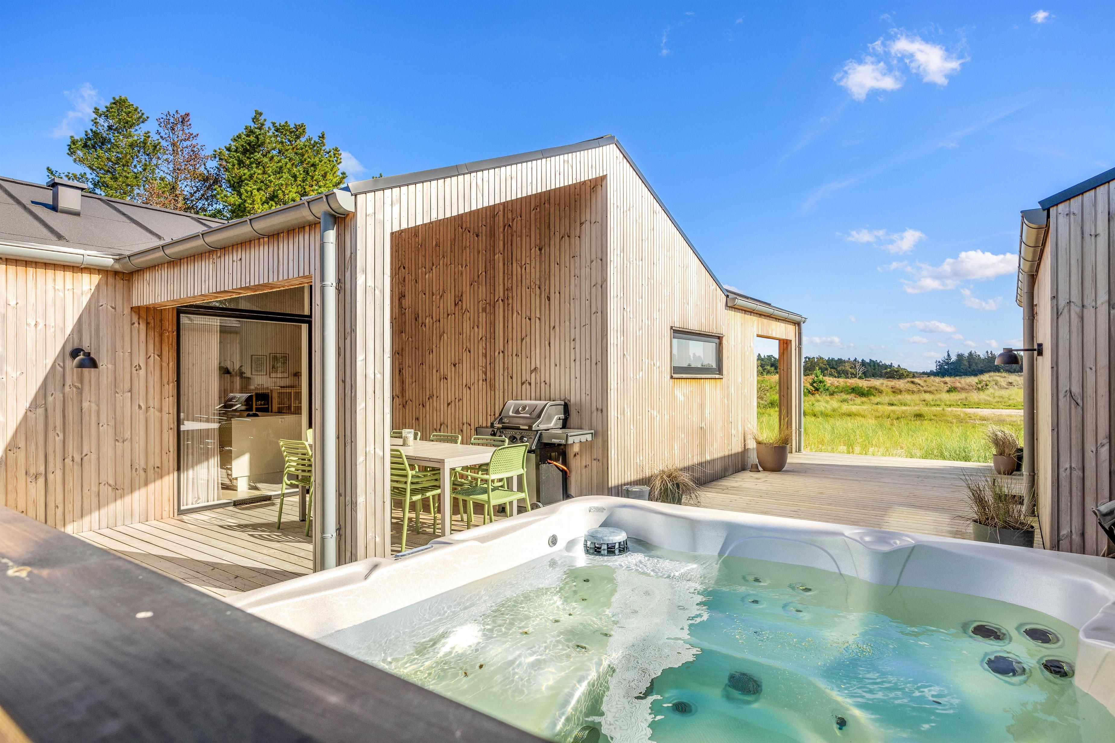 At Gl. Mælkevej 70, you can look forward to a wonderful retreat surrounded by Scandinavian design and hygge atmosphere in the beautiful Danish West Coast nature. This newly built 2024 holiday home offers everything you could wish for. Alongside its high-end furnishings, you'll find a games room with pool table, table tennis, PlayStation 5 plus an outdoor hot tub and sauna. All of this is crowned by its peaceful location overlooking the "Kallesmærsk Hede" nature reserve.