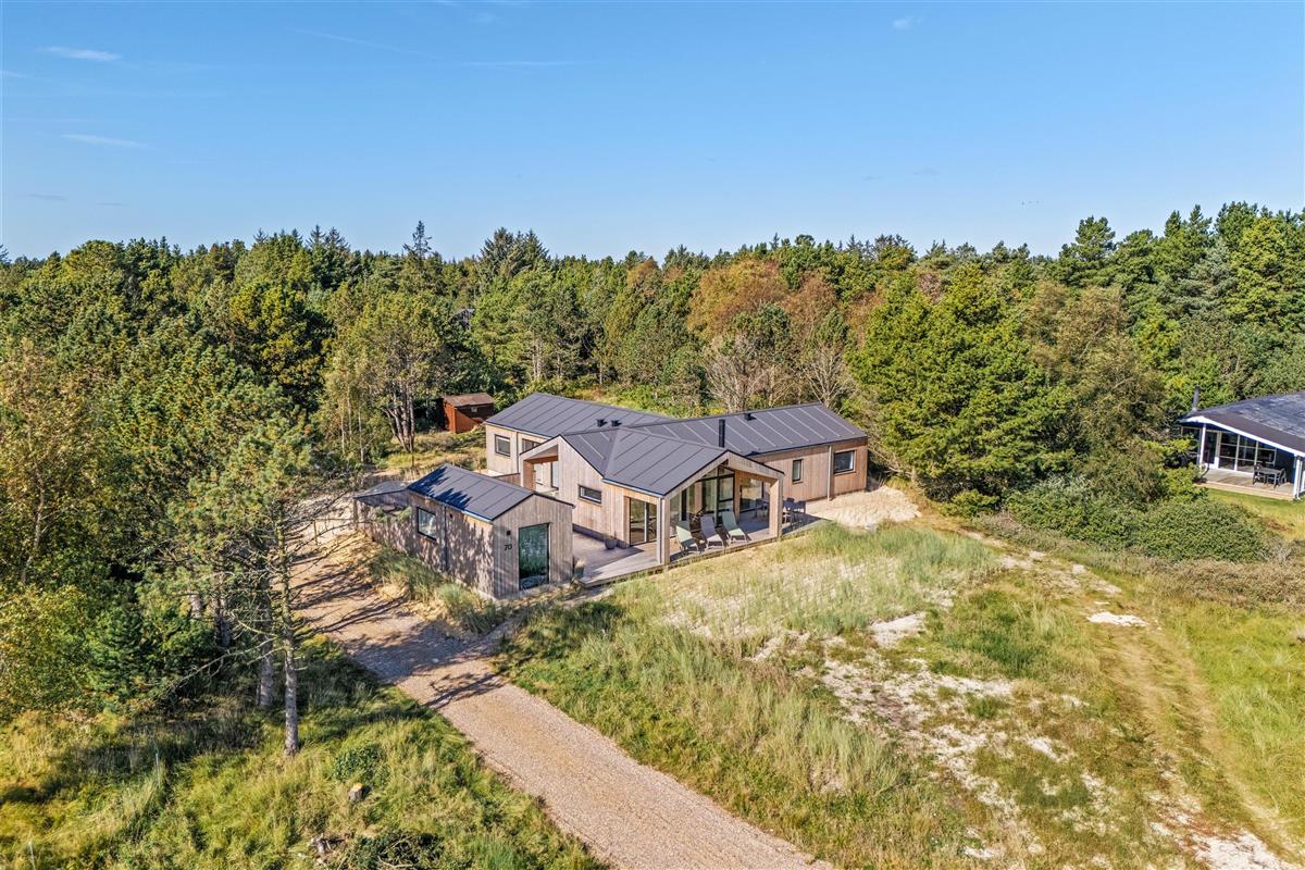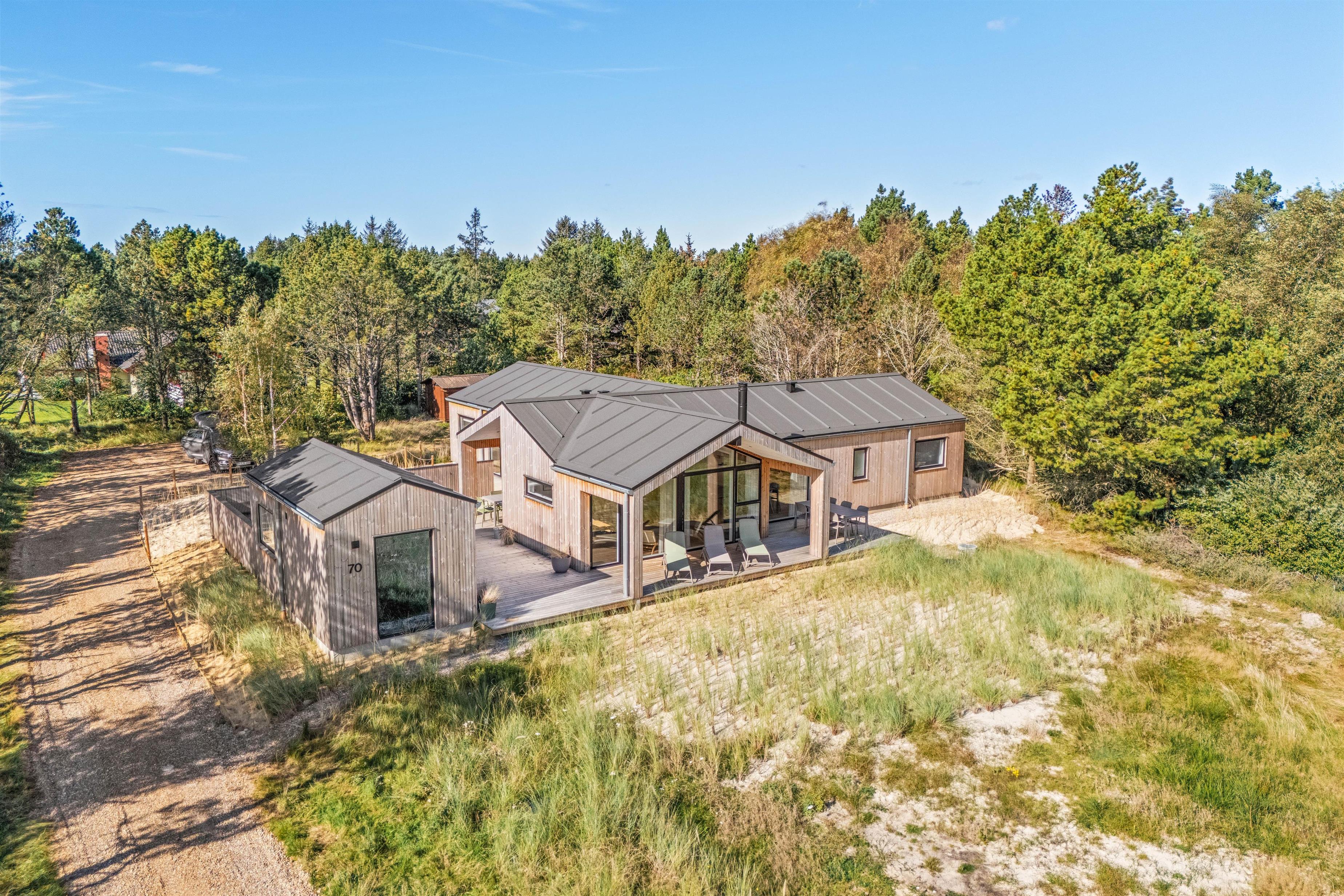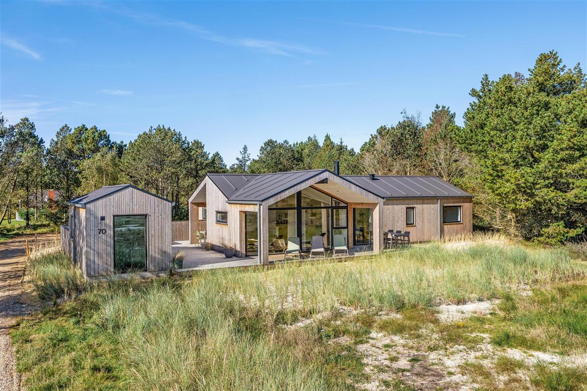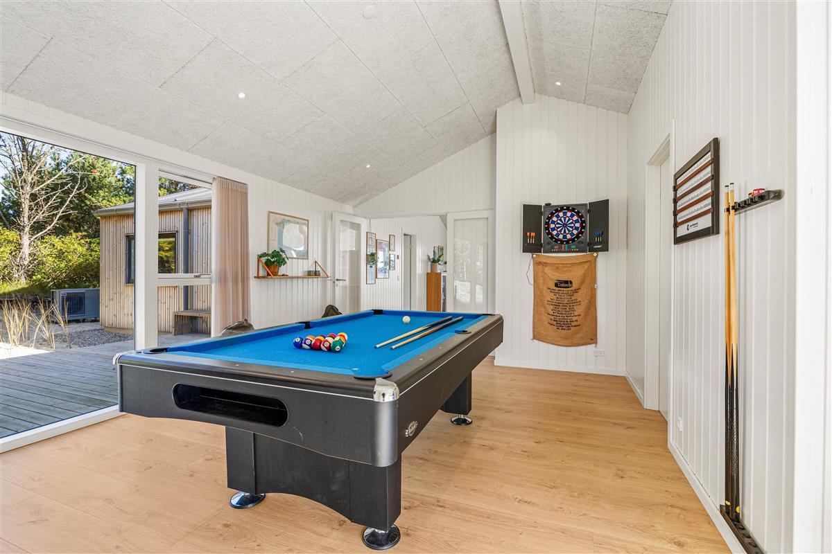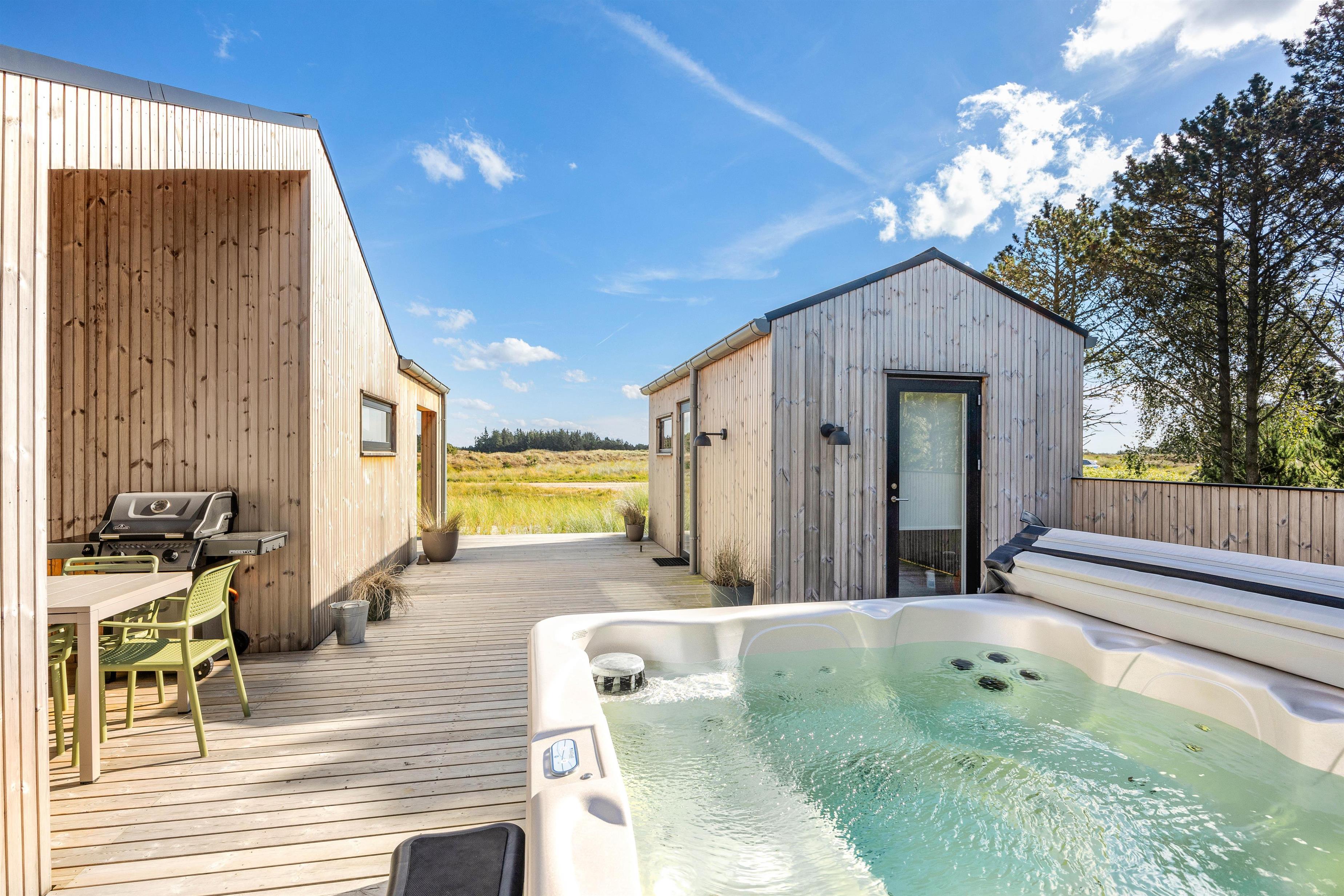 At Gl. Mælkevej 70, you can look forward to a wonderful retreat surrounded by Scandinavian design and hygge atmosphere in the beautiful Danish West Coast nature. This newly built 2024 holiday home offers everything you could wish for. Alongside its high-end furnishings, you'll find a games room with pool table, table tennis, PlayStation 5 plus an outdoor hot tub and sauna. All of this is crowned by its peaceful location overlooking the "Kallesmærsk Hede" nature reserve.