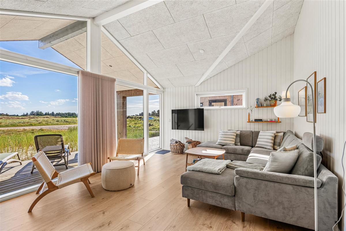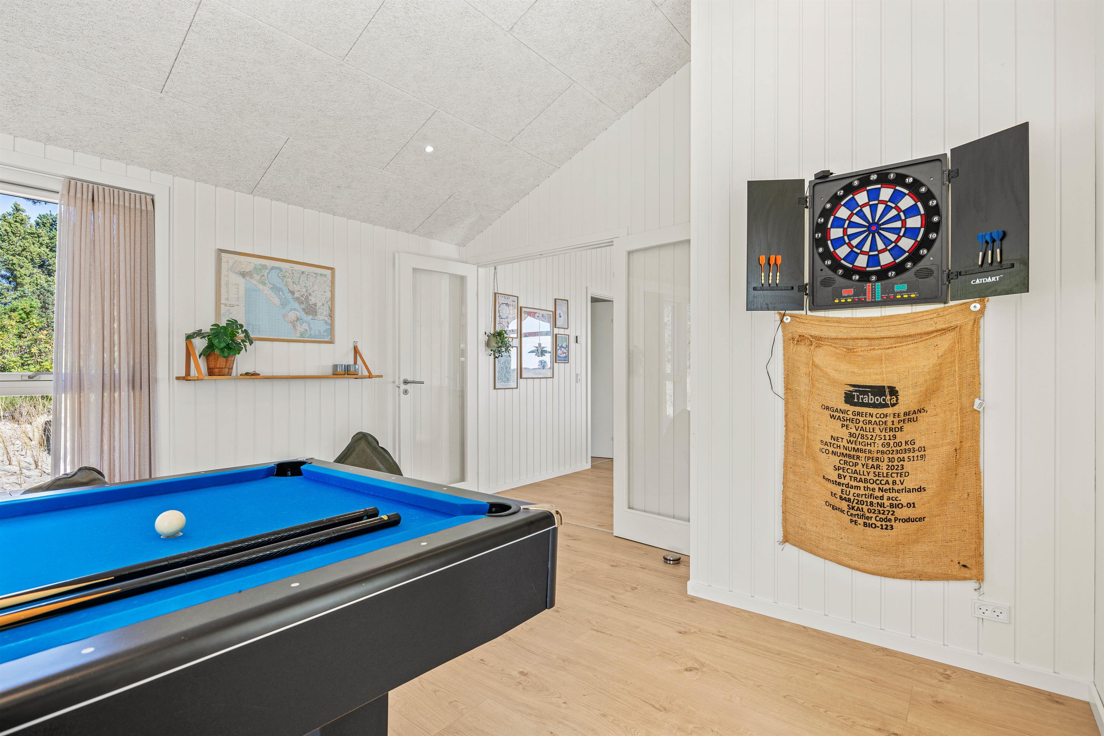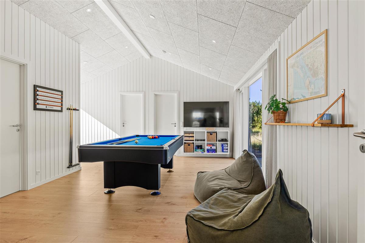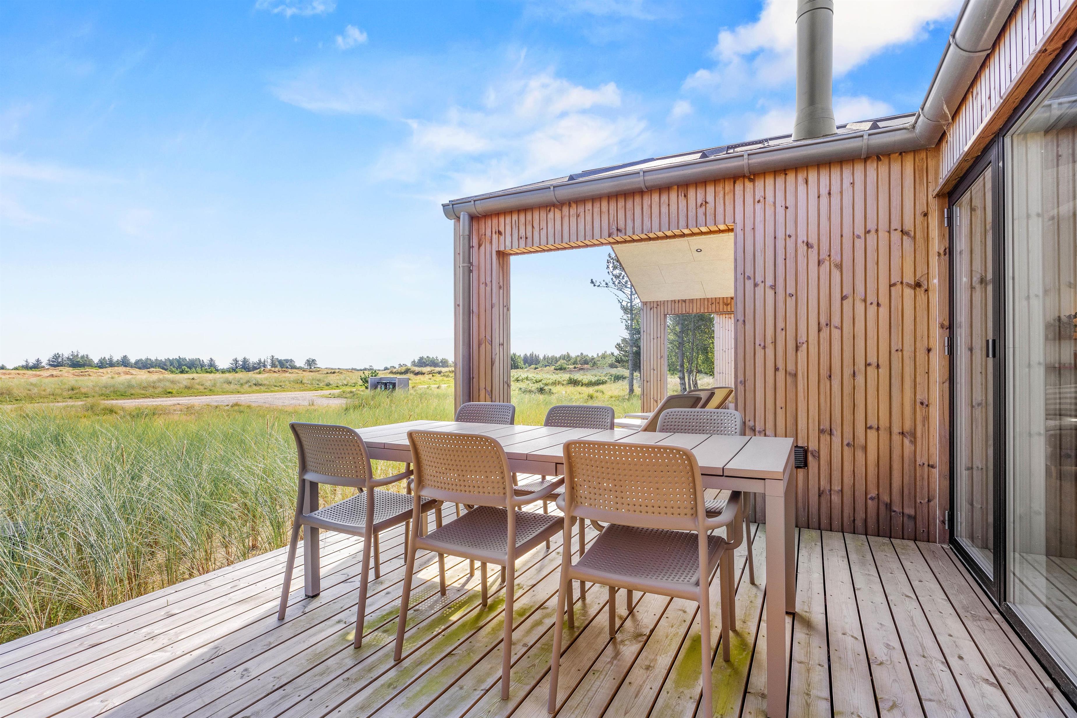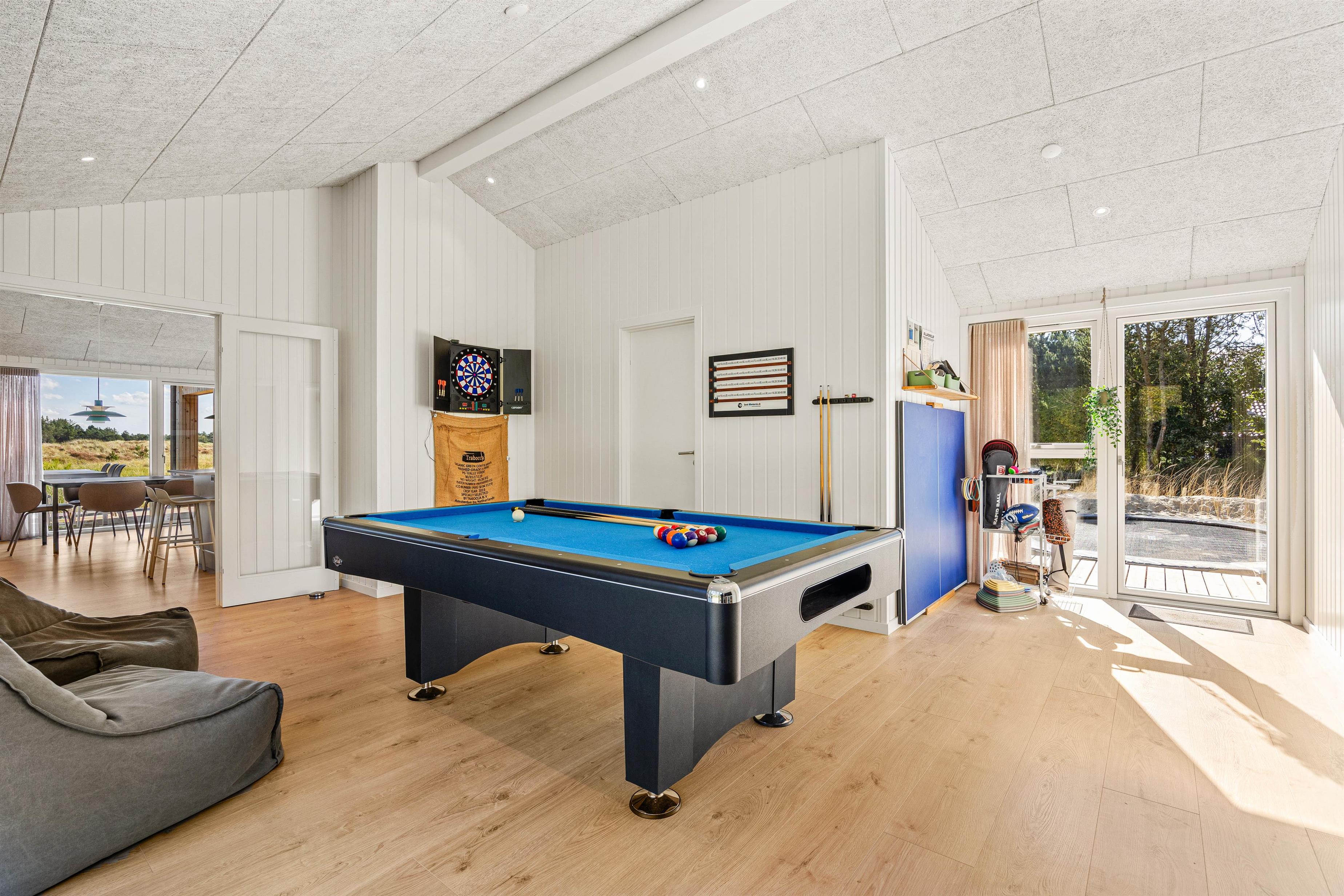 At Gl. Mælkevej 70, you can look forward to a wonderful retreat surrounded by Scandinavian design and hygge atmosphere in the beautiful Danish West Coast nature. This newly built 2024 holiday home offers everything you could wish for. Alongside its high-end furnishings, you'll find a games room with pool table, table tennis, PlayStation 5 plus an outdoor hot tub and sauna. All of this is crowned by its peaceful location overlooking the "Kallesmærsk Hede" nature reserve.