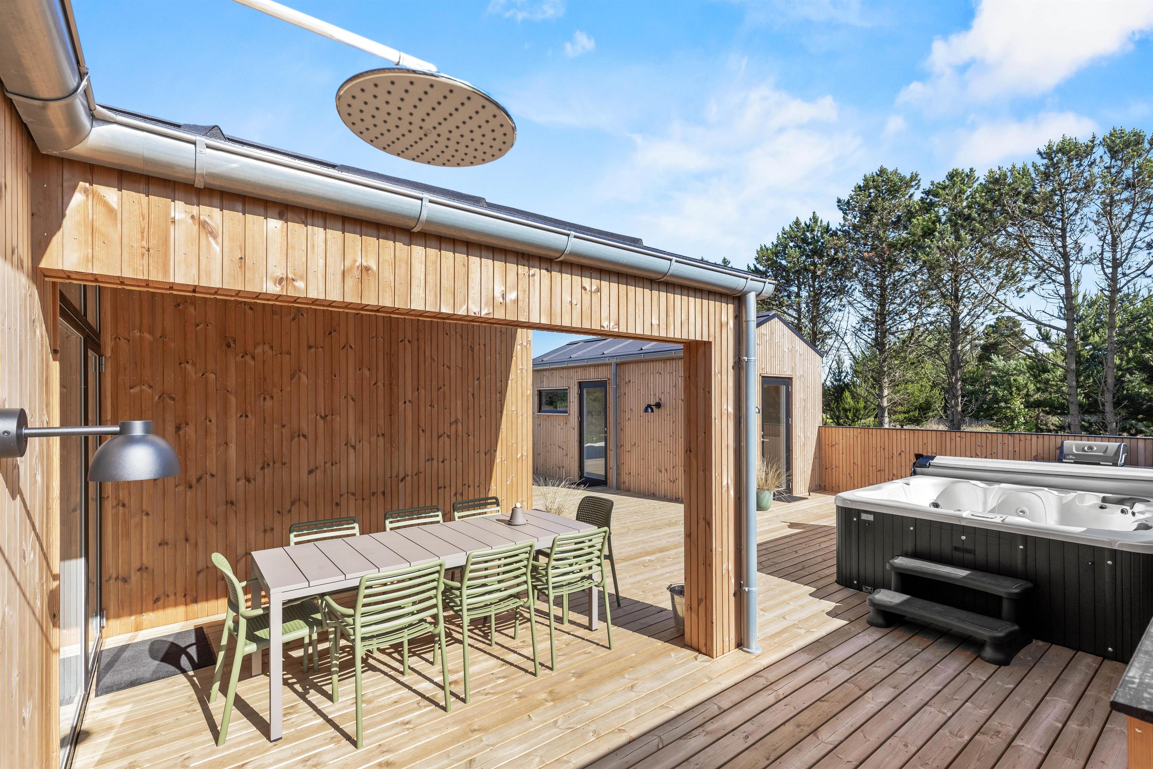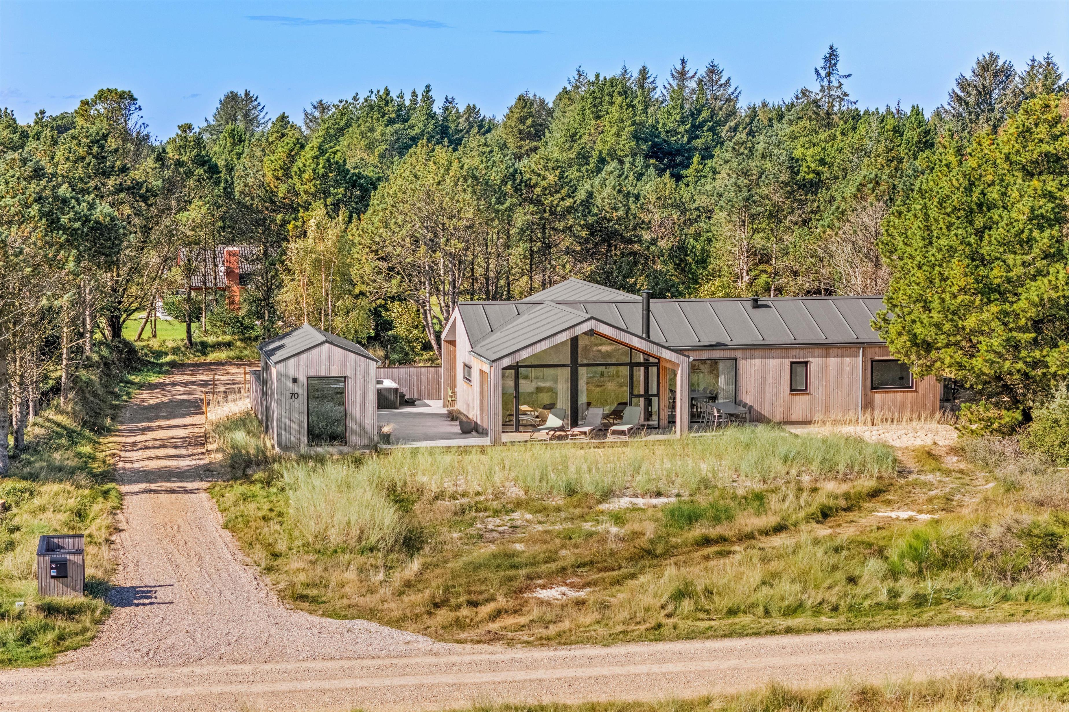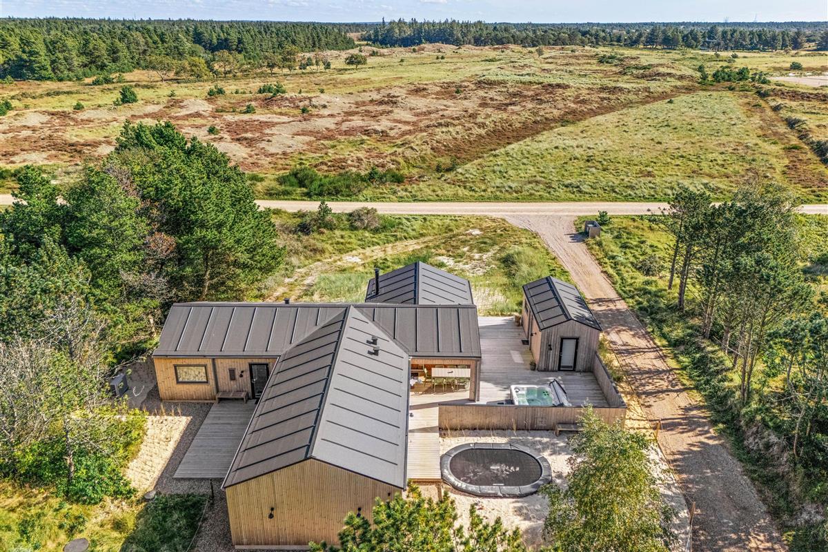 At Gl. Mælkevej 70, you can look forward to a wonderful retreat surrounded by Scandinavian design and hygge atmosphere in the beautiful Danish West Coast nature. This newly built 2024 holiday home offers everything you could wish for. Alongside its high-end furnishings, you'll find a games room with pool table, table tennis, plus an outdoor hot tub and sauna. All of this is crowned by its peaceful location overlooking the "Kallesmærsk Hede" nature reserve.