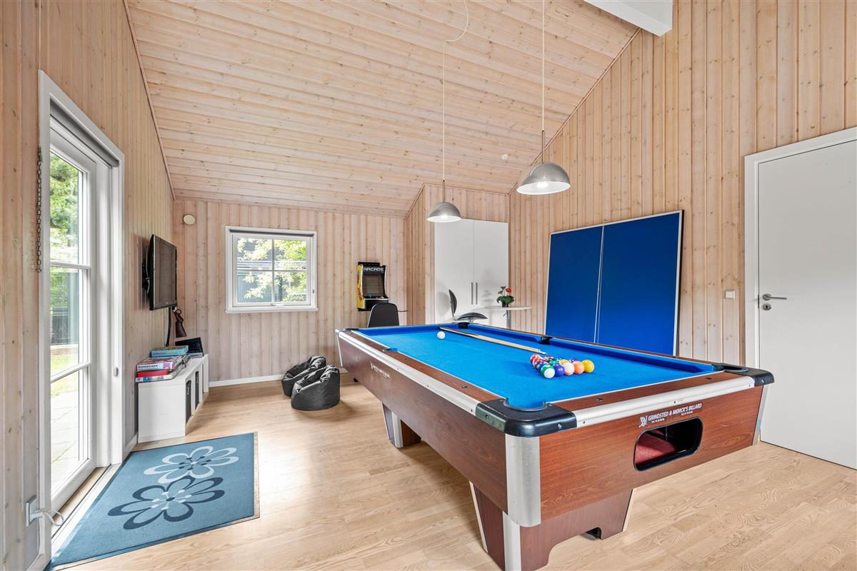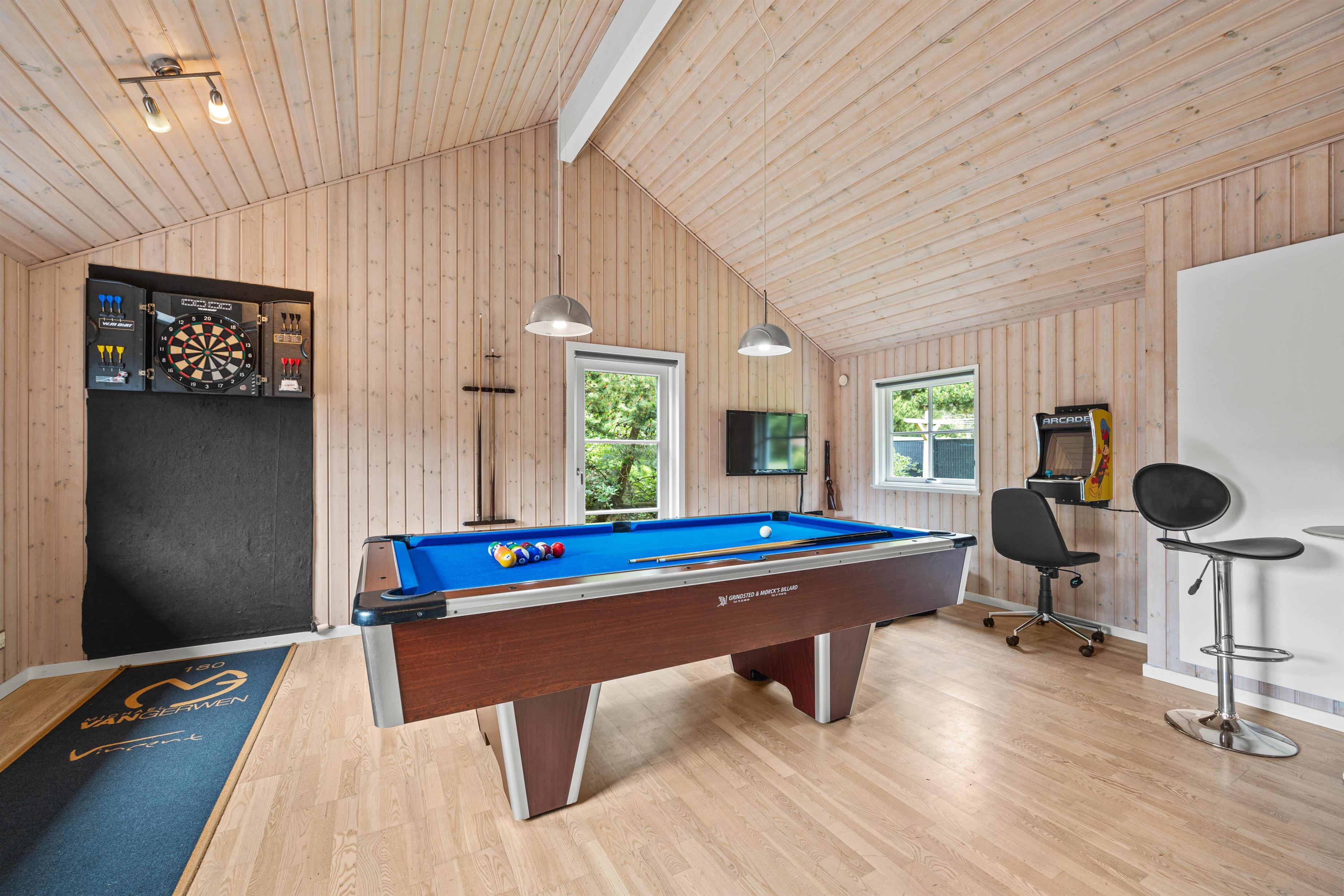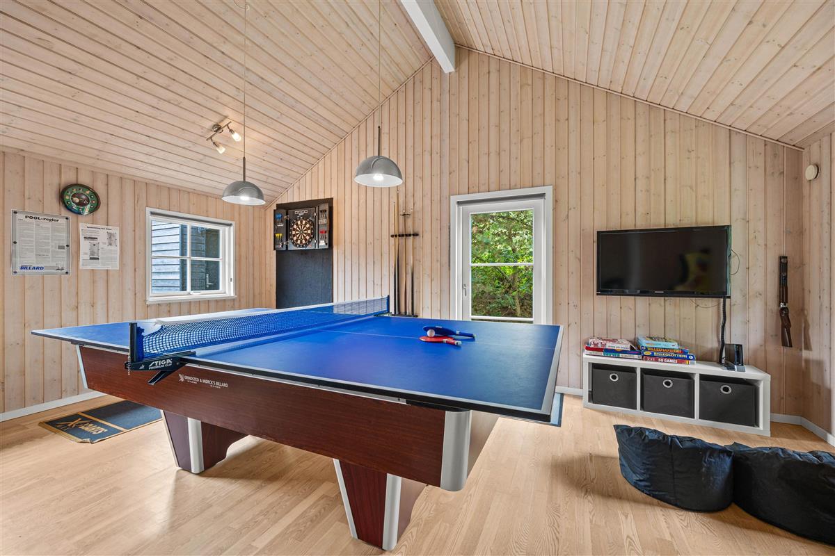 The open-plan kitchen with breakfast bar is superbly equipped. You'll find a dishwasher, microwave, 80-litre freezer capacity and induction hob. The modern appliances make meal preparation a pleasure. The games room delights with table tennis, pool table and an additional television – perfect for tournaments and social gatherings. There's no chance of boring days here!