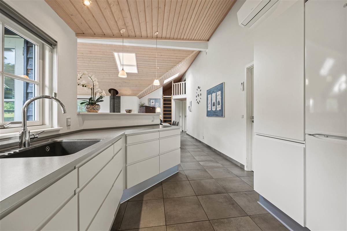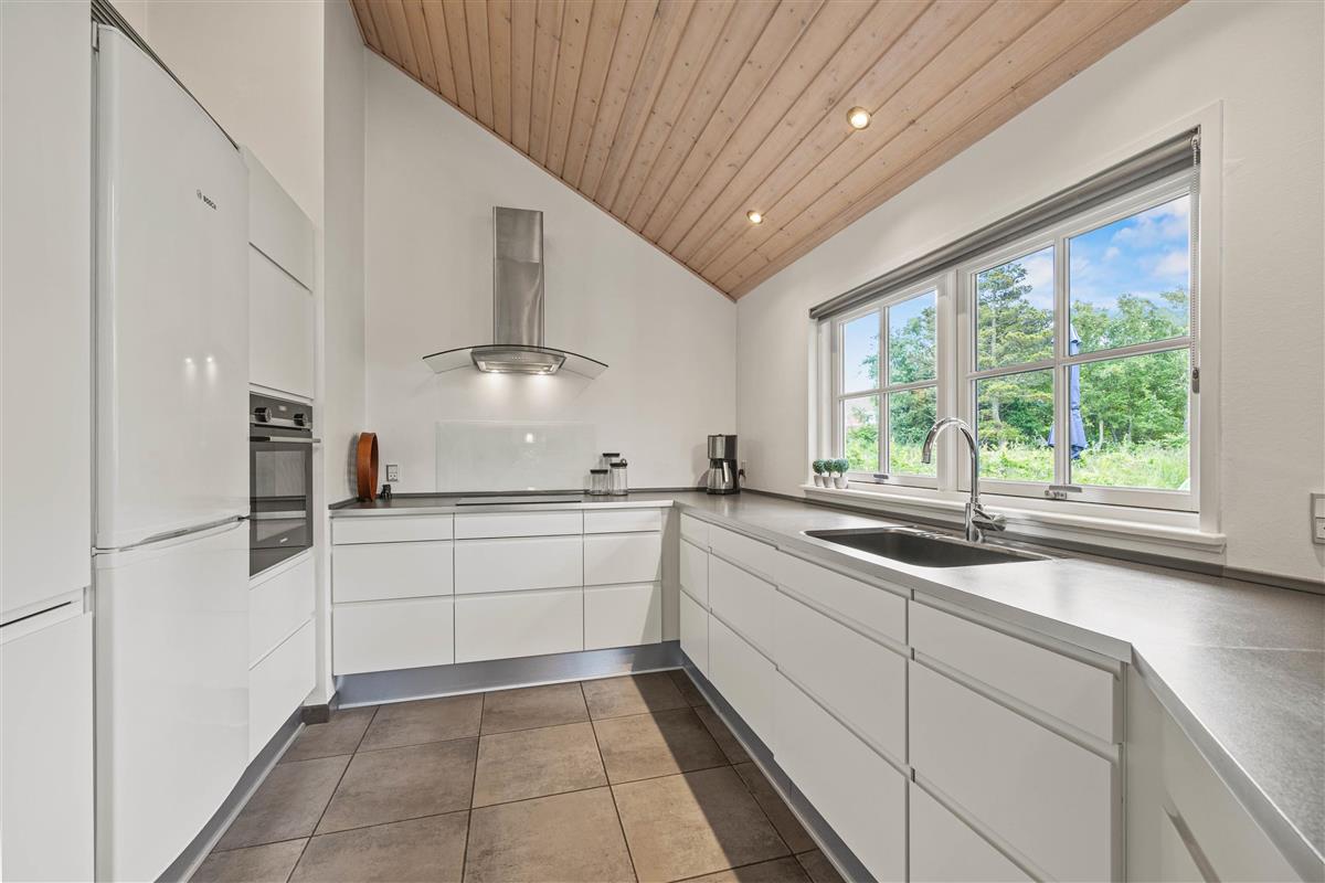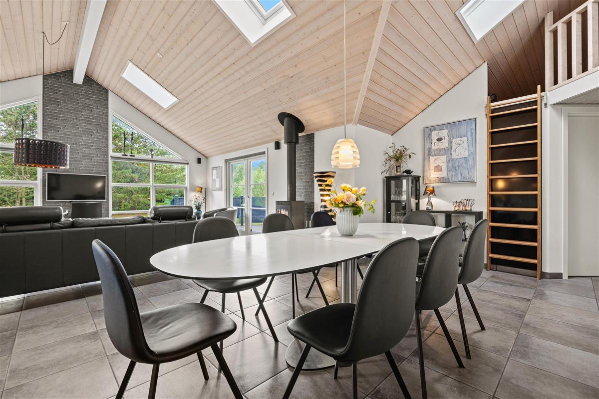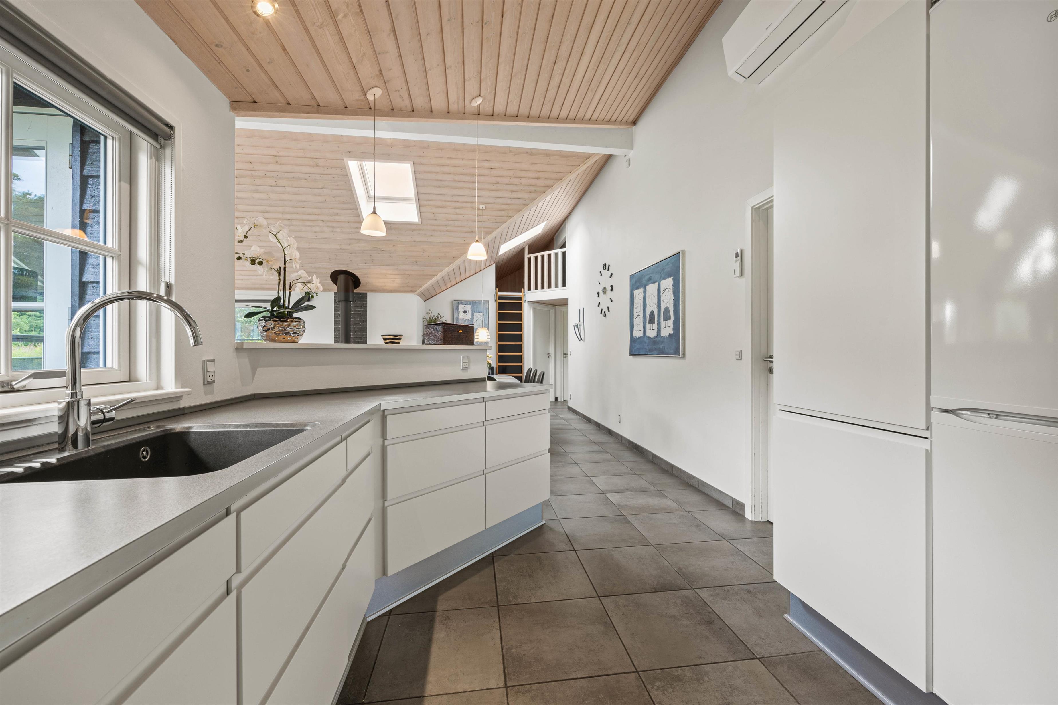 This modern Blåvand holiday home combines cosiness with high-quality amenities. The living area features a modern Bluetooth speaker system and television for excellent entertainment. The wood-burning stove and underfloor heating create a cosy atmosphere. Make yourself comfortable on the sofa to watch a film or enjoy the crackling of the fire with a glass of wine.