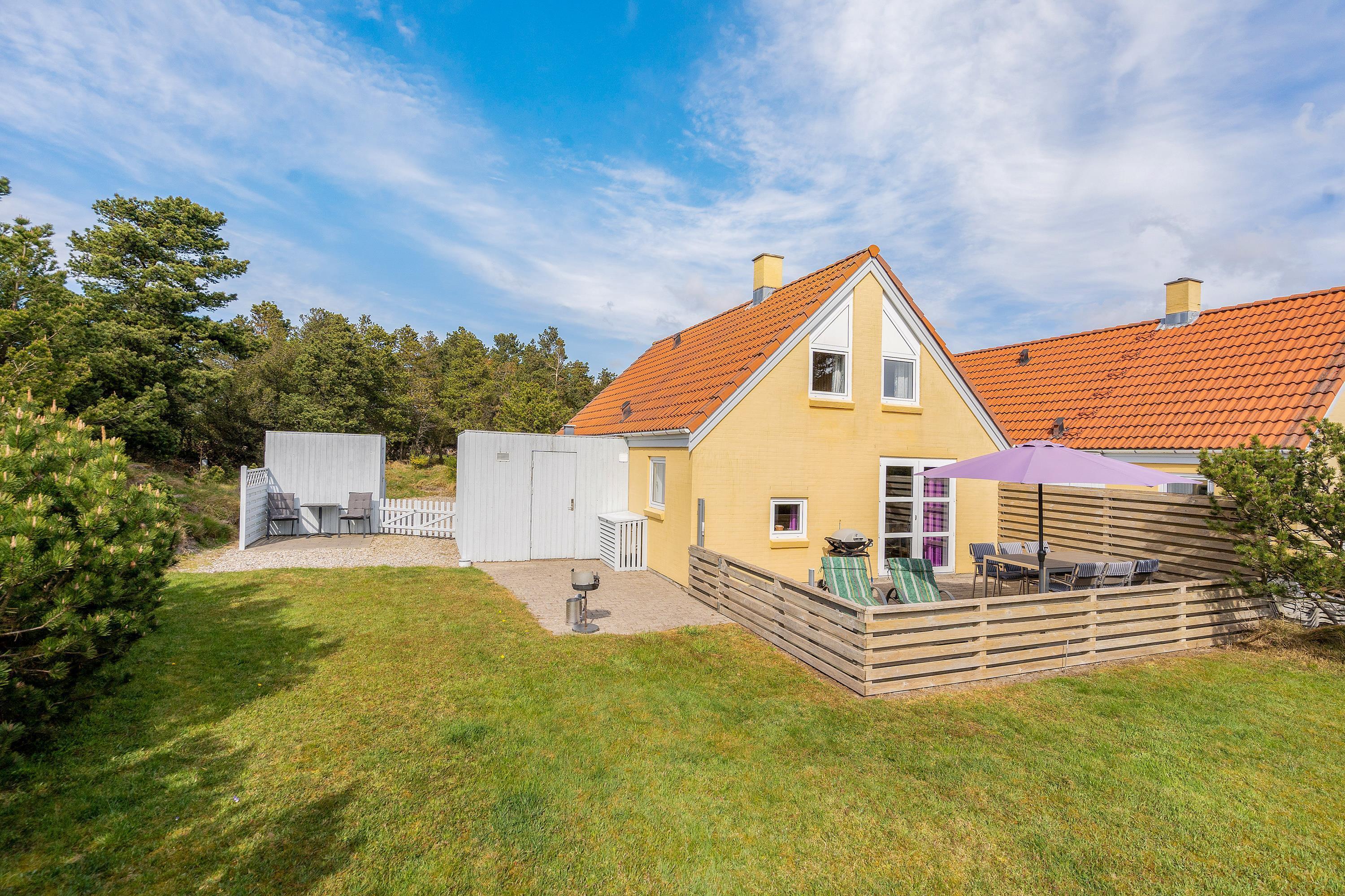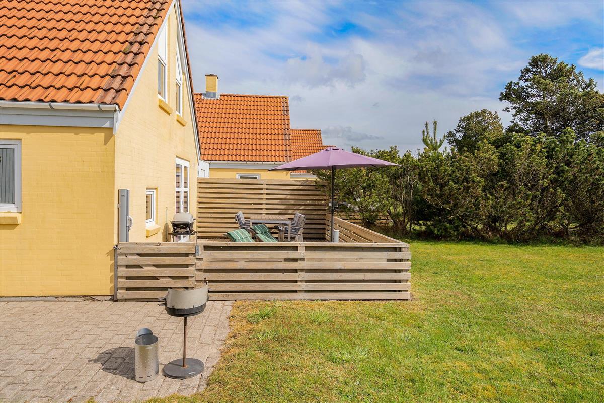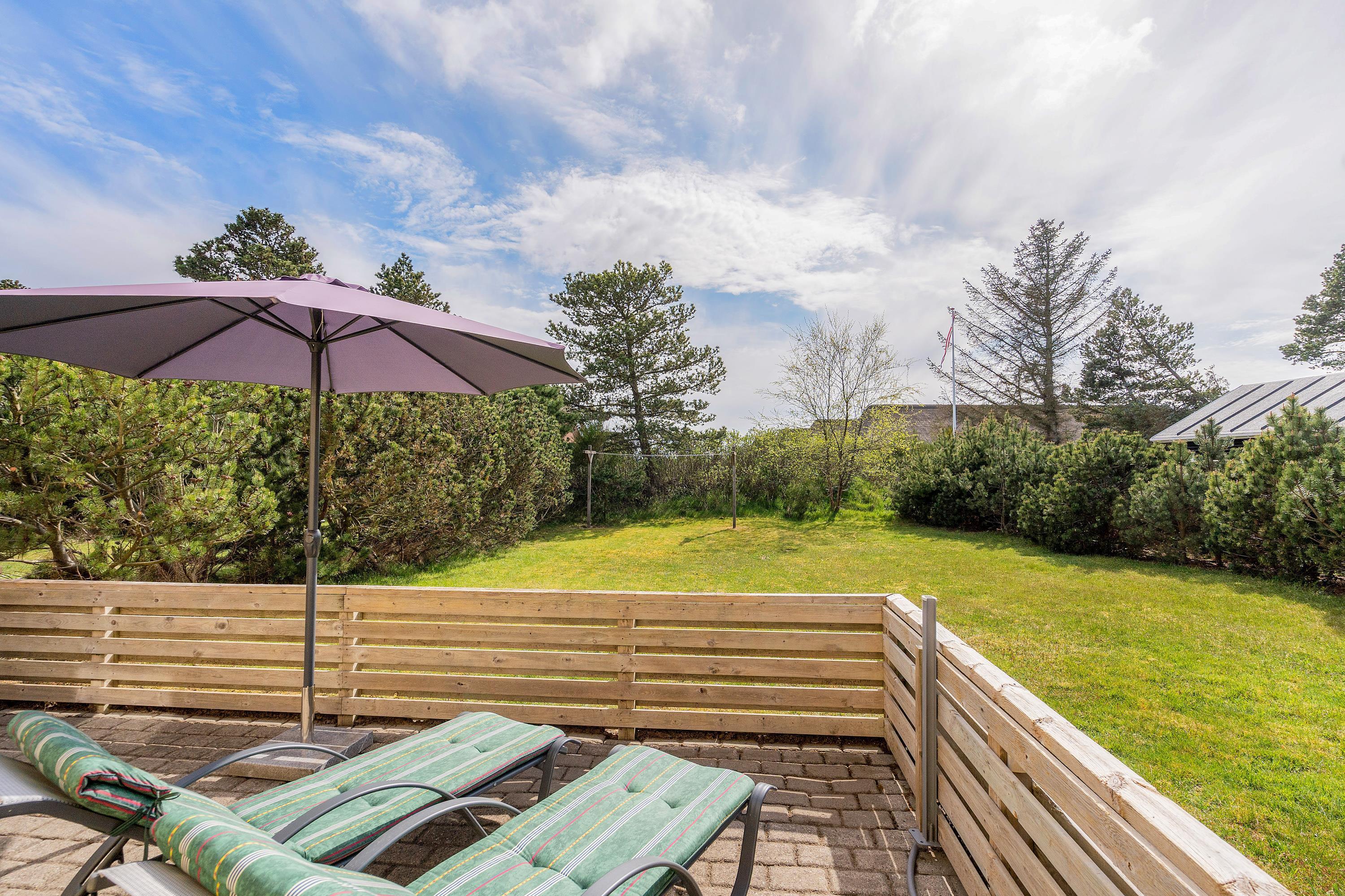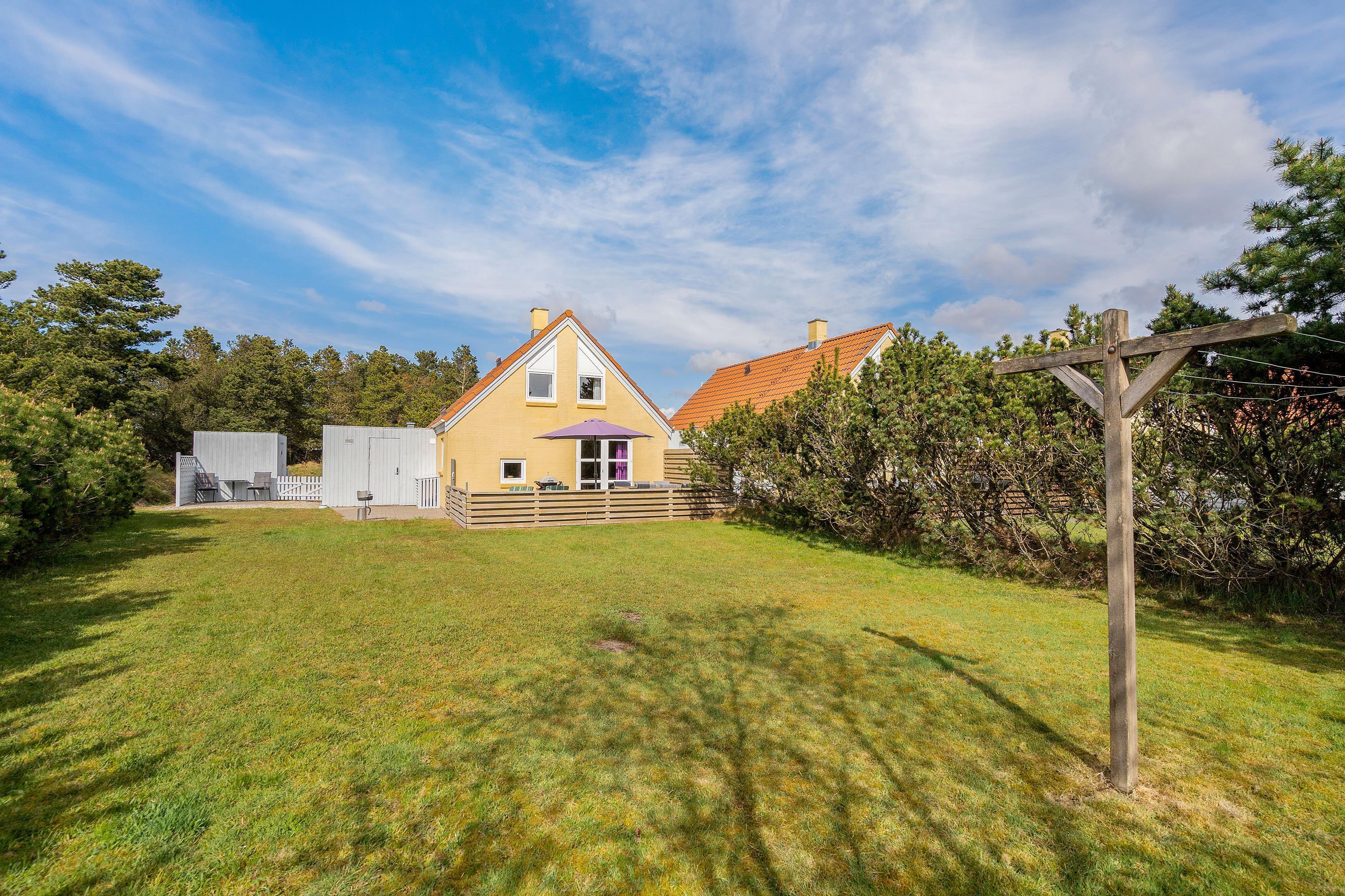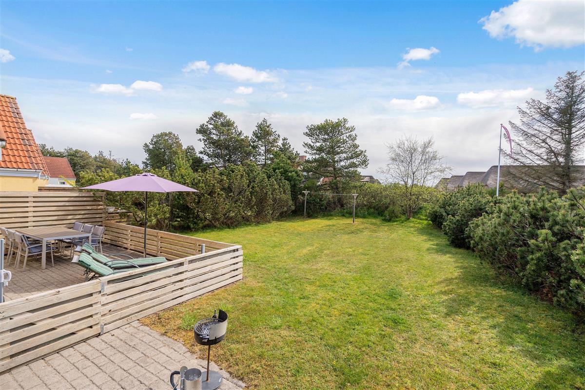This comfortable holiday home enjoys a central location in the heart of Blåvand, yet offers peace and quiet in green surroundings - situated at the end of a cul-de-sac at Fyrgården 10.
