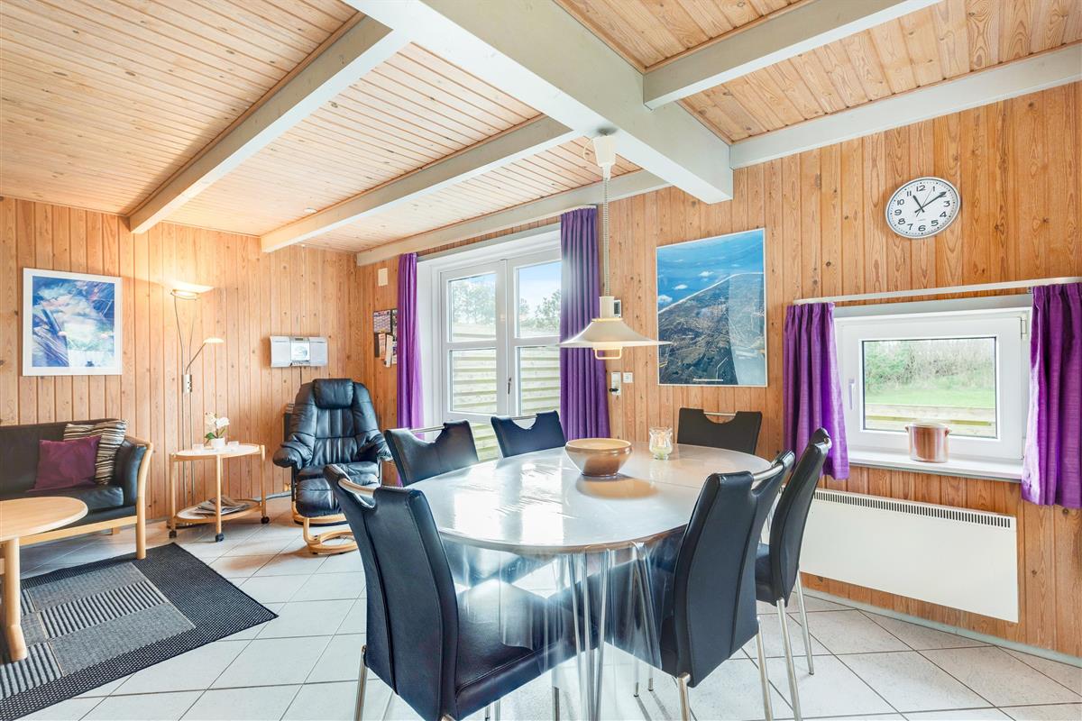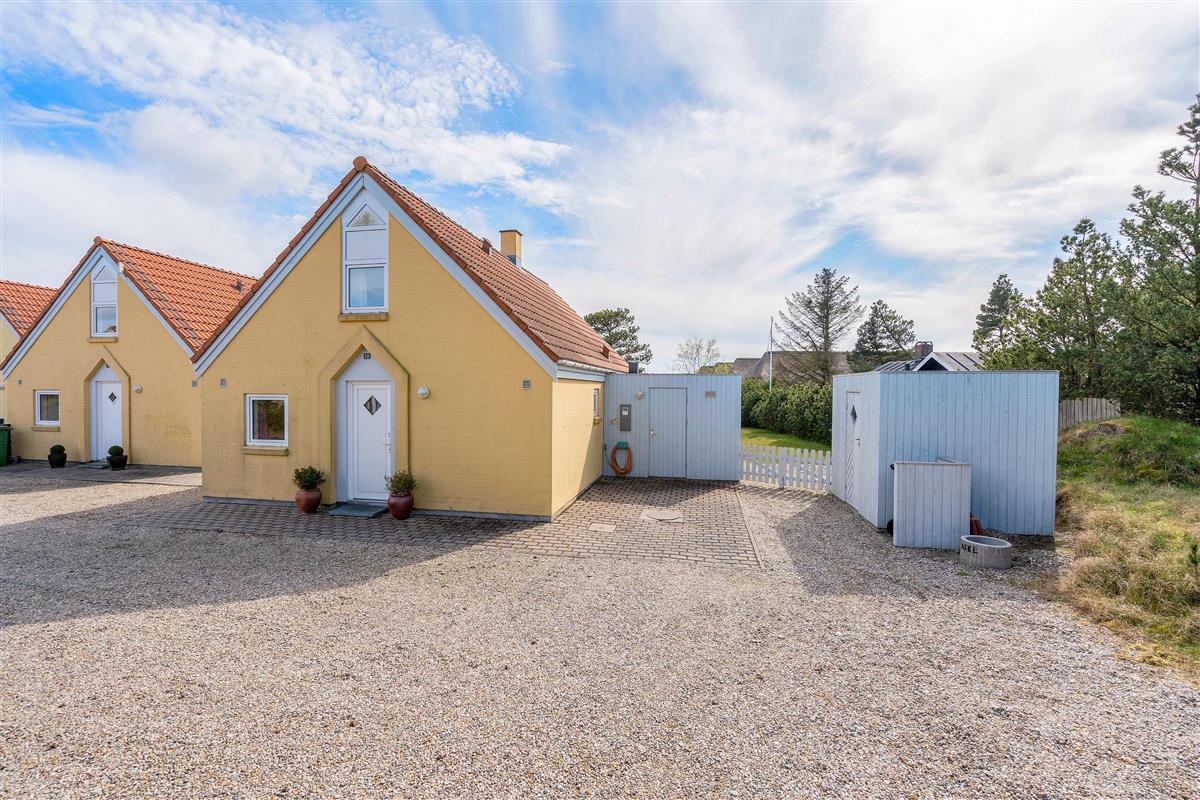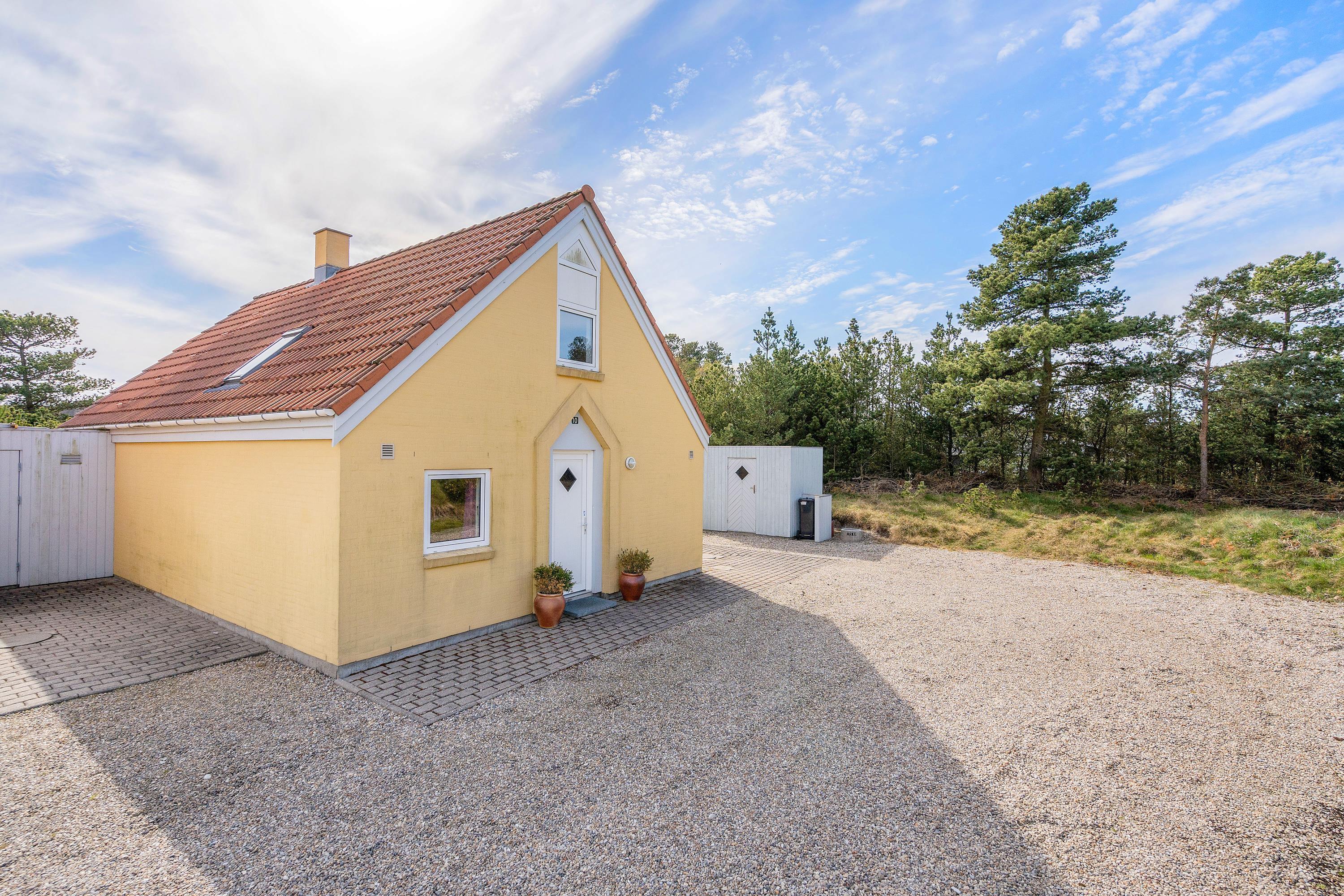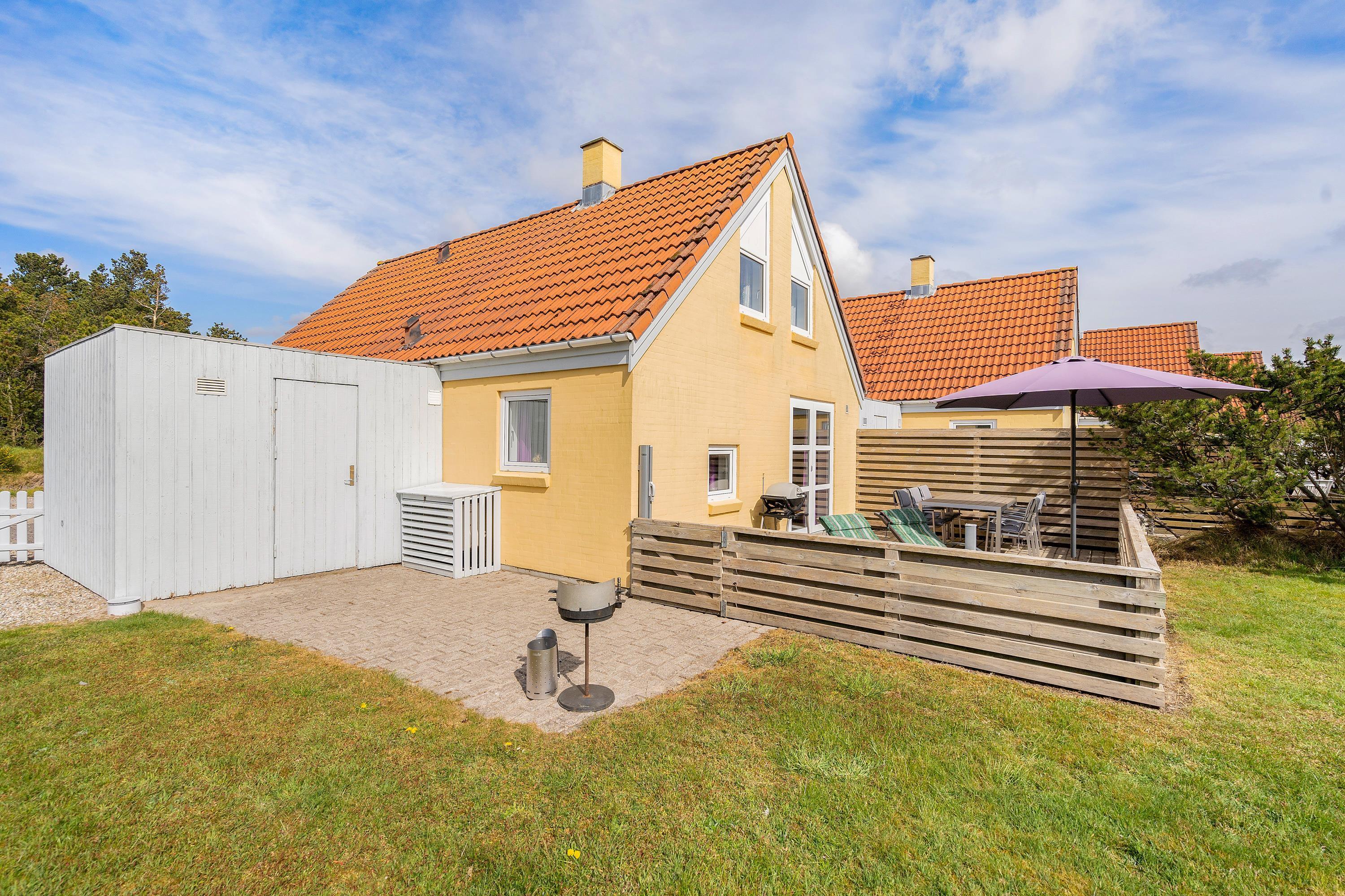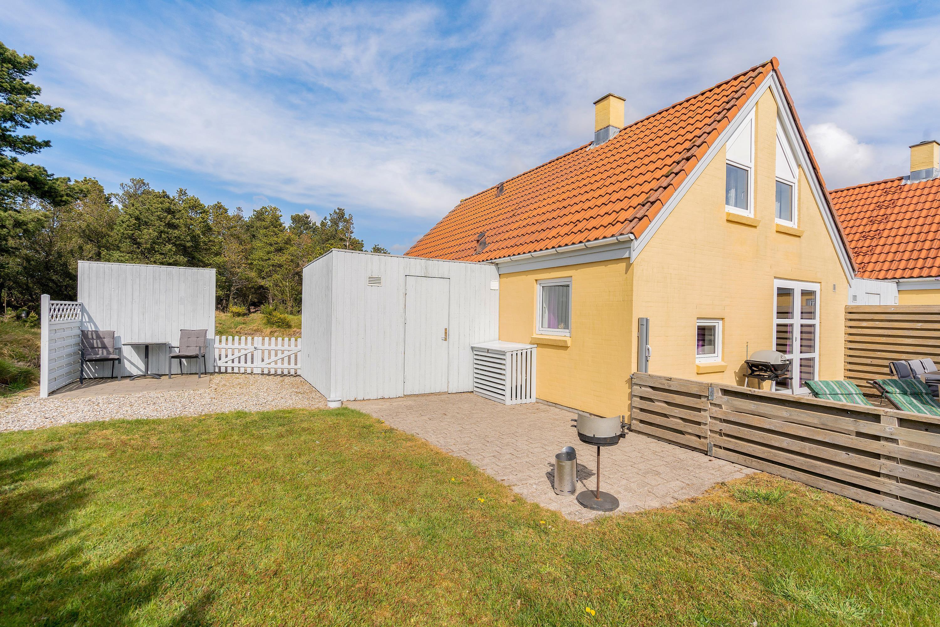 This comfortable holiday home enjoys a central location in the heart of Blåvand, yet offers peace and quiet in green surroundings - situated at the end of a cul-de-sac at Fyrgården 10.