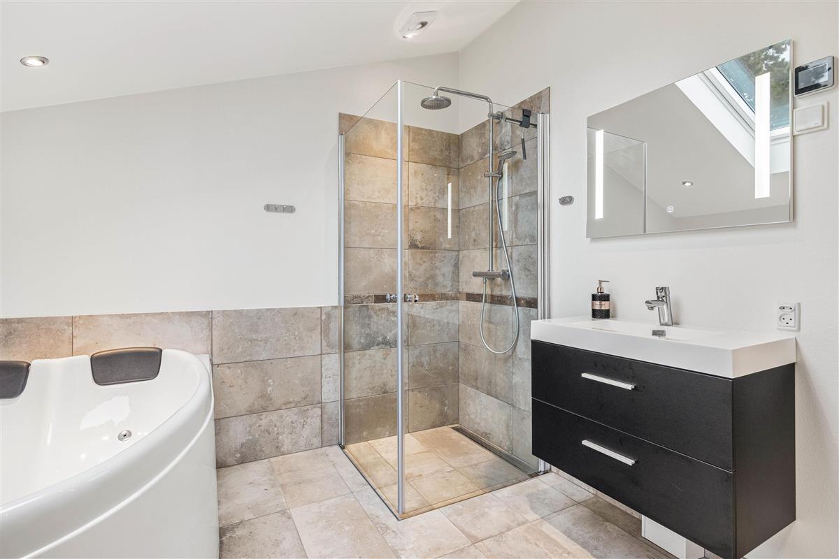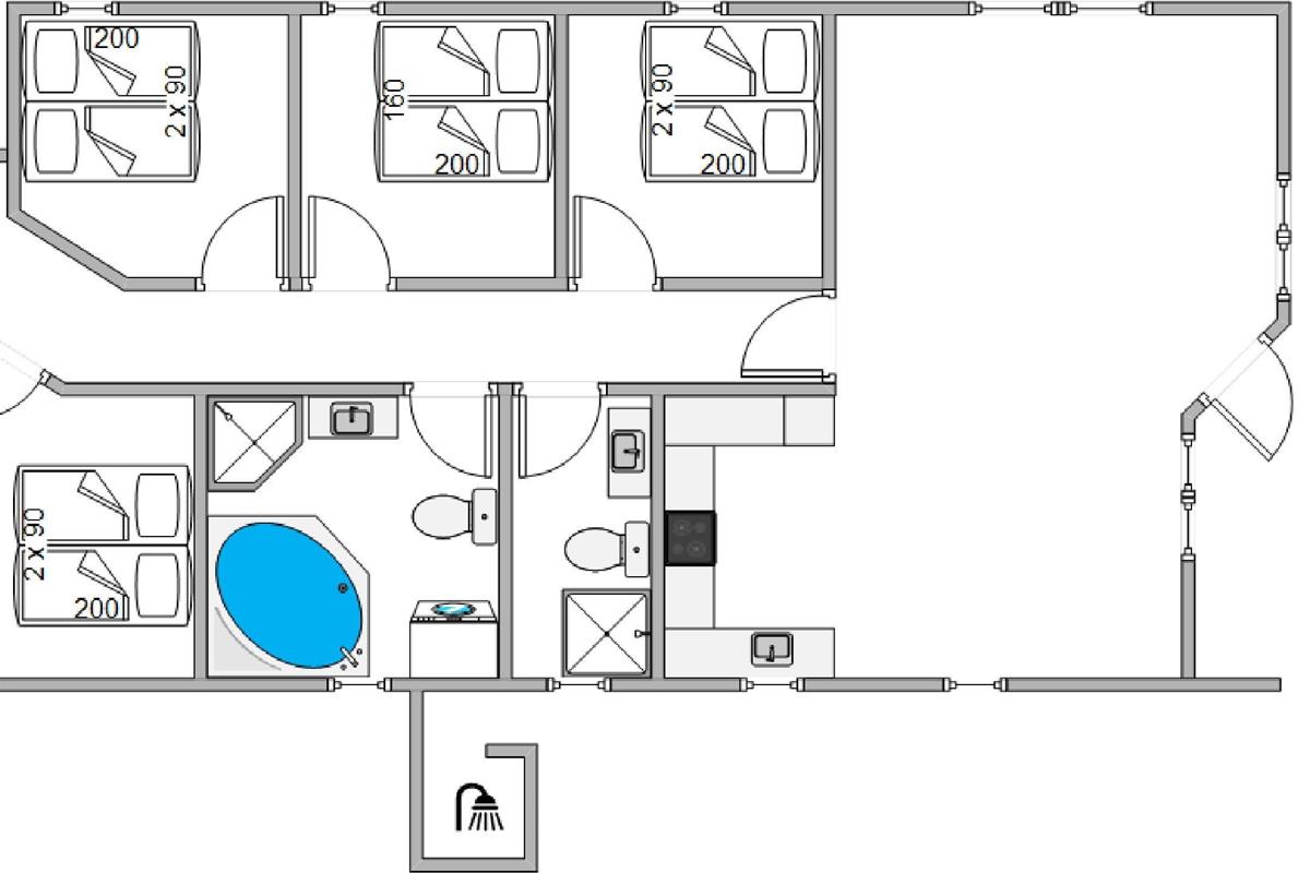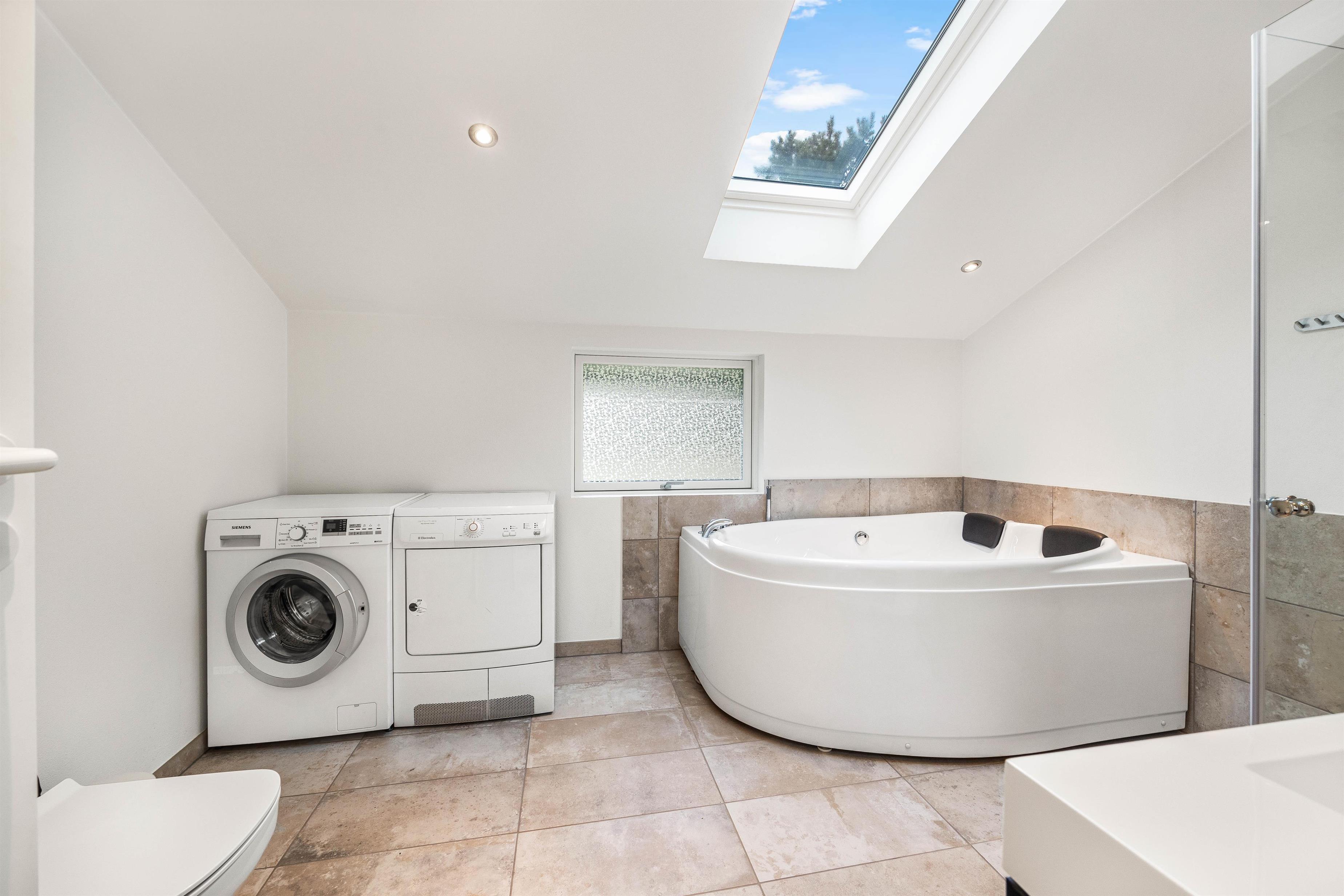 The holiday home has four bedrooms, each furnished with double beds, offering peaceful retreats for undisturbed sleep. There are also two well-appointed bathrooms, both featuring underfloor heating and showers, with one bathroom boasting a whirlpool for extra relaxation.