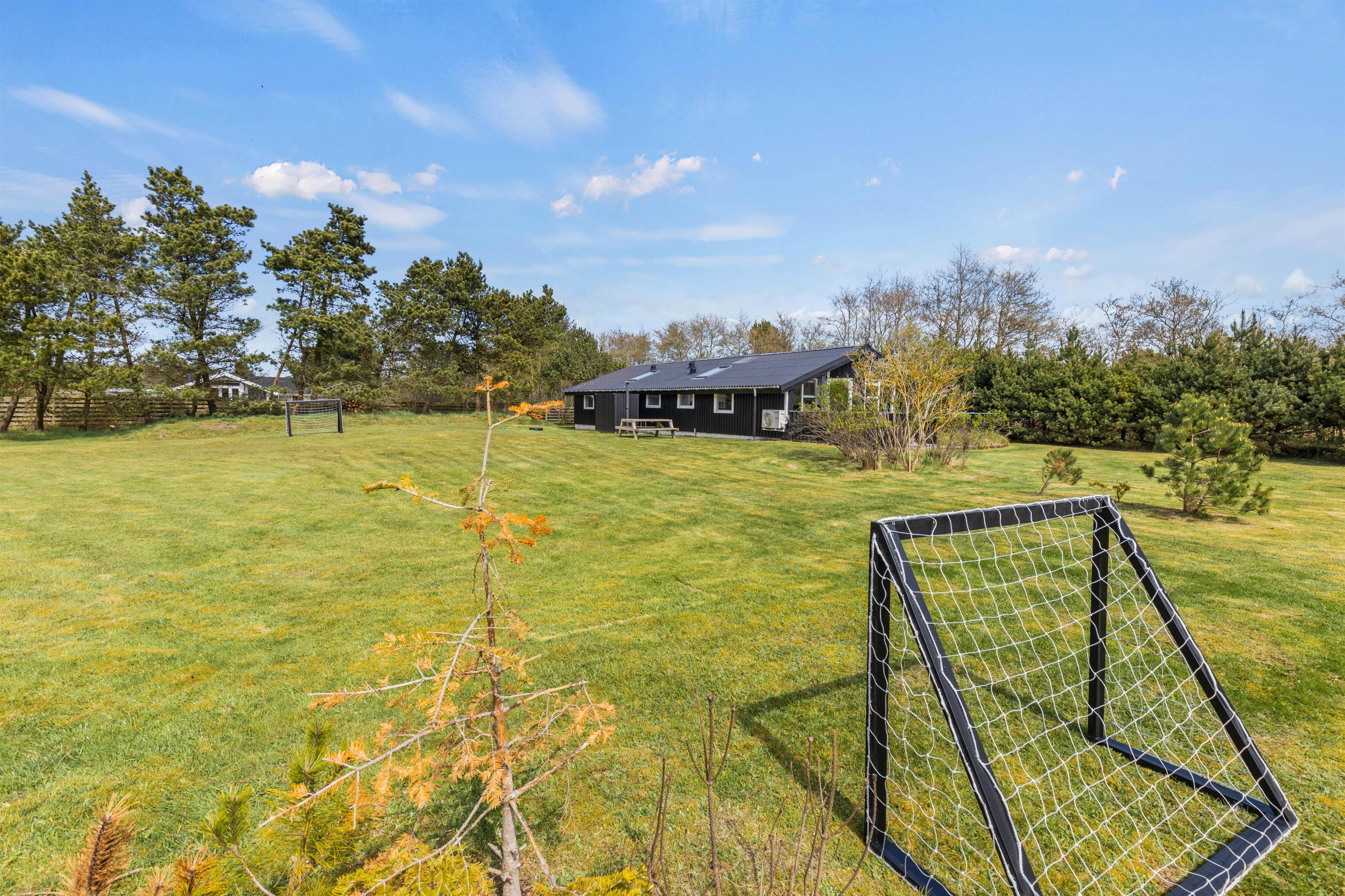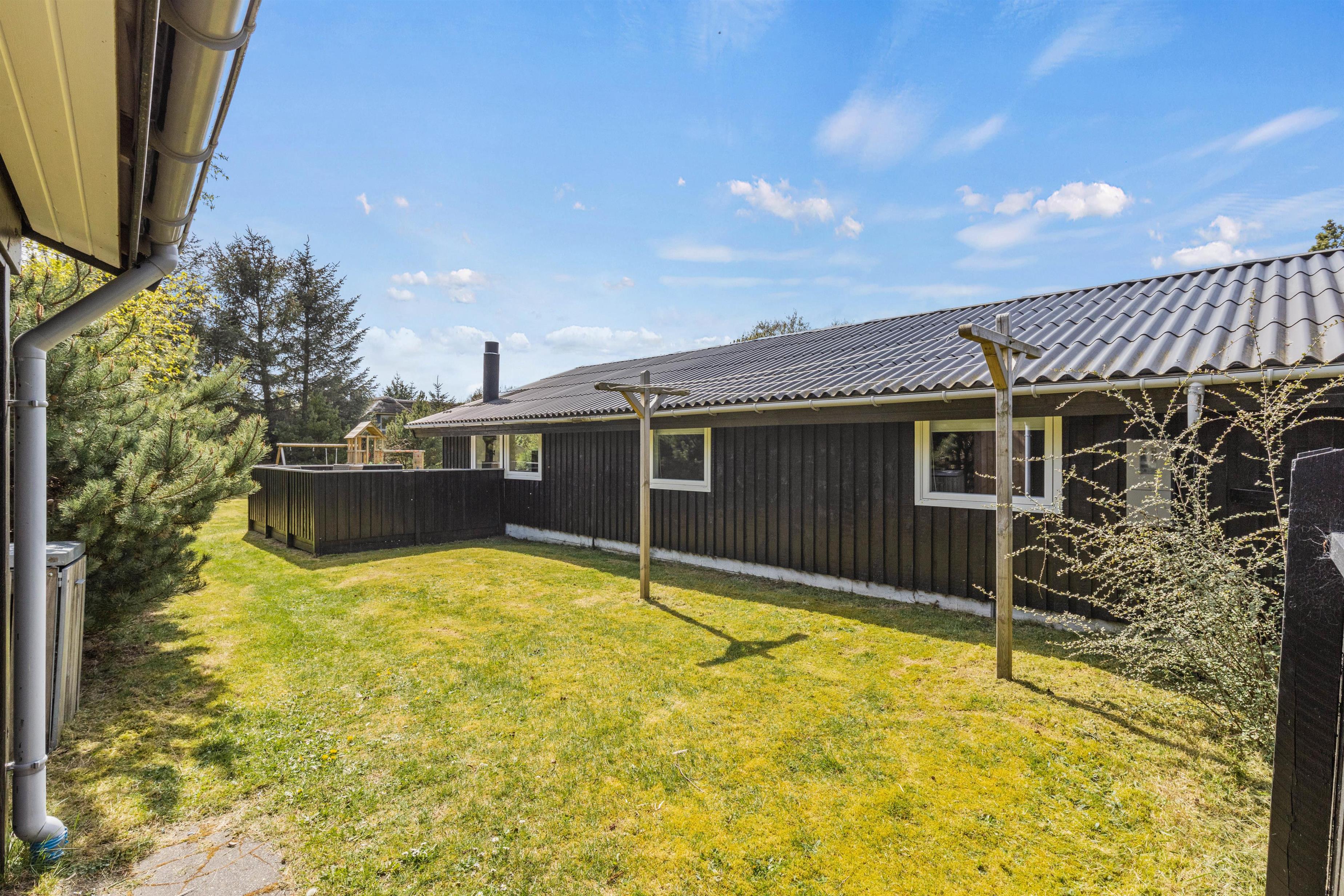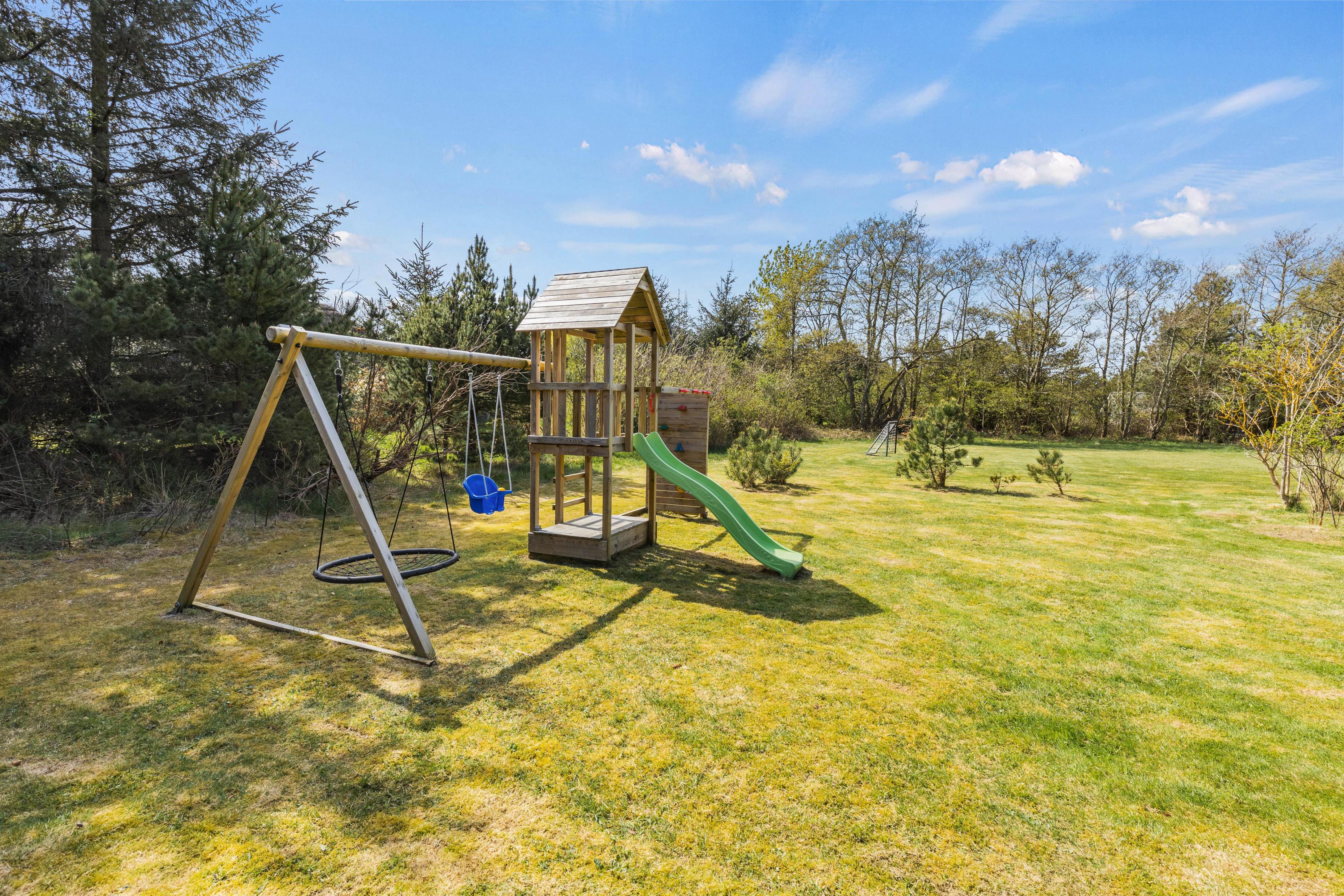 The large natural plot, beautifully enclosed on all sides, offers plenty of opportunities for outdoor living. The level lawn is perfect for kubb (Viking chess) or football. Children will love the play tower with its sandpit, swings and slide.