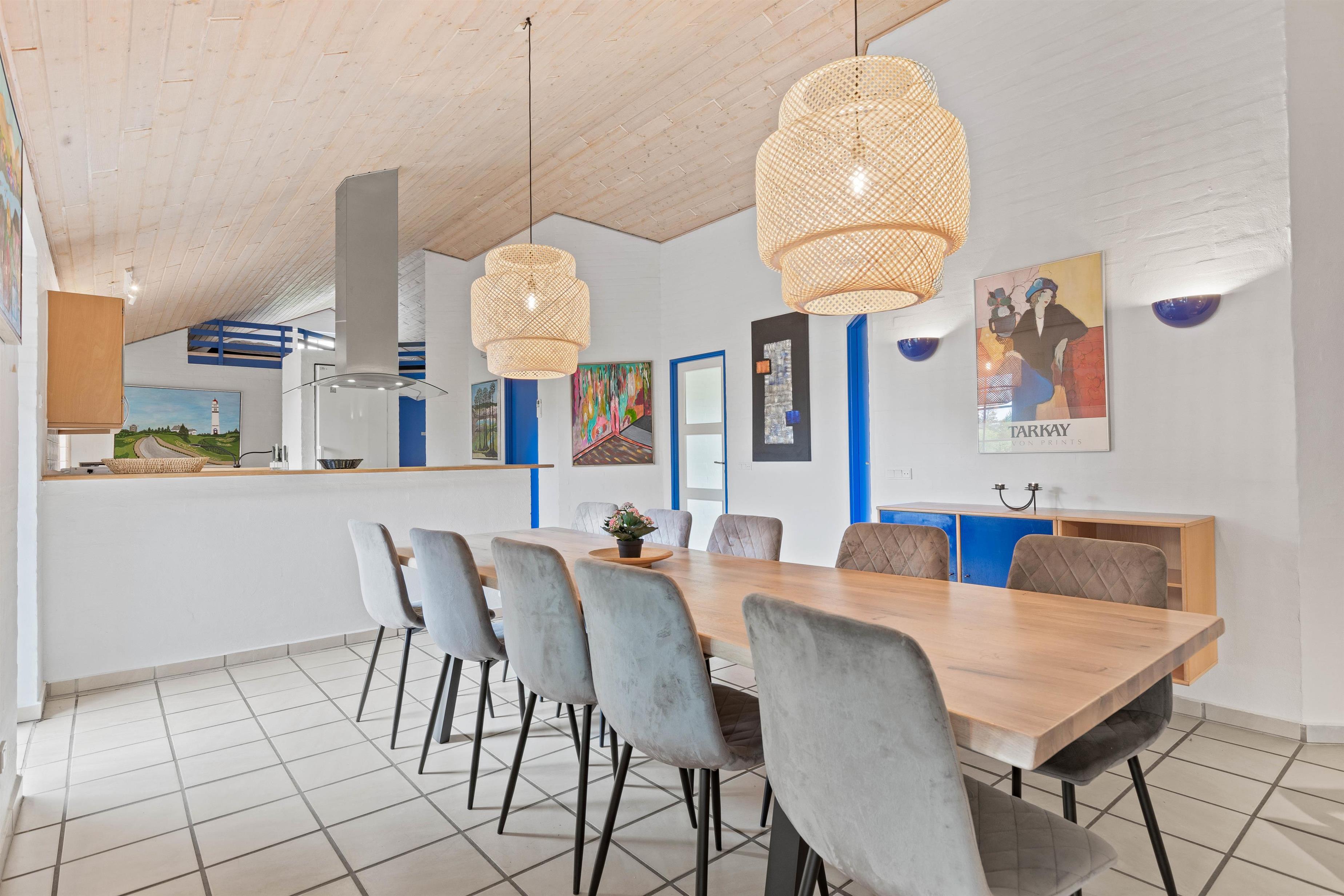 Located at Ingridsvej 28, this holiday home accommodates up to 10 guests and a dog, providing the perfect setting for a wonderful holiday. The holiday home features a spacious open-plan kitchen and living area where the whole family can gather for cosy moments together. For extra comfort, especially on cool autumn days, you can light the wood-burning stove which provides excellent warmth. The holiday home also features a heat pump for additional heating when needed.