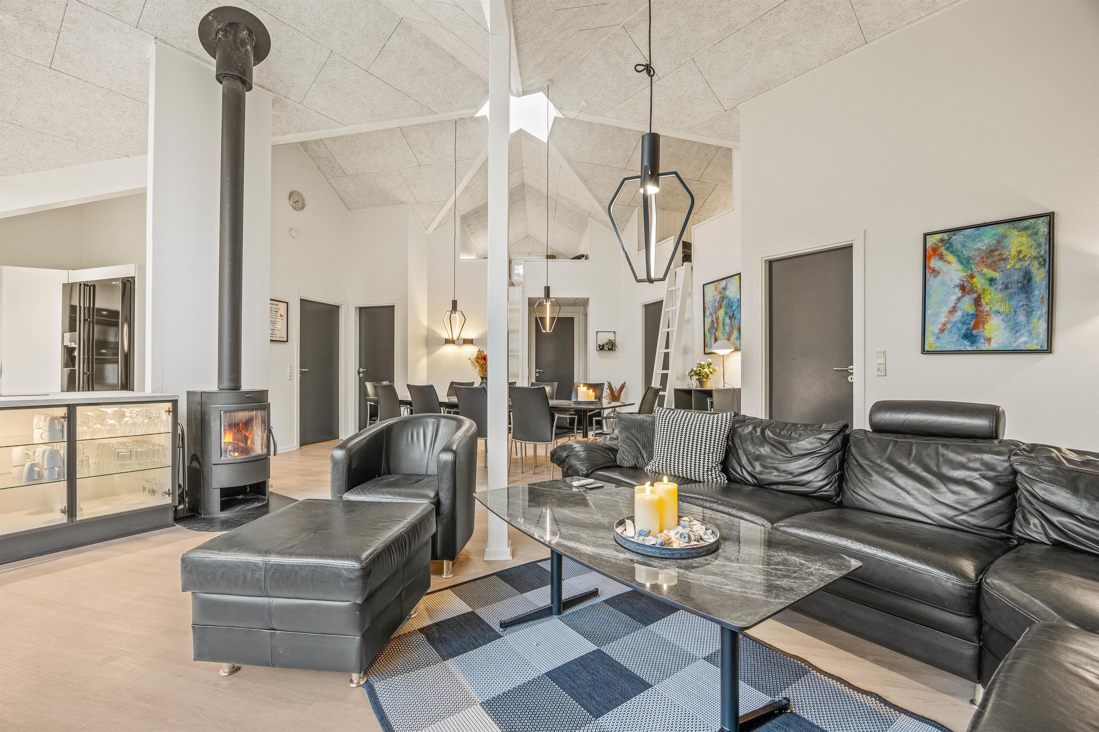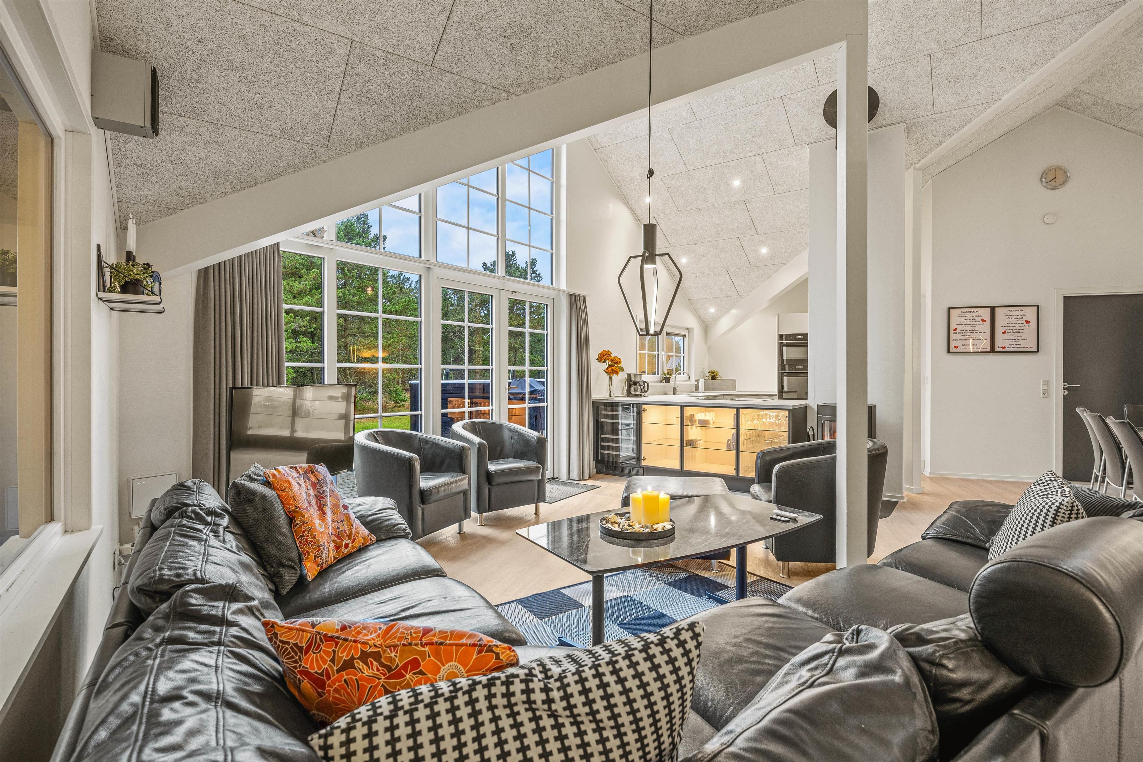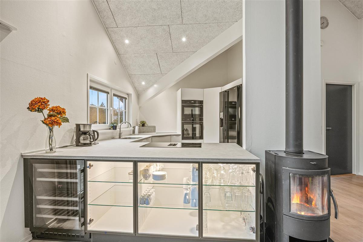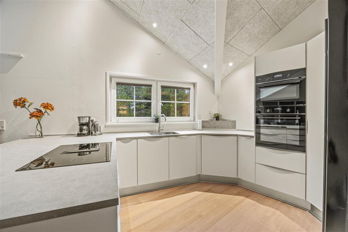 The 2022 renovation included installing continuous wooden flooring throughout, providing underfloor heating across the entire holiday home. The main living area has also been fitted with new Troldtekt acoustic ceilings.
