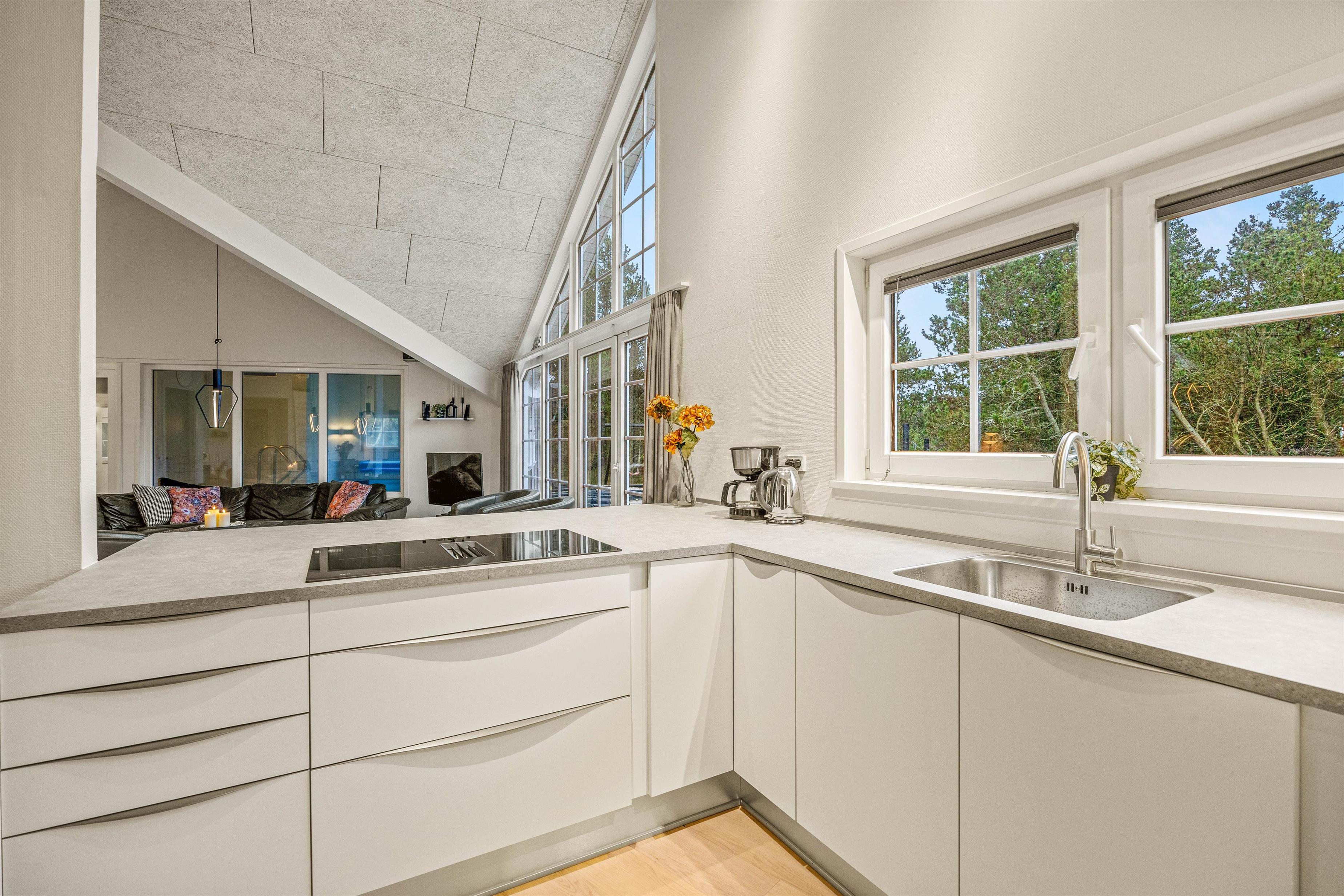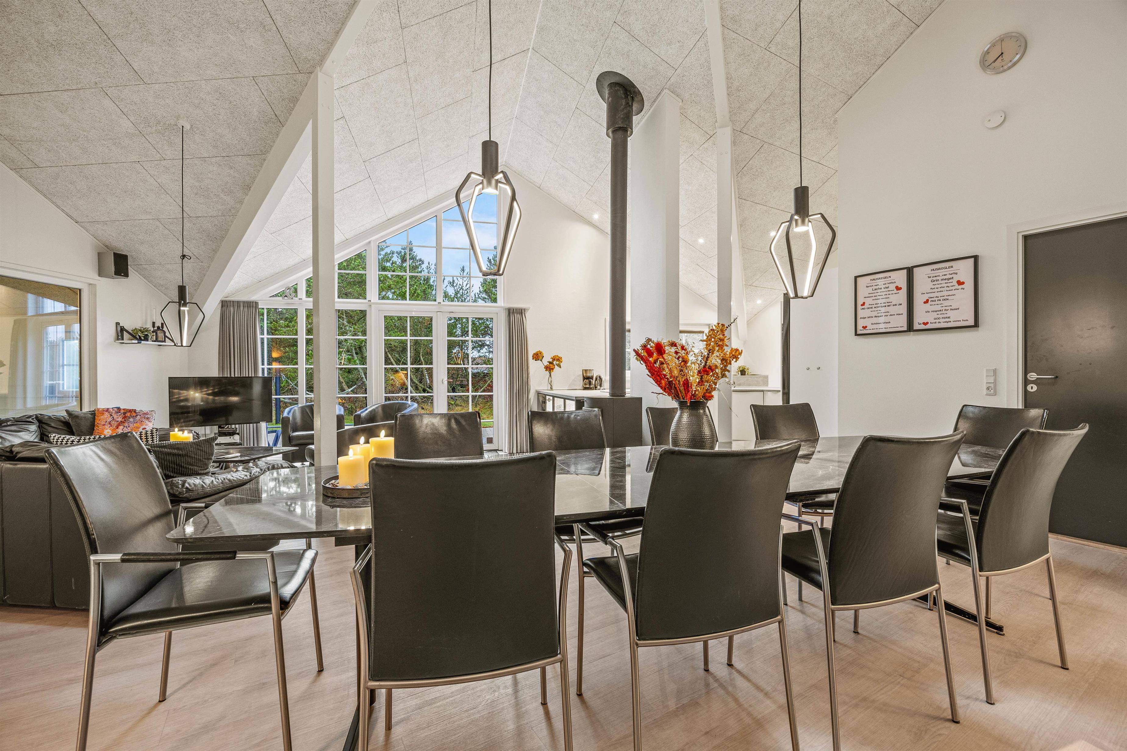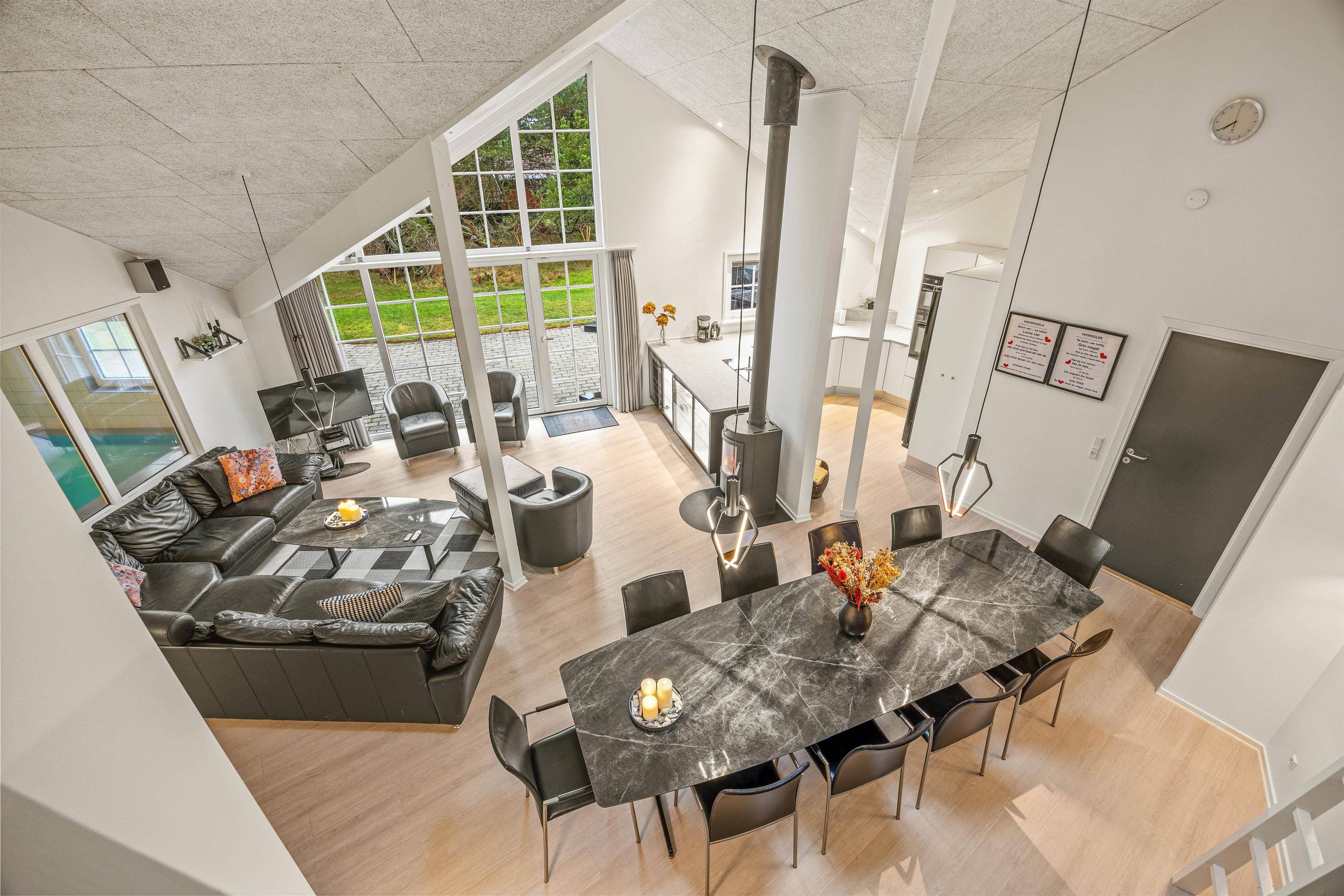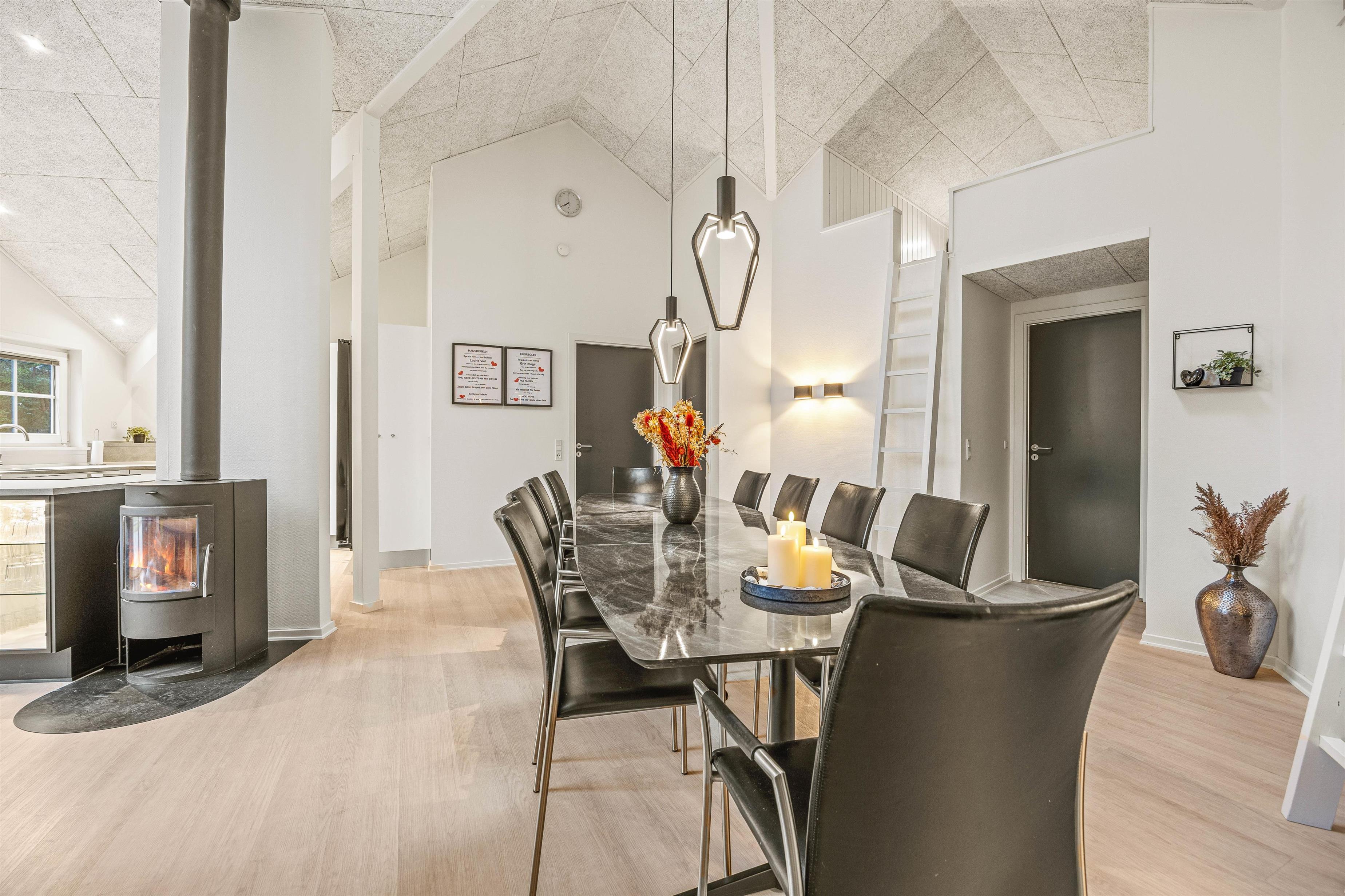 The 2022 renovation included installing continuous wooden flooring throughout, providing underfloor heating across the entire holiday home. The main living area has also been fitted with new Troldtekt acoustic ceilings.