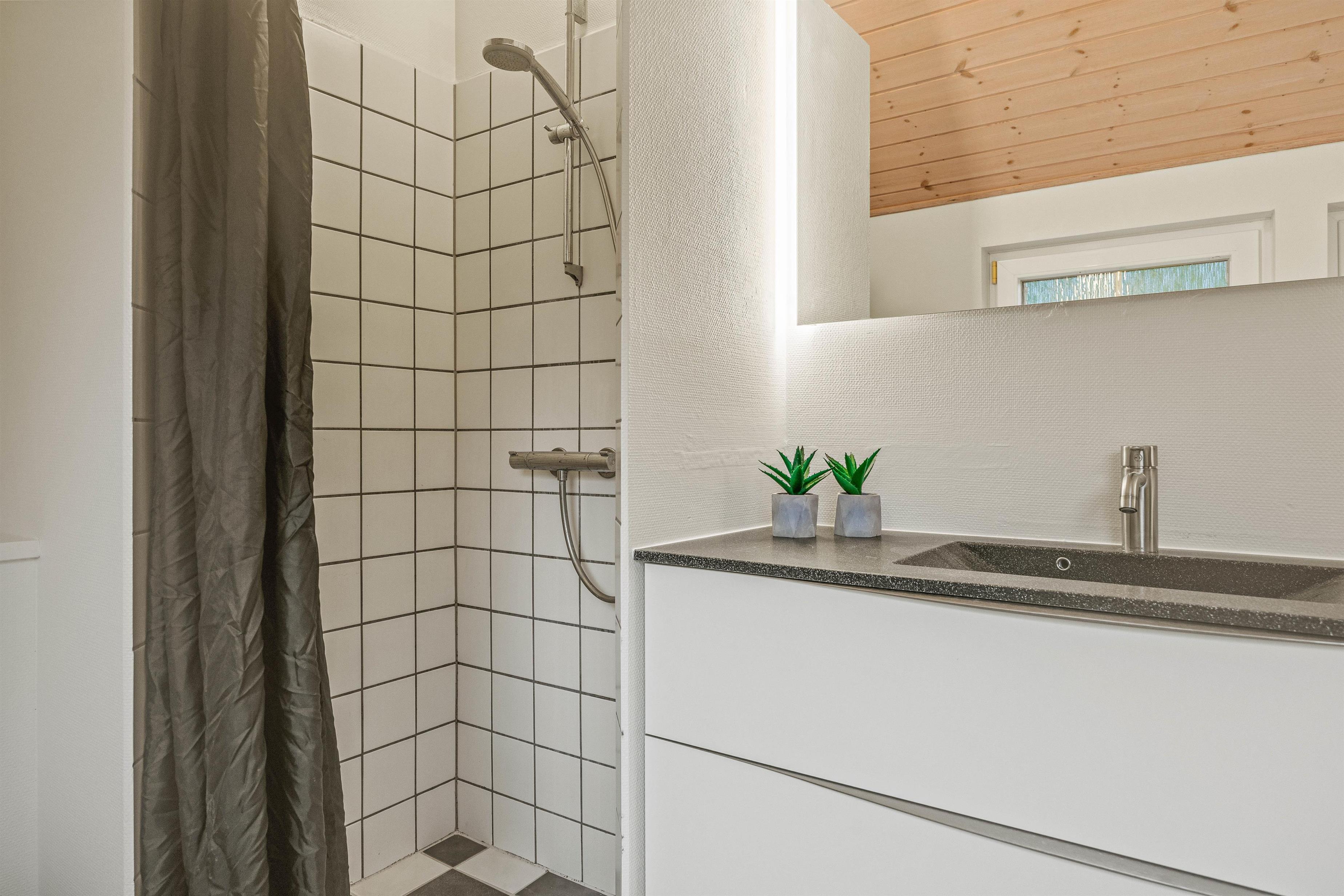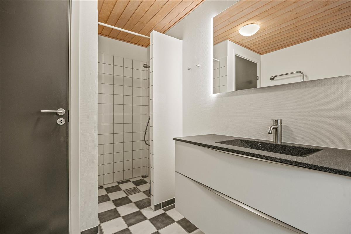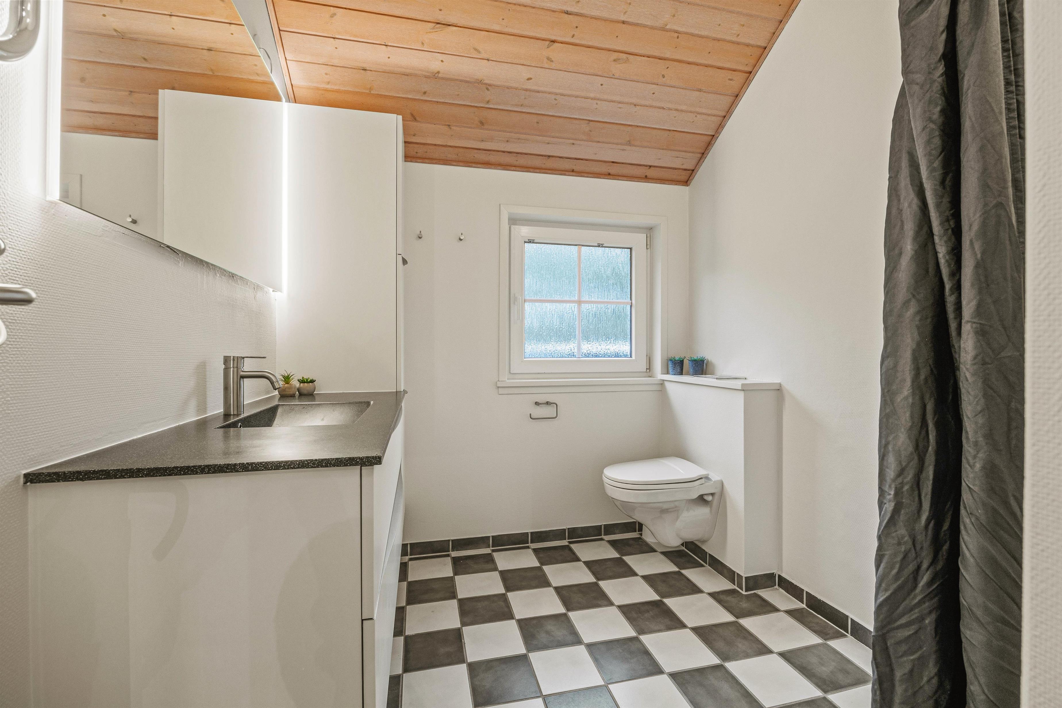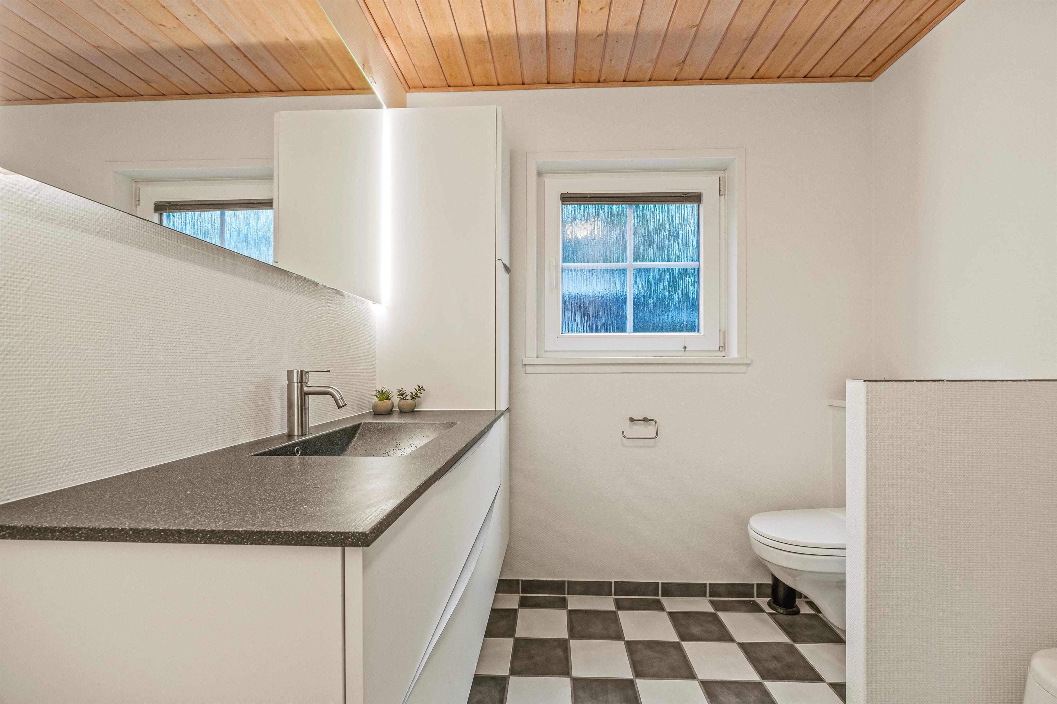 The 2022 renovation included installing continuous wooden flooring throughout, providing underfloor heating across the entire holiday home. The main living area has also been fitted with new Troldtekt acoustic ceilings.