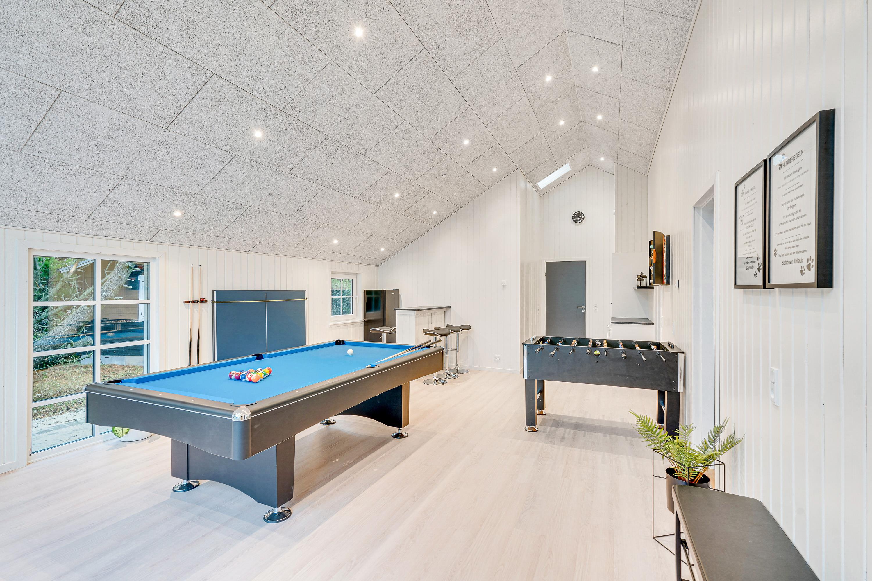 As an additional bonus, there's a games room featuring pool, electronic darts and table football, where you can spend many enjoyable hours together - perhaps hosting a mini tournament? A special highlight is the built-in home bar with an additional fridge, ensuring cold refreshments are always on hand during games.