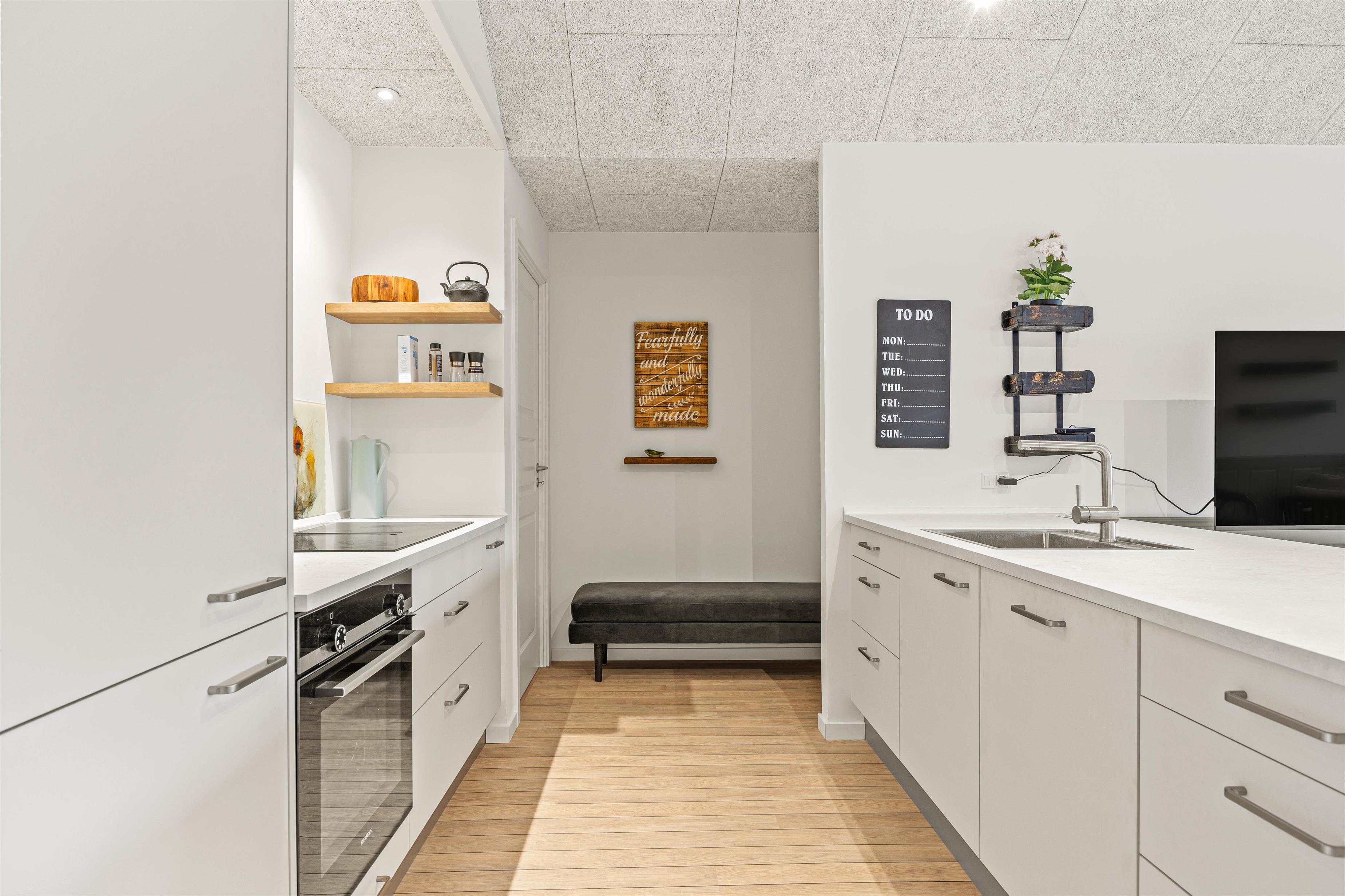 Das 2025 erbaute Ferienhaus verbindet moderne Ausstattung mit einer gemütlichen Atmosphäre in schönen Räumen mit einer schlichten und geschmackvollen Einrichtung. Der Wohnbereich ist hell und geräumig, und die Küche ist komplett ausgestattet mit einem Geschirrspüler, einer Mikrowelle und einem separaten 90 Liter-Gefrierschrank, perfekt für die Zubereitung köstlicher Urlaubsmahlzeiten.