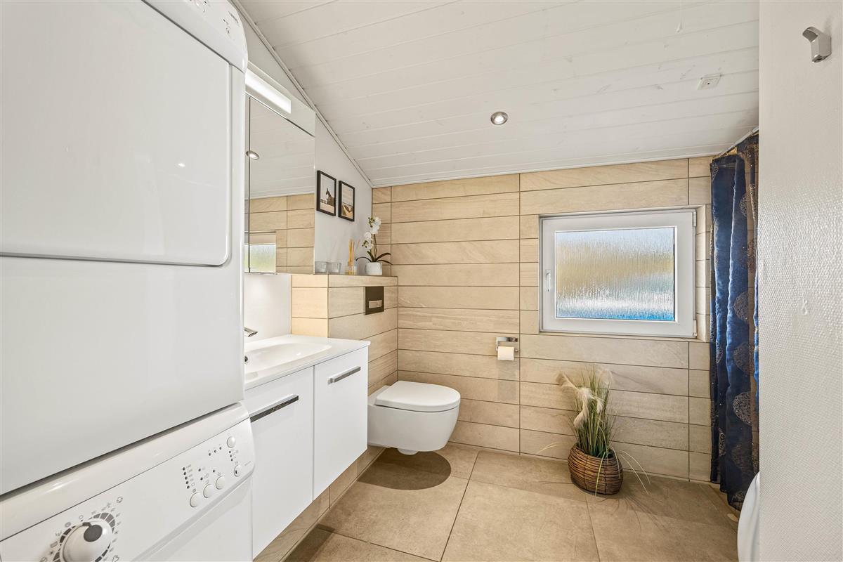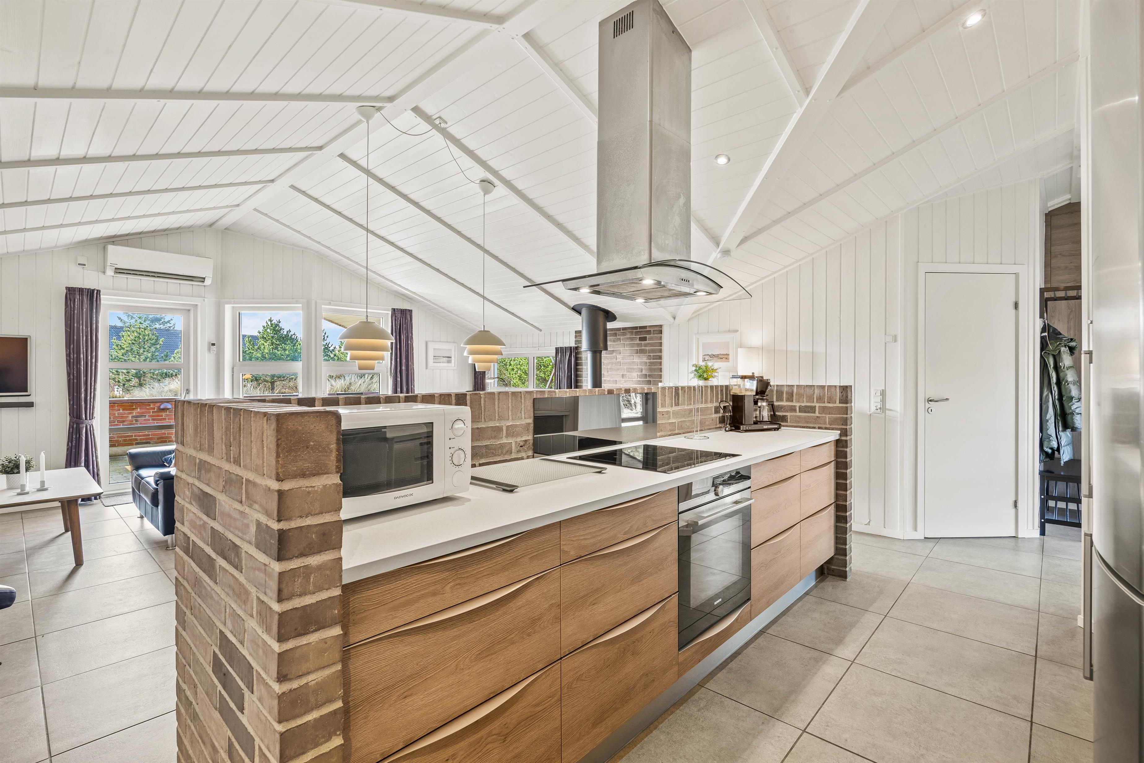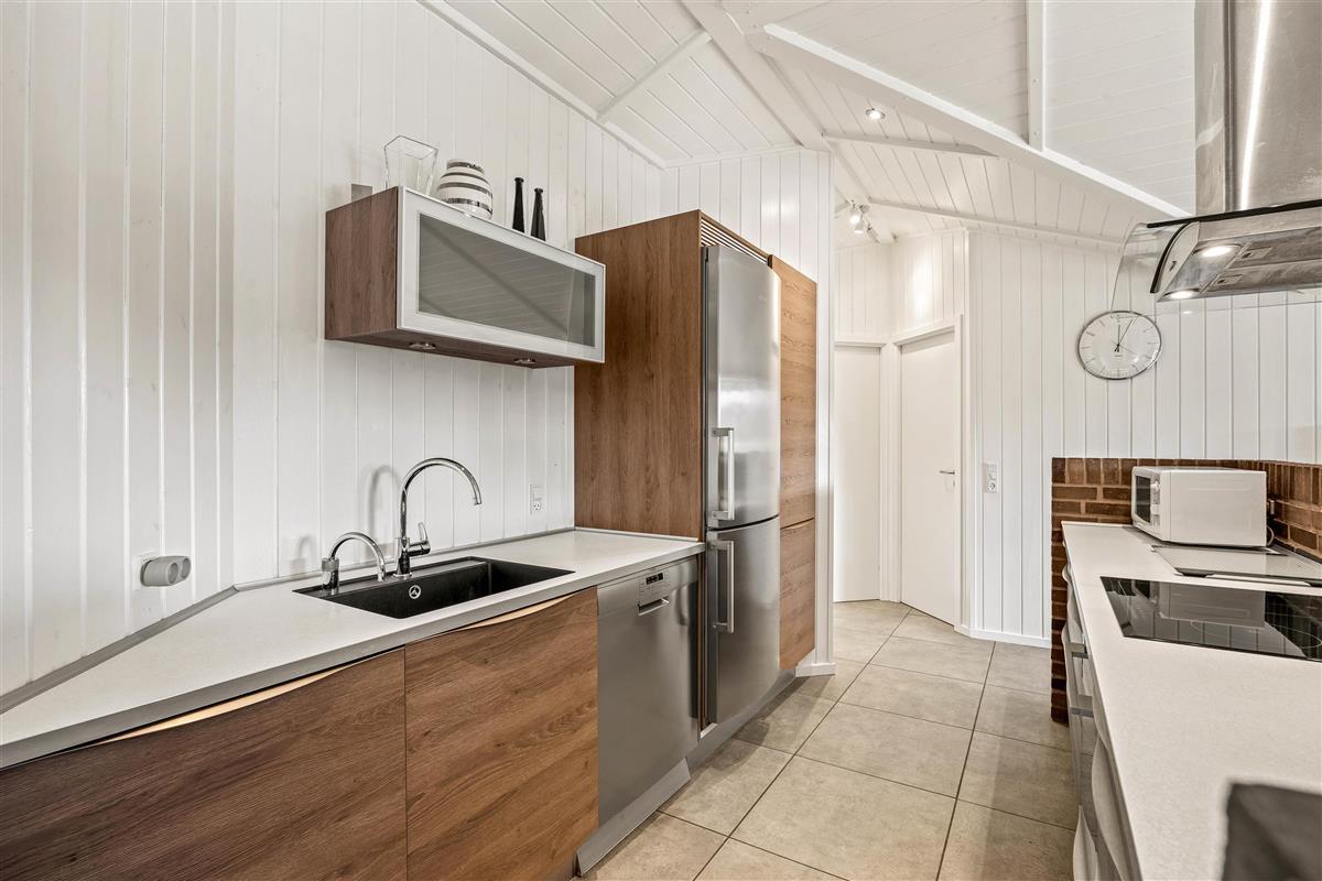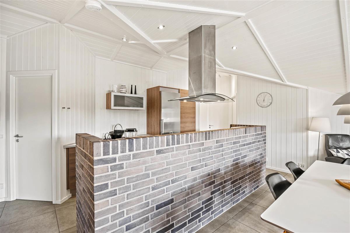The holiday home at Im Kollemarken 52 welcomes you with a comfortable and stylish atmosphere. Built in 2000 and completely modernised in 2016, the holiday home features a modern kitchen separated from the living area by a brick breakfast bar. The wall is a real eye-catcher - and so is the kitchen. Modern appliances and welcoming kitchen units make it a delightful space for cooking enthusiasts.