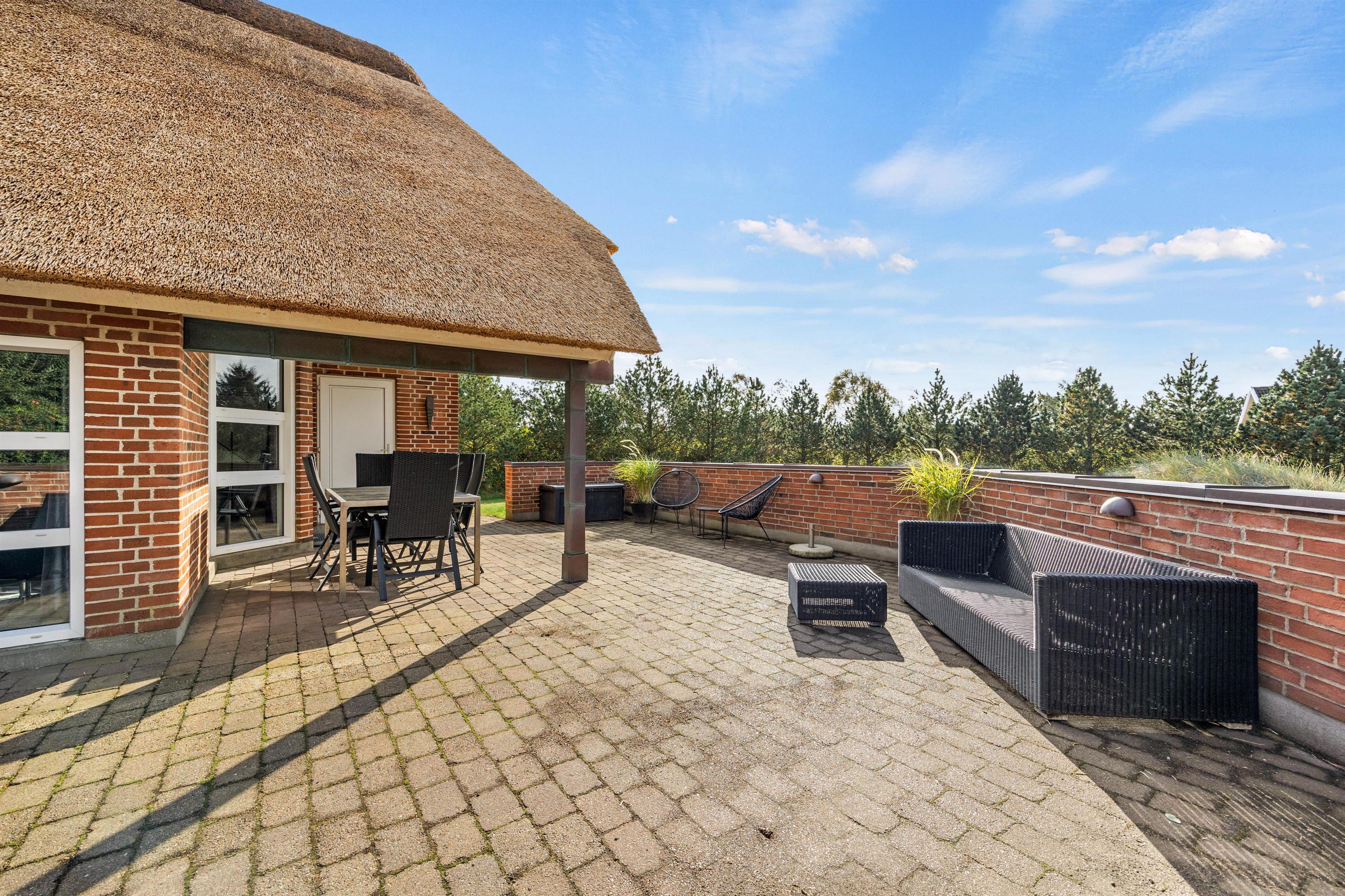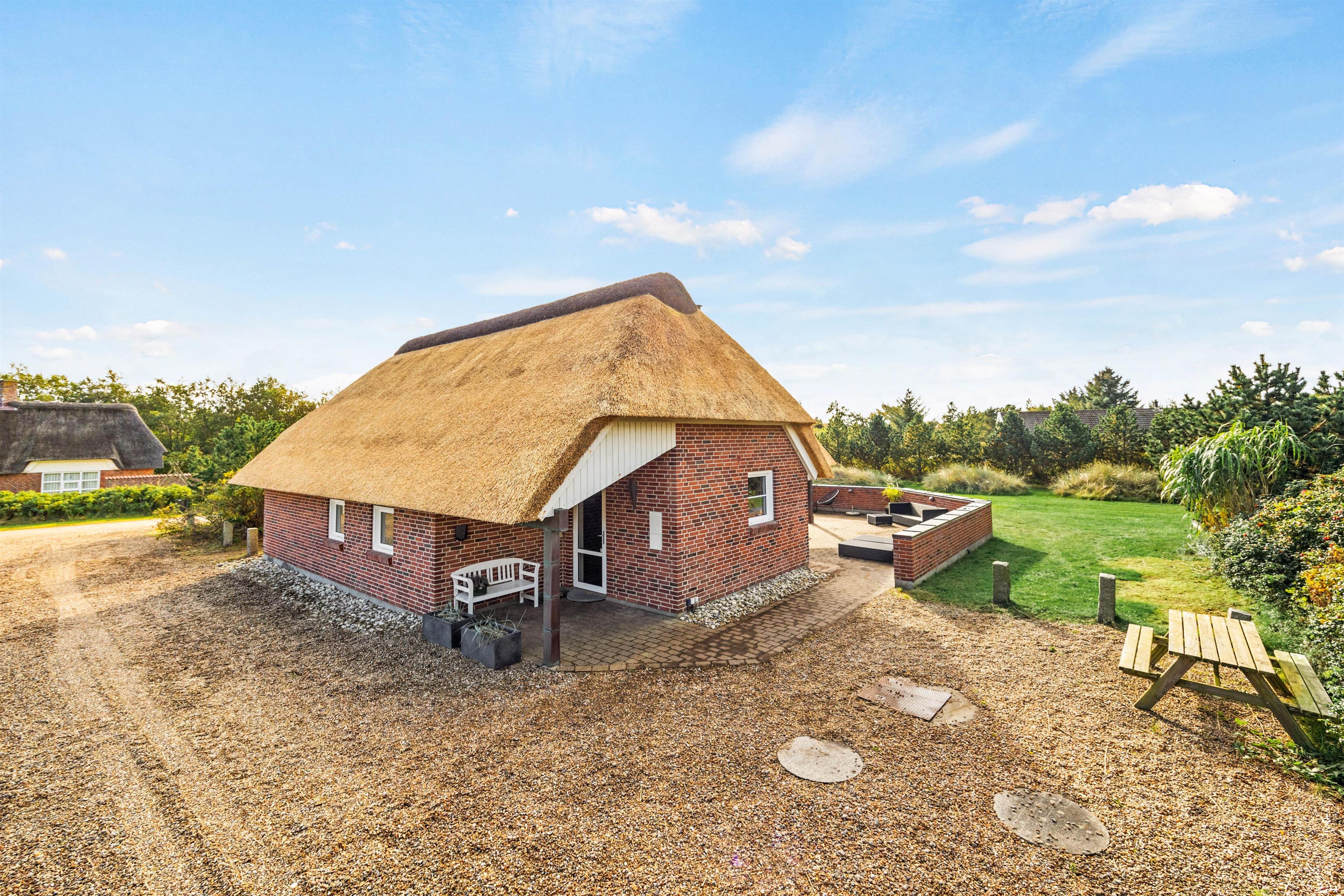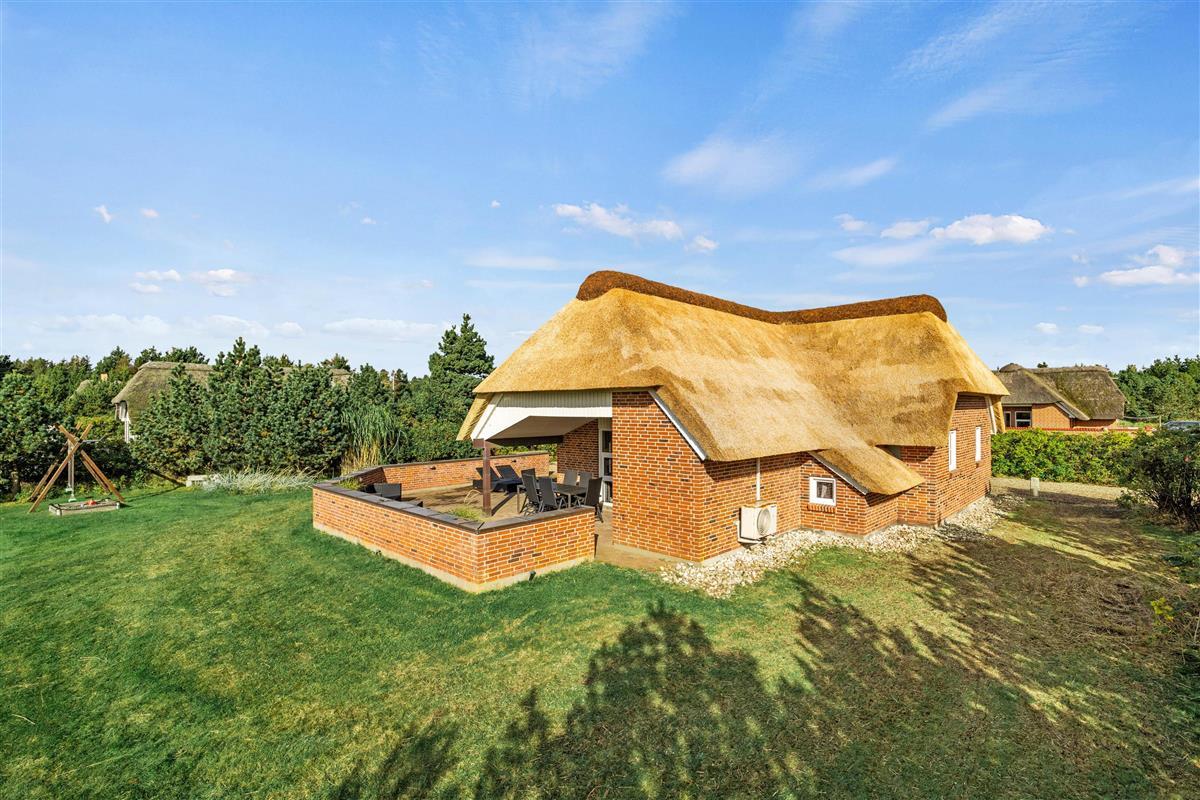 This lovely thatched holiday home is located at Im Kollemarken 52, just a short distance from the beach and Blåvand centre. Stylishly and comfortably furnished, the holiday home offers plenty of space for 6 people and your dog. Everyone can find their own cosy corner for relaxation, with additional wellness features including a sauna and whirlpool. An electric car charging point is available at the holiday home.